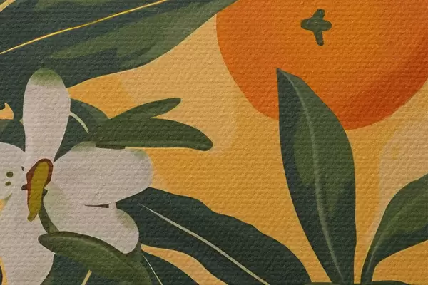 Attēls Oranžu un baltu ziedu raksts Nr r38513