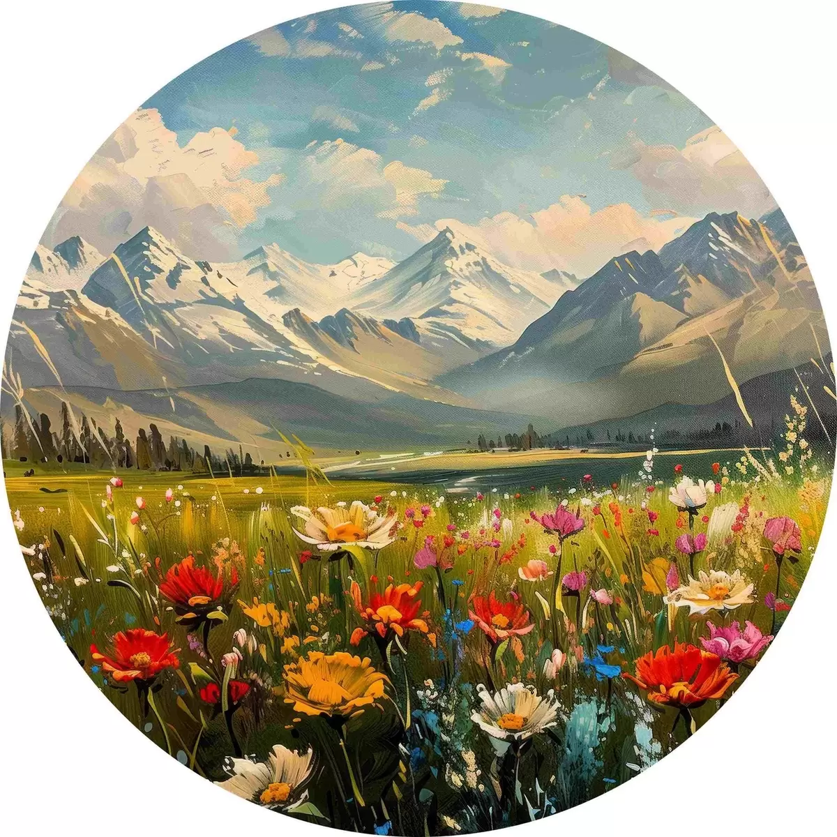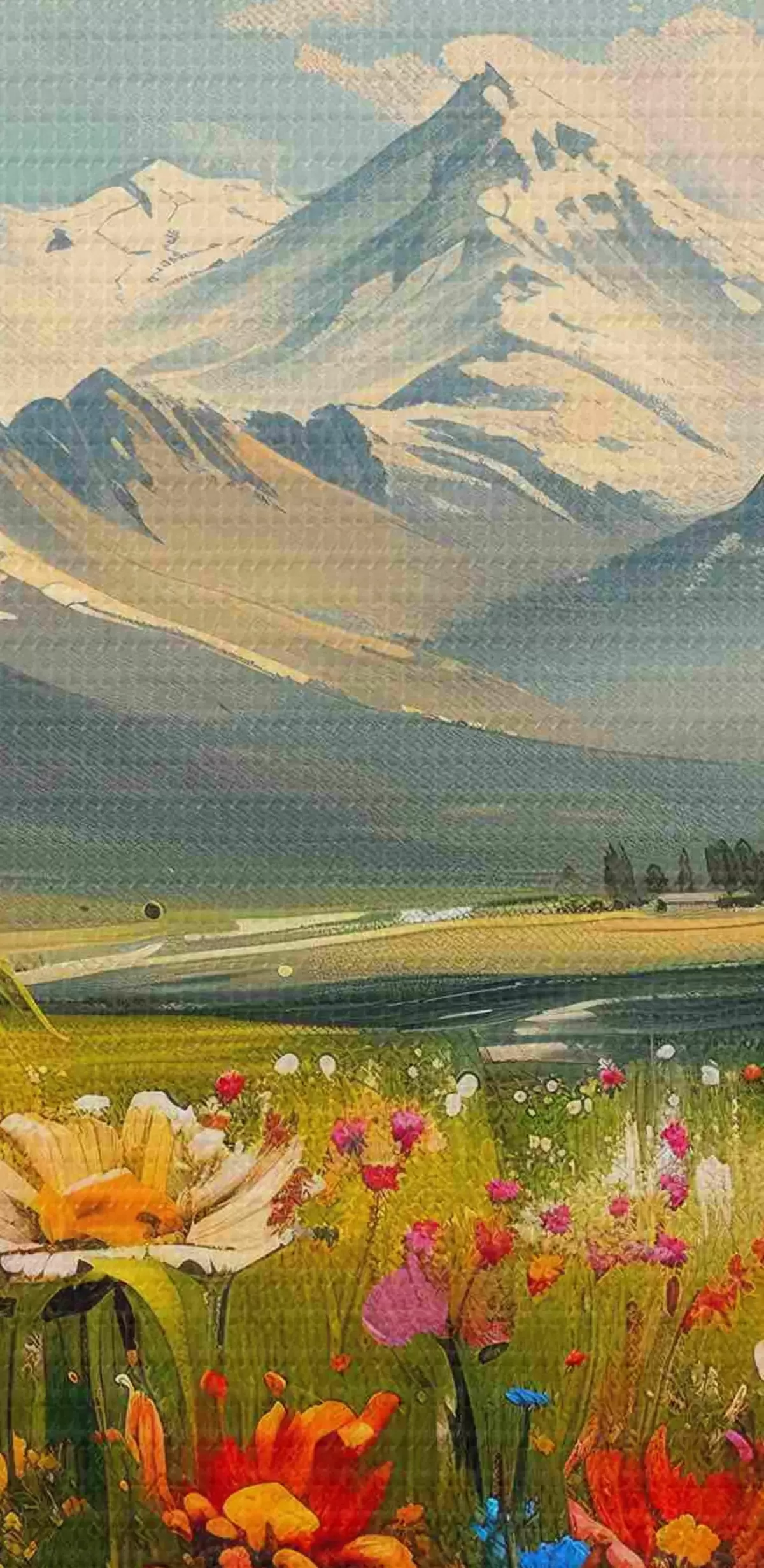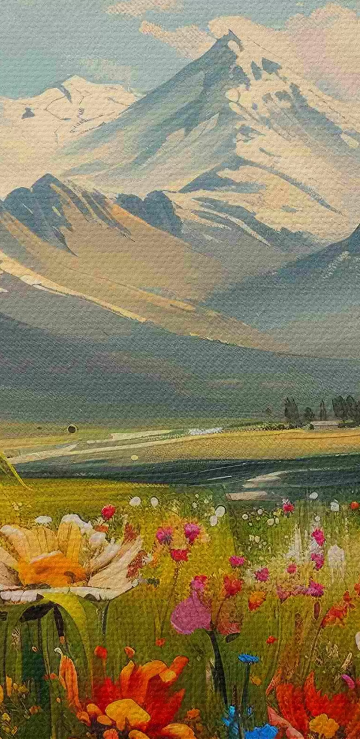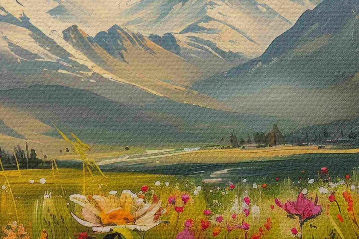 Attēls Ziedošas pļavas zem sniegotām virsotnēm Nr r38573