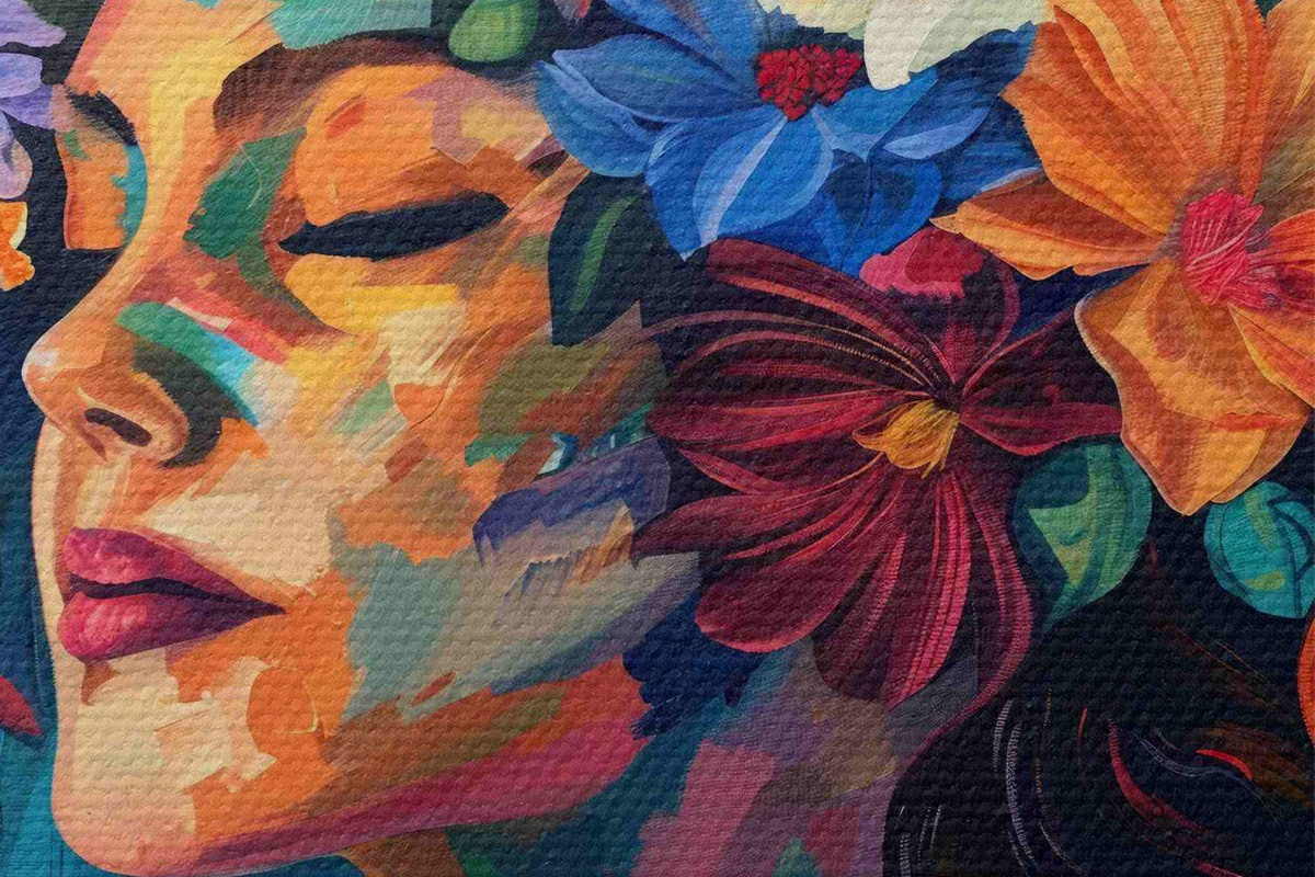 Attēls Glezna, kurā attēlota sieviete ar ziediem matos Nr r38574