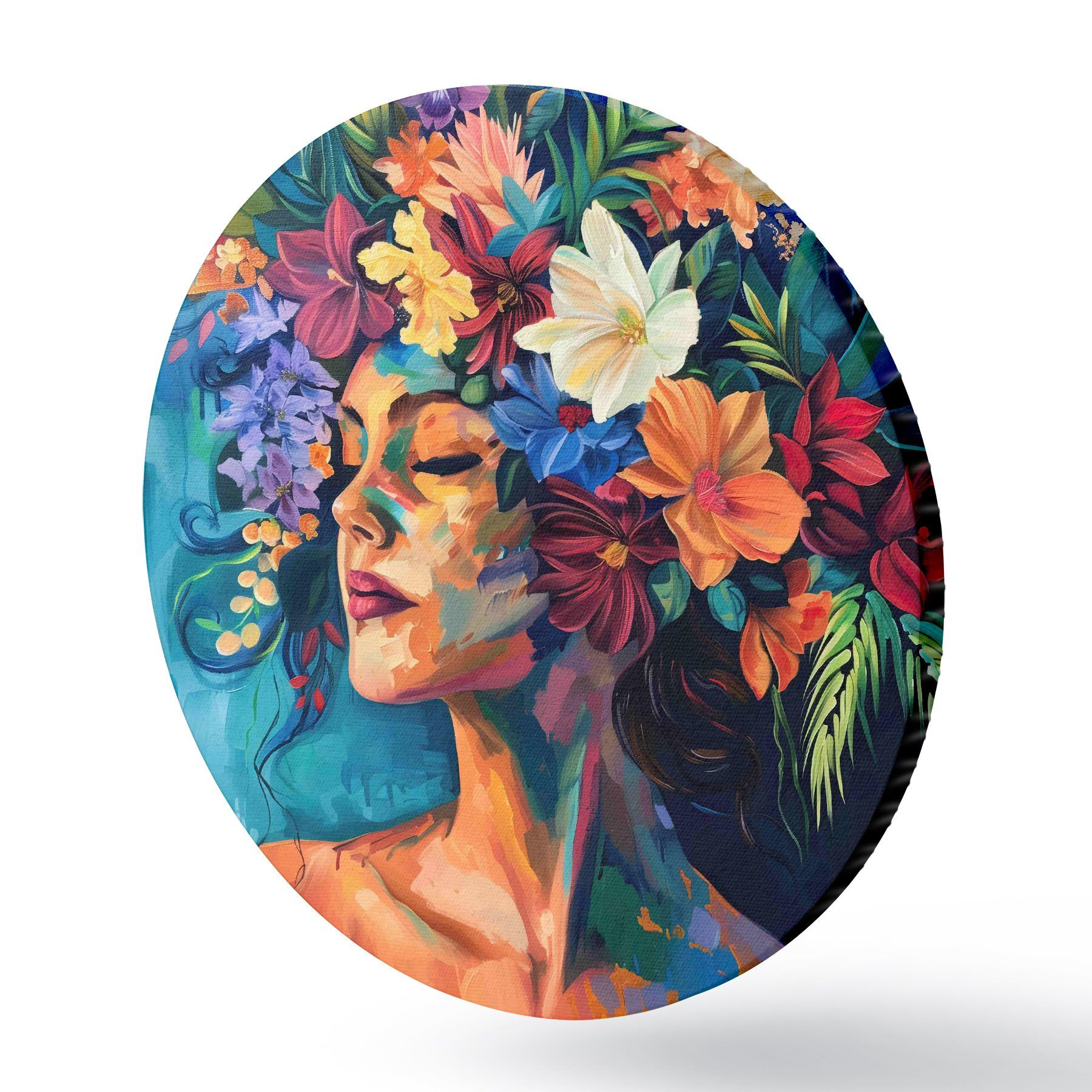 Apaļas gleznas Glezna, kurā attēlota sieviete ar ziediem matos r38574
