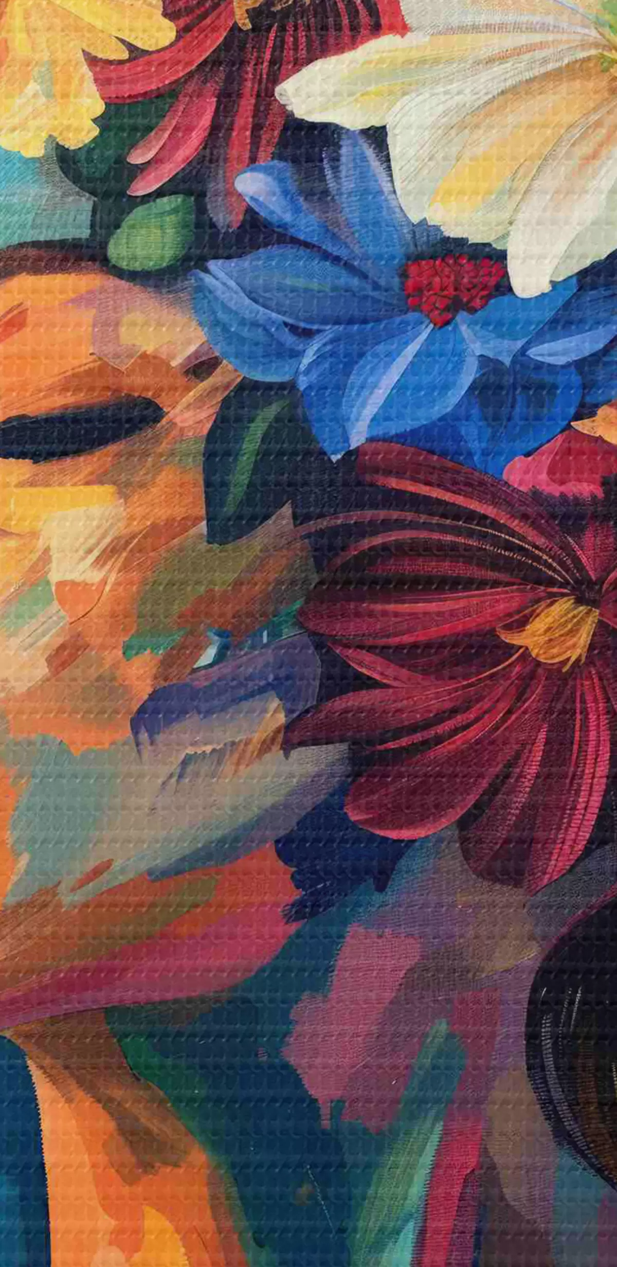 Smalkais diegu pinums uz šī audekla atgādina profesionālu mākslinieku audeklu virsmu.
