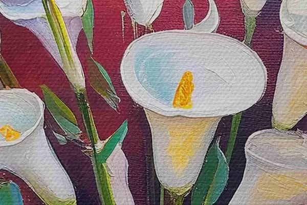 Smalkais diegu pinums uz šī audekla atgādina profesionālu mākslinieku audeklu virsmu.