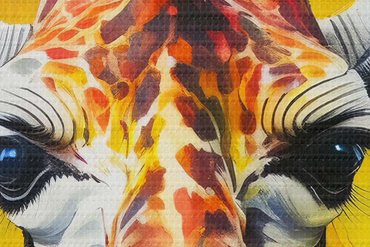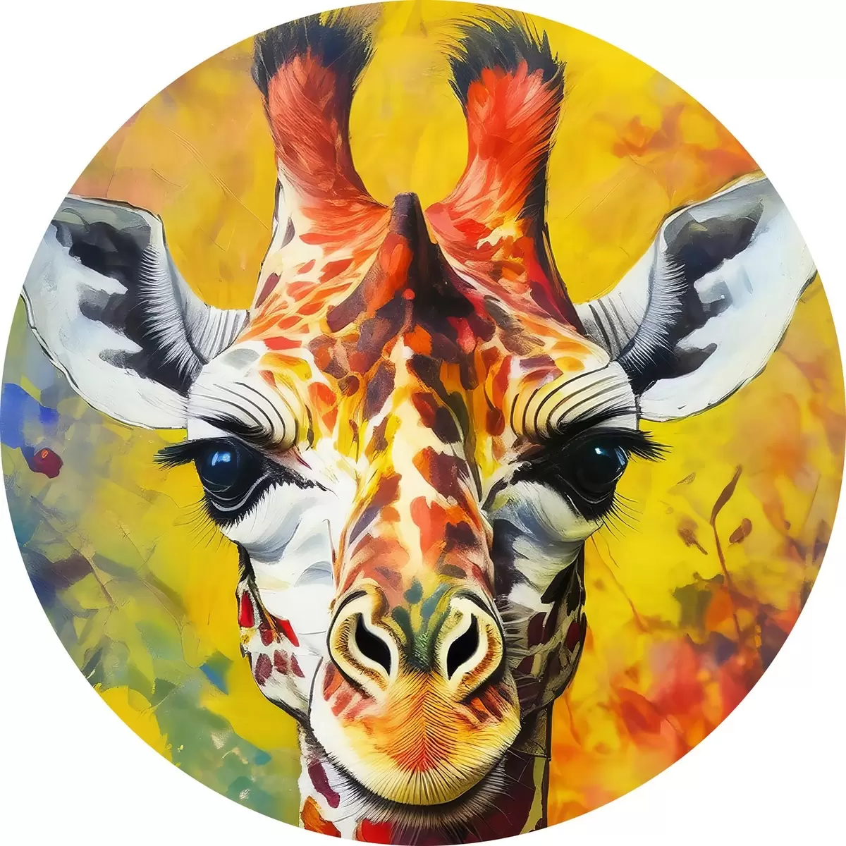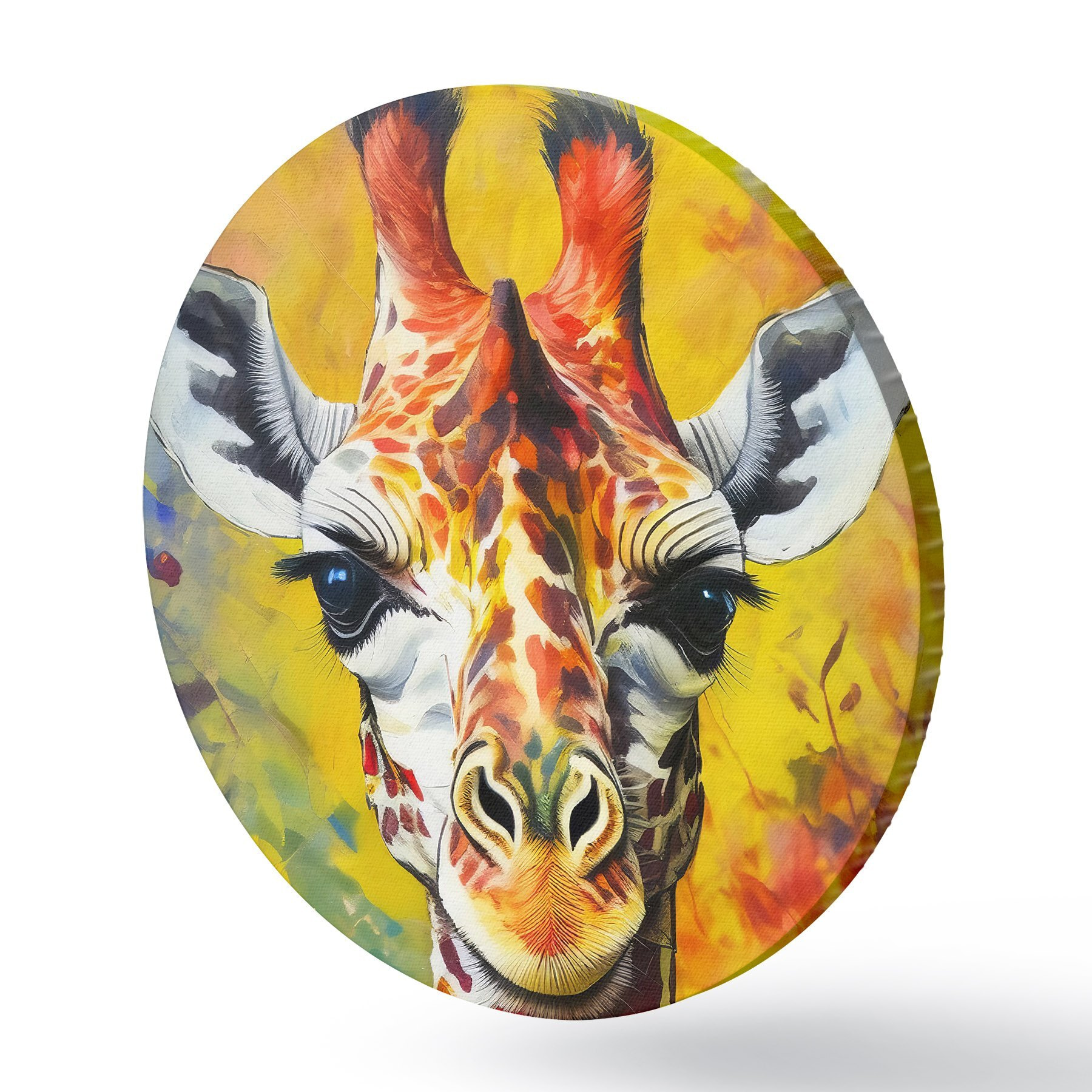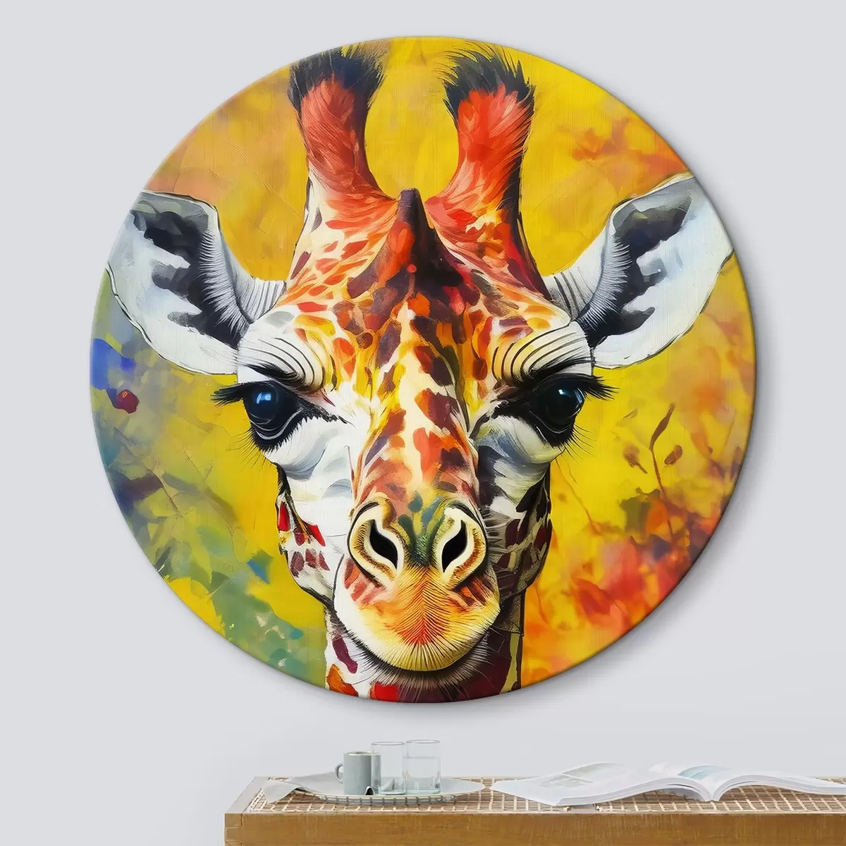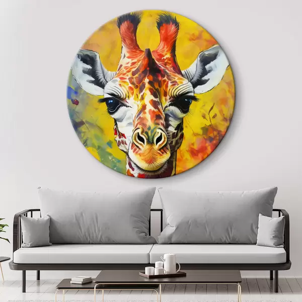 Apaļas gleznas žirafes portrets uzvalkā uz dzeltena fona r38606