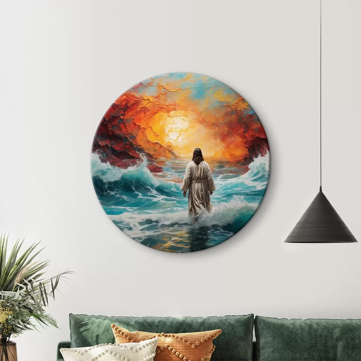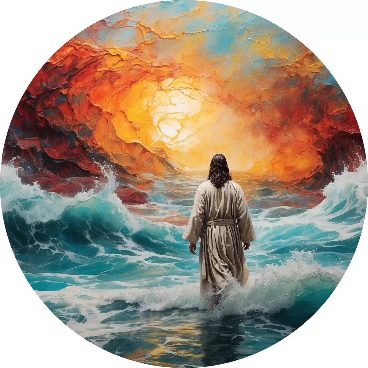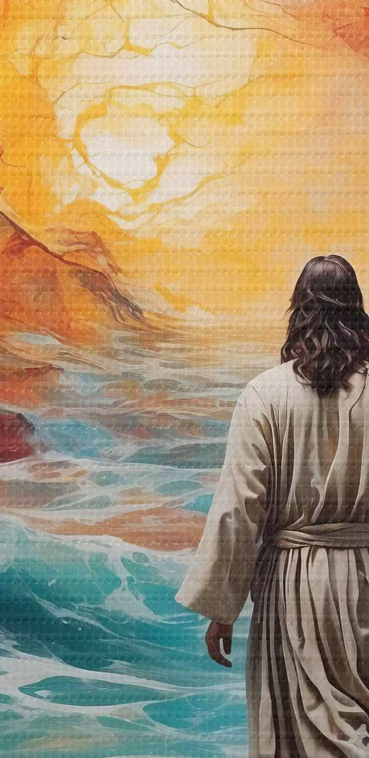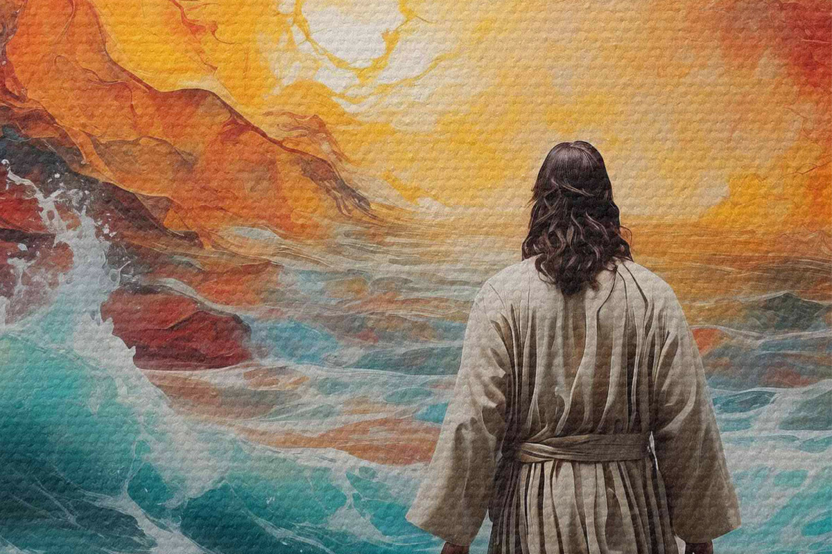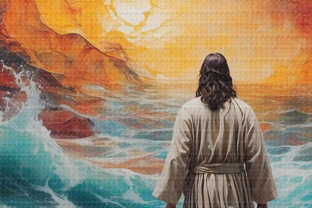Attēls Cilvēks staigā starp ugunīgajām debesīm un jūru Nr r38612