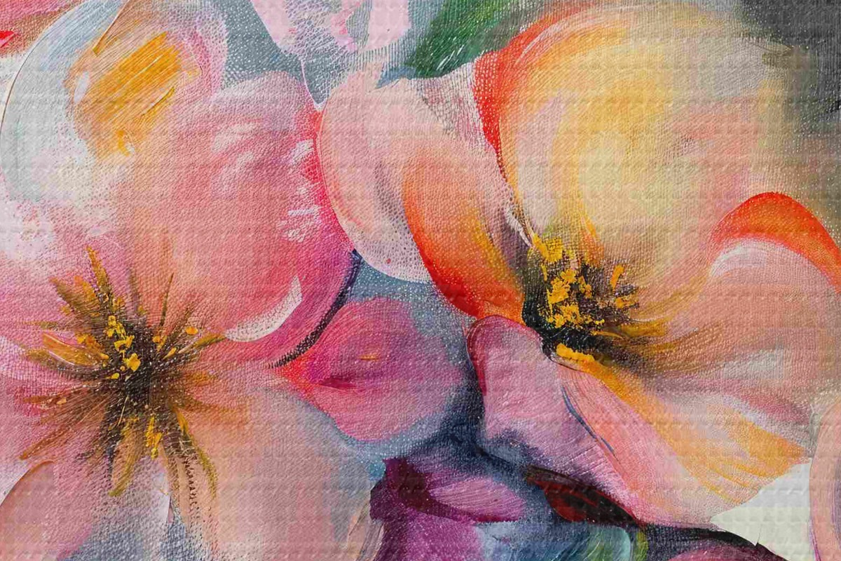 Smalkais diegu pinums uz šī audekla atgādina profesionālu mākslinieku audeklu virsmu.