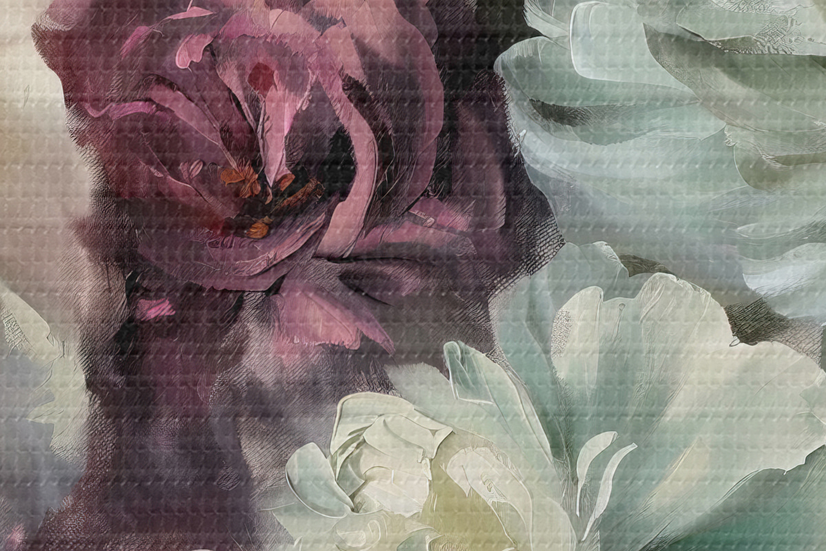 Smalkais diegu pinums uz šī audekla atgādina profesionālu mākslinieku audeklu virsmu.