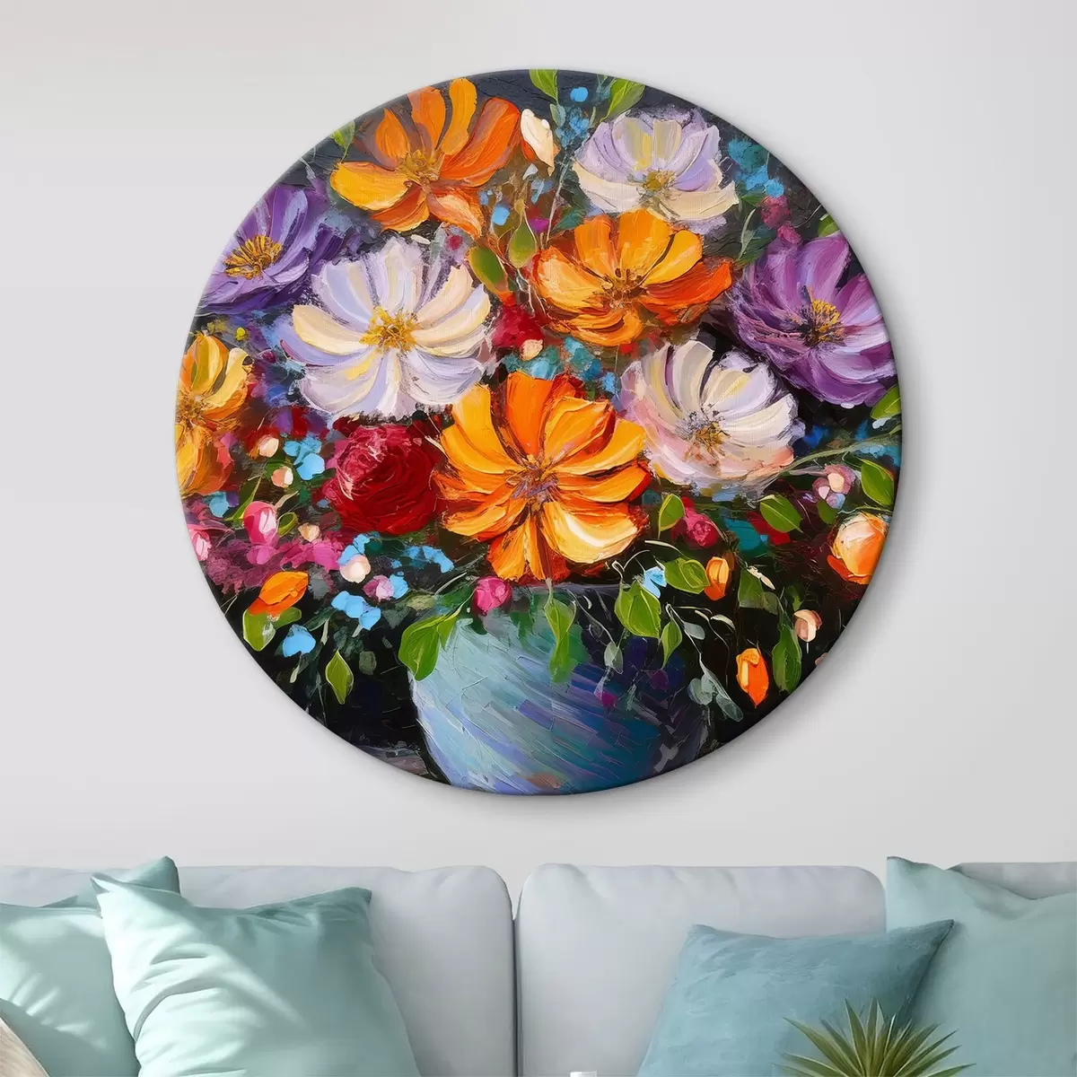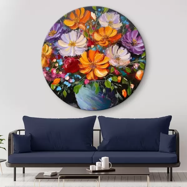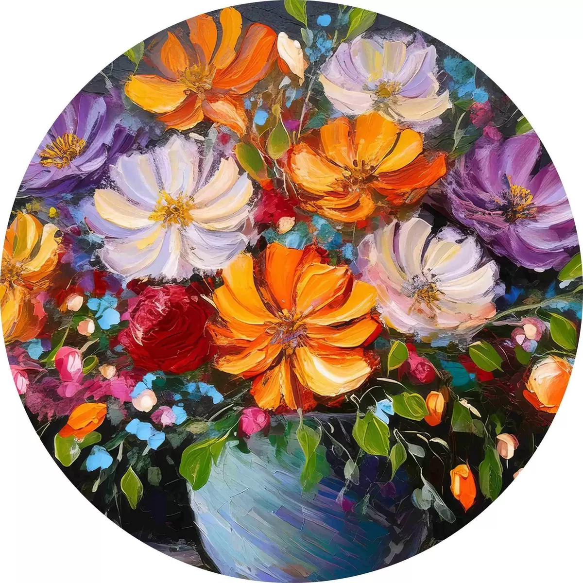 Apaļas gleznas Attēls ziedu zilā vāzē r38658
