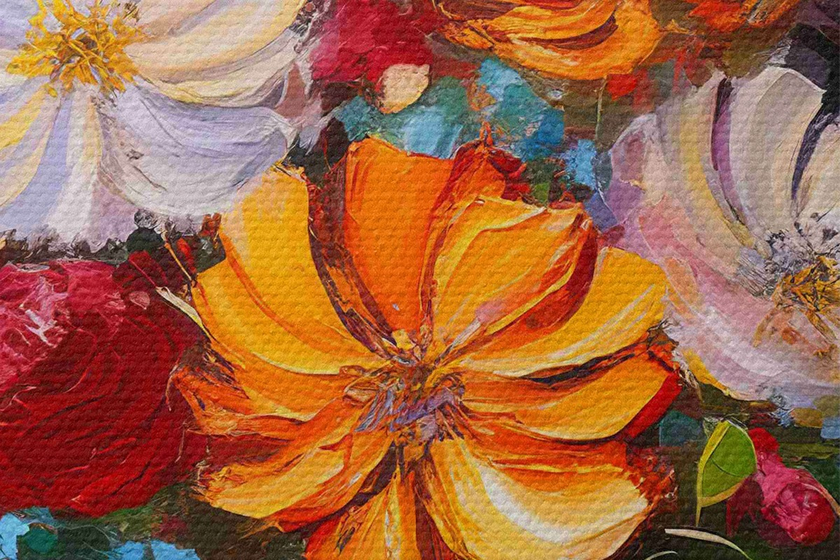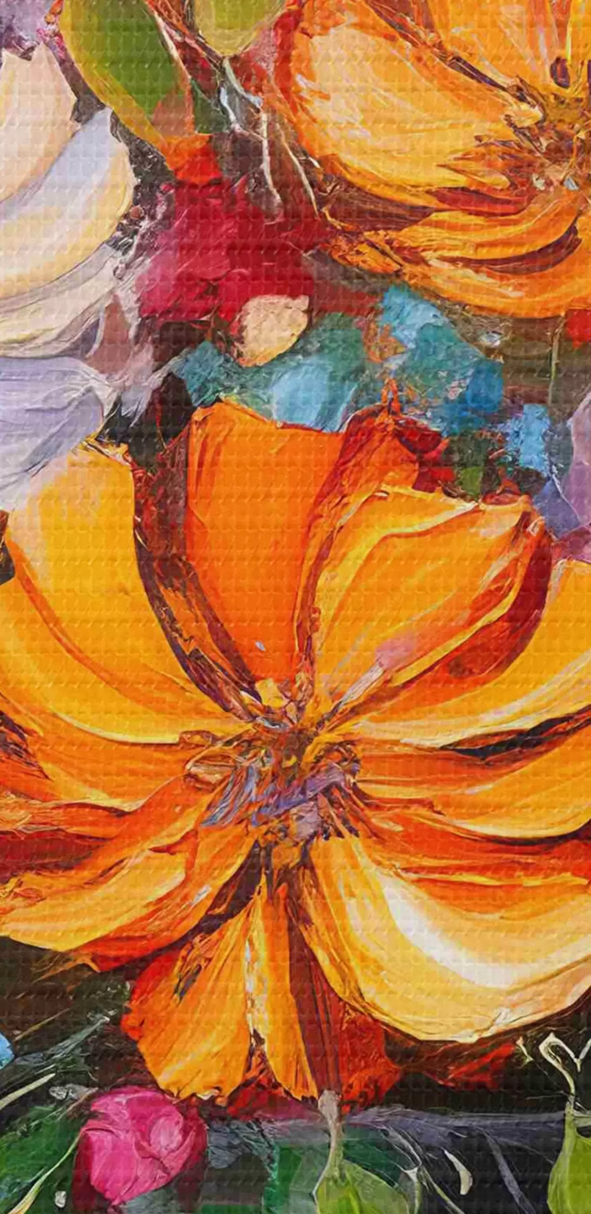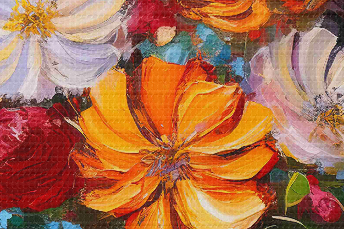 Smalkais diegu pinums uz šī audekla atgādina profesionālu mākslinieku audeklu virsmu.