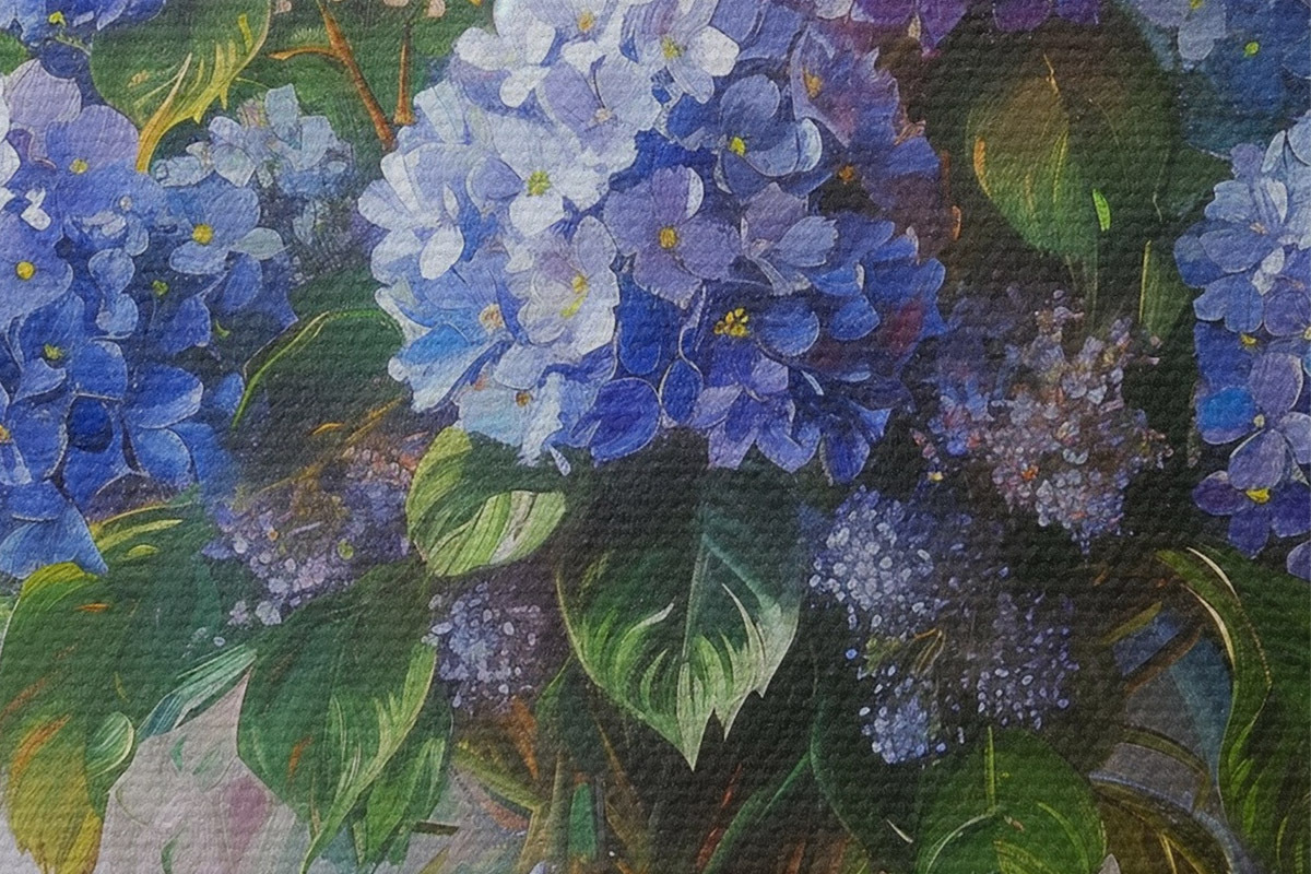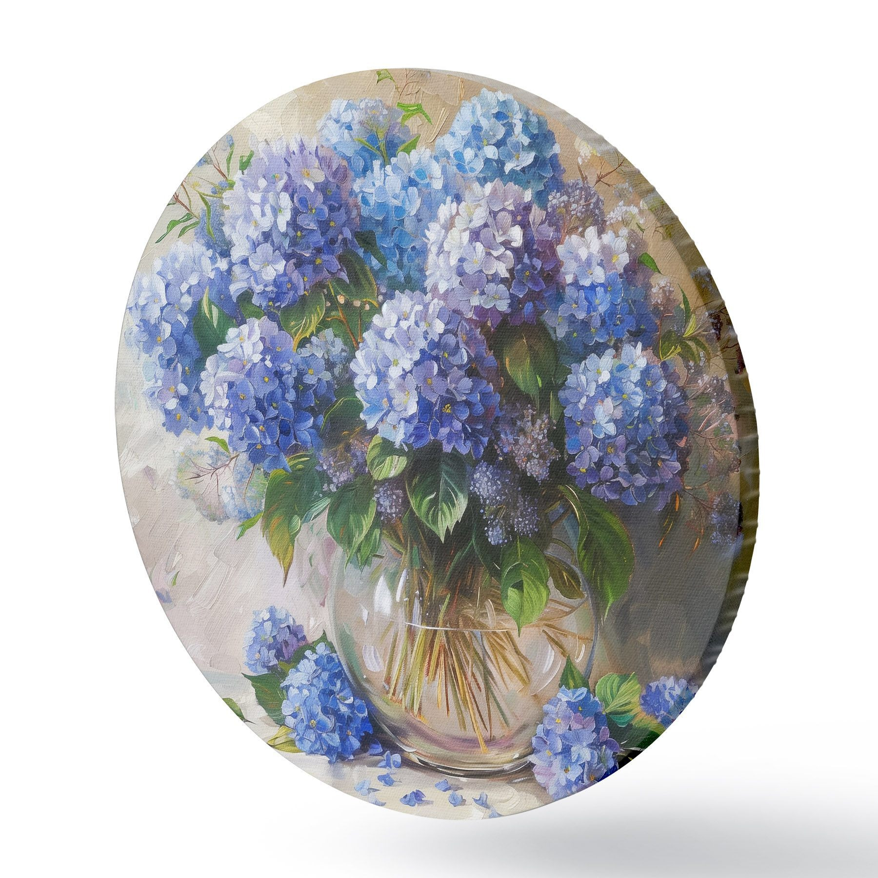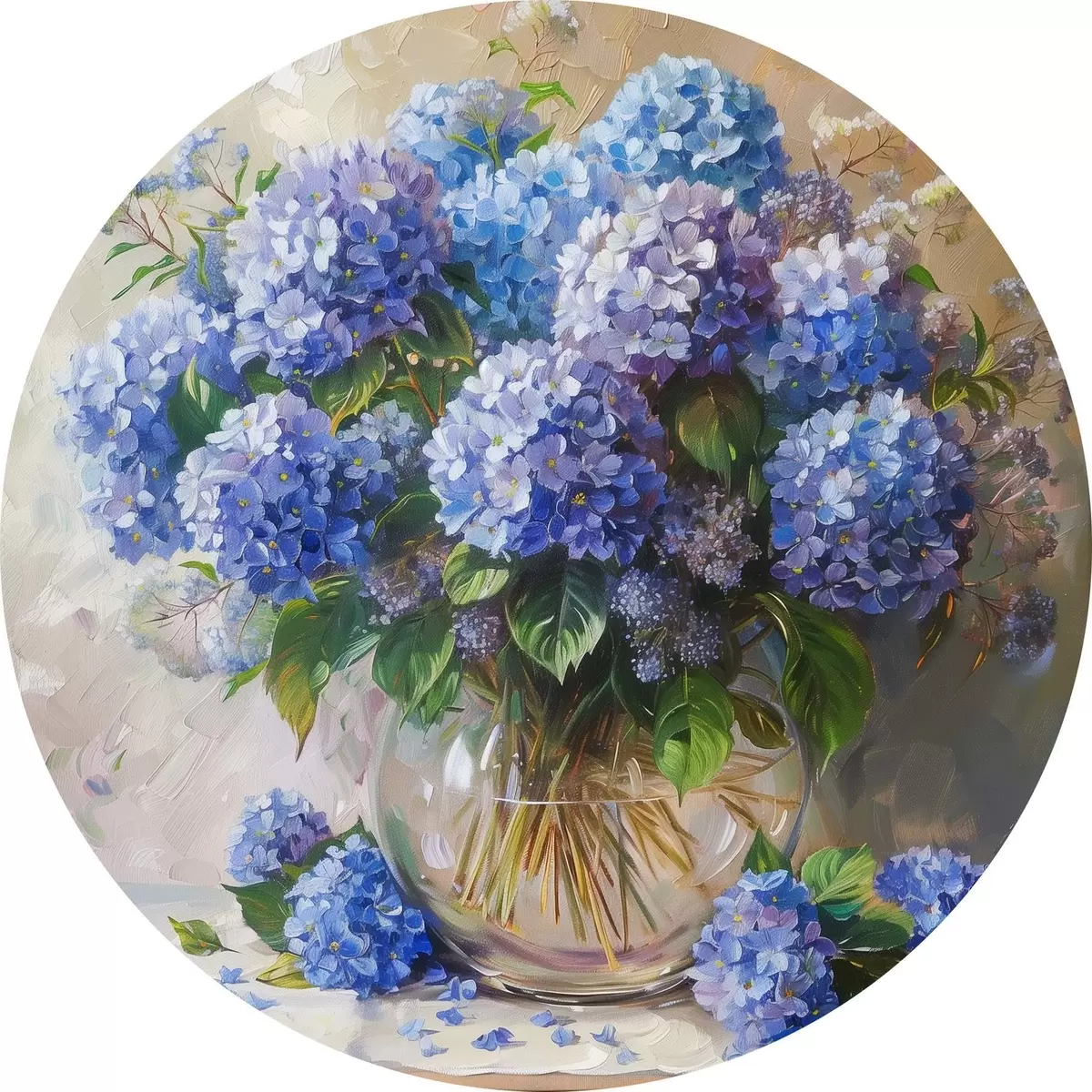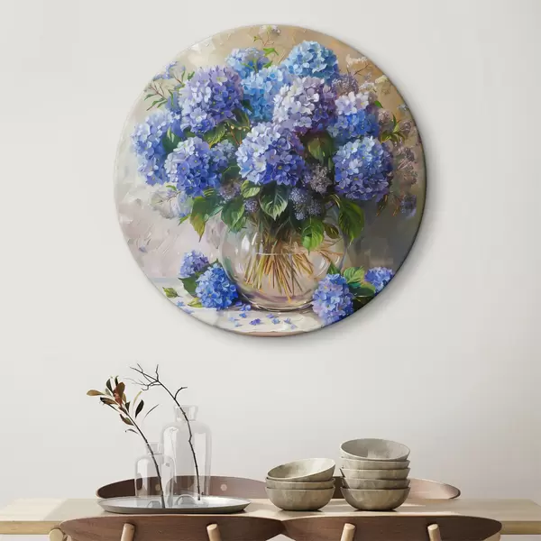 Apaļas gleznas Uz galda zilas hortenzijas r38709