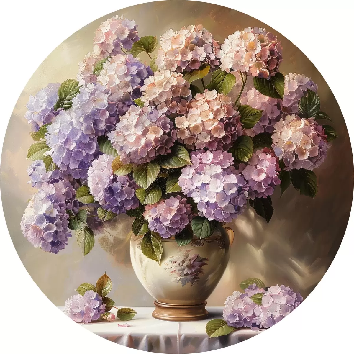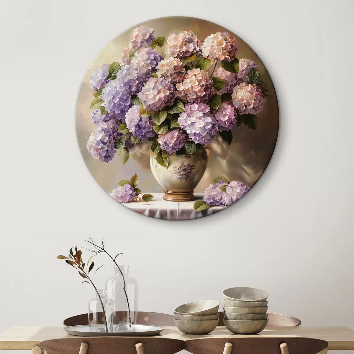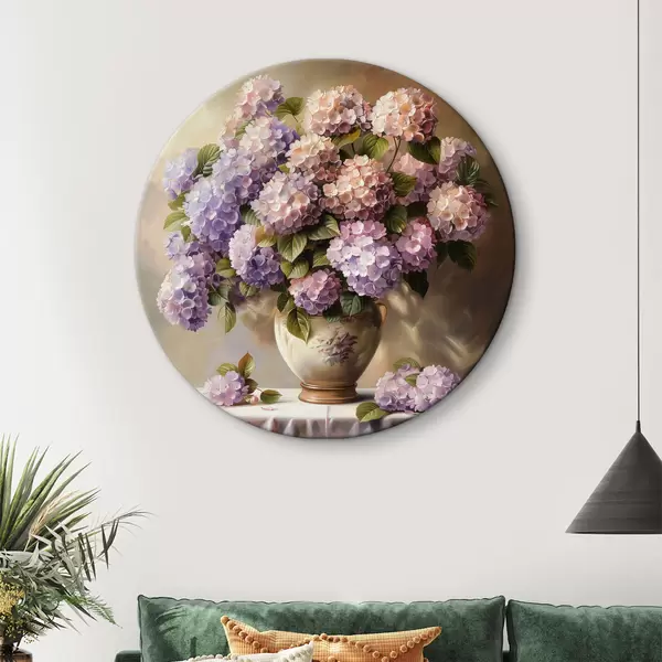 Apaļas gleznas Smalkas hortenzijas uz galda r38710