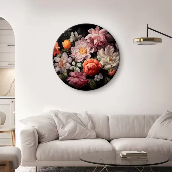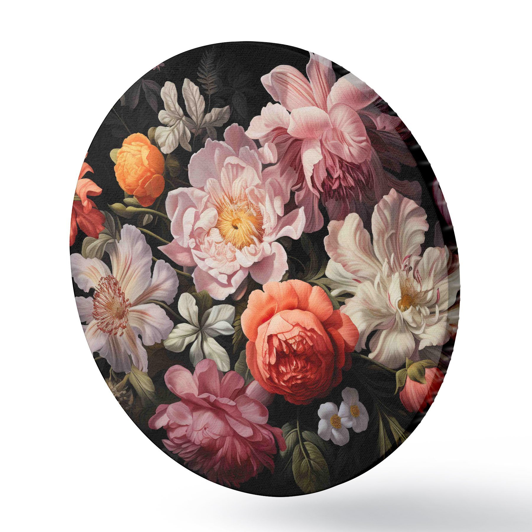 Apaļas gleznas Attēls ziedu uz melna fona r38721