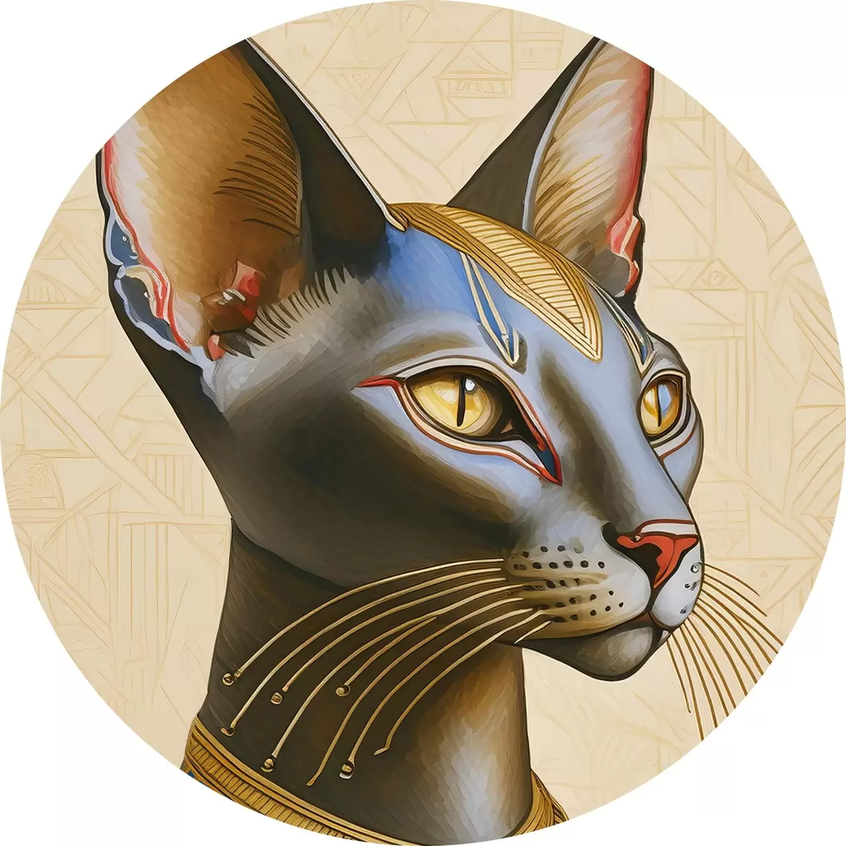 Apaļas gleznas Basteta, ēģiptiešu dieviete, kaķis profilā r38725