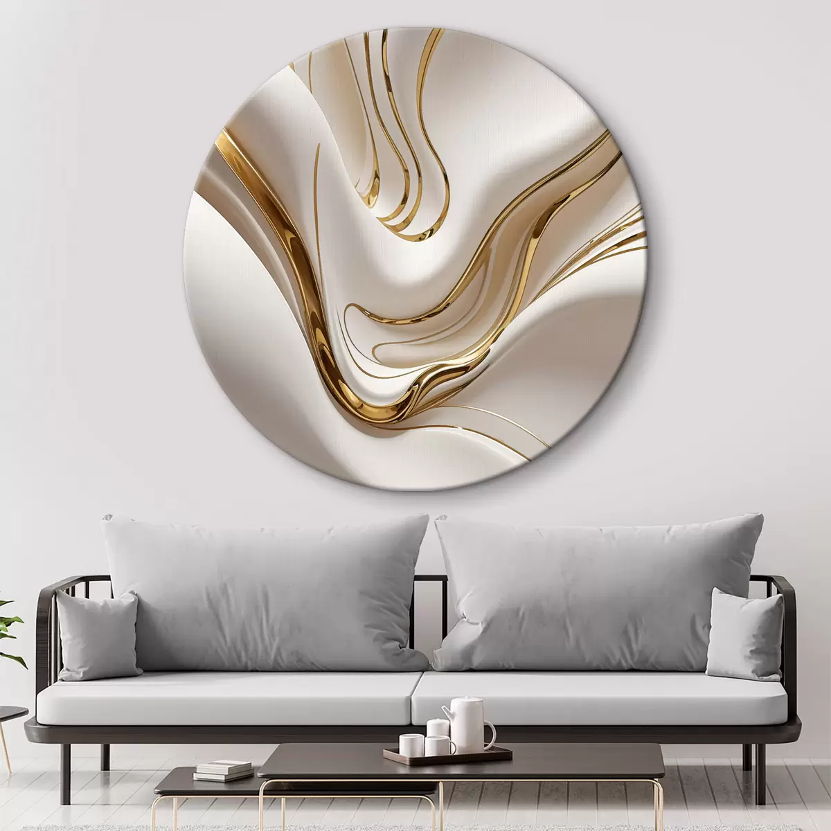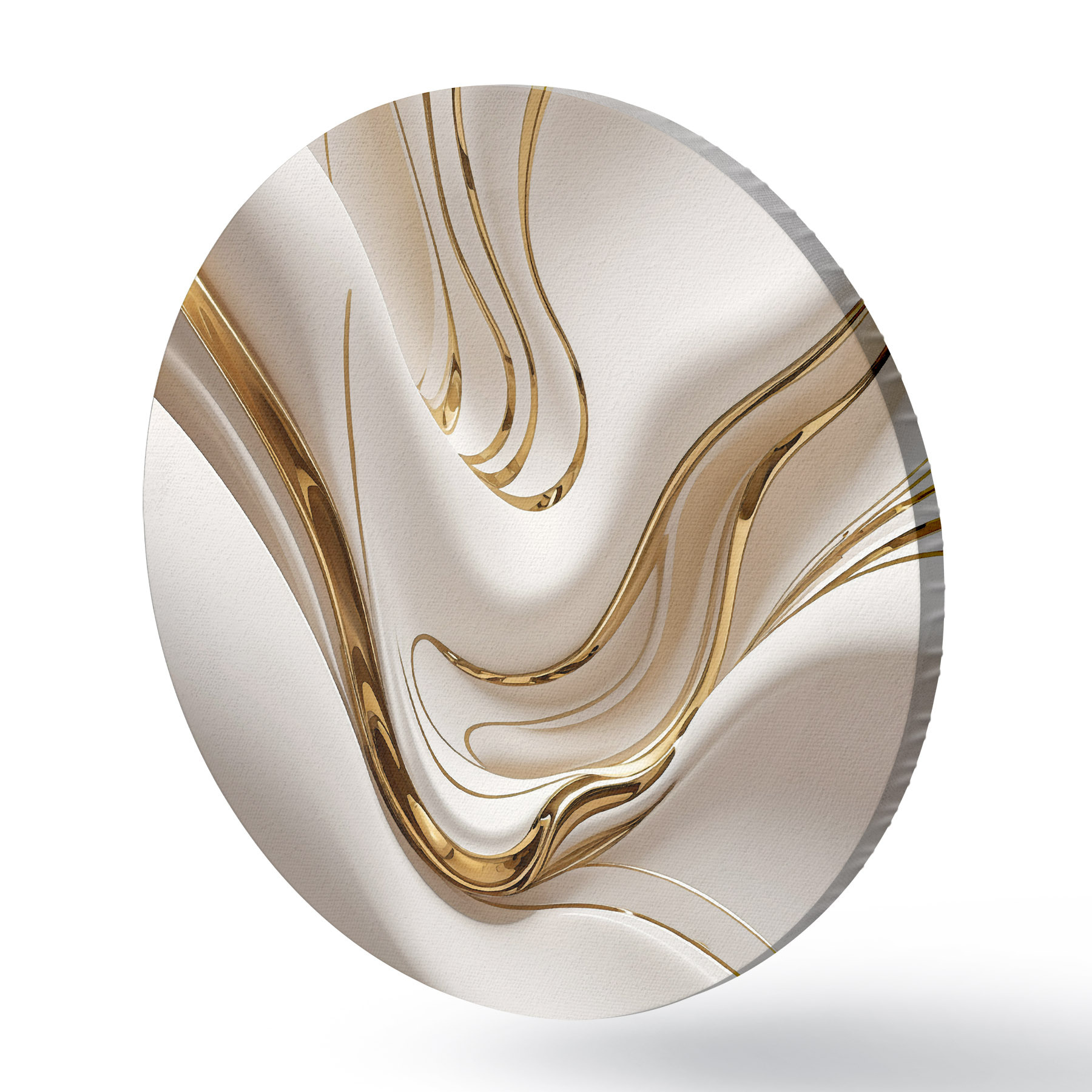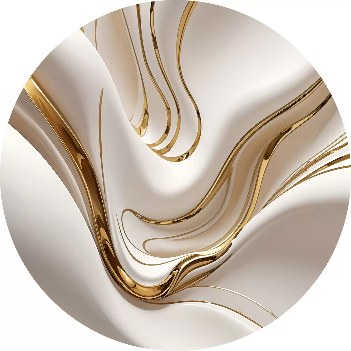 Apaļas gleznas Plūstošas baltas abstraktas formas, kas atgādina šķidru vai izkausētu metālu, dinamiska kompozīcija r38767