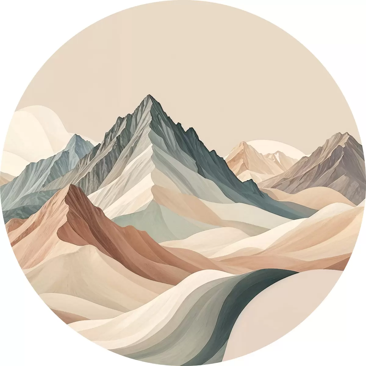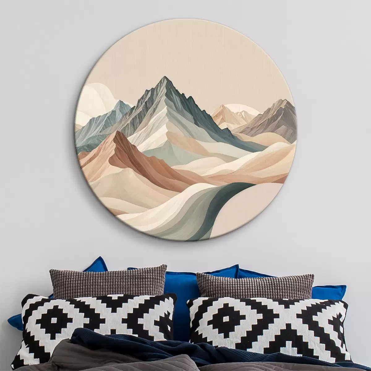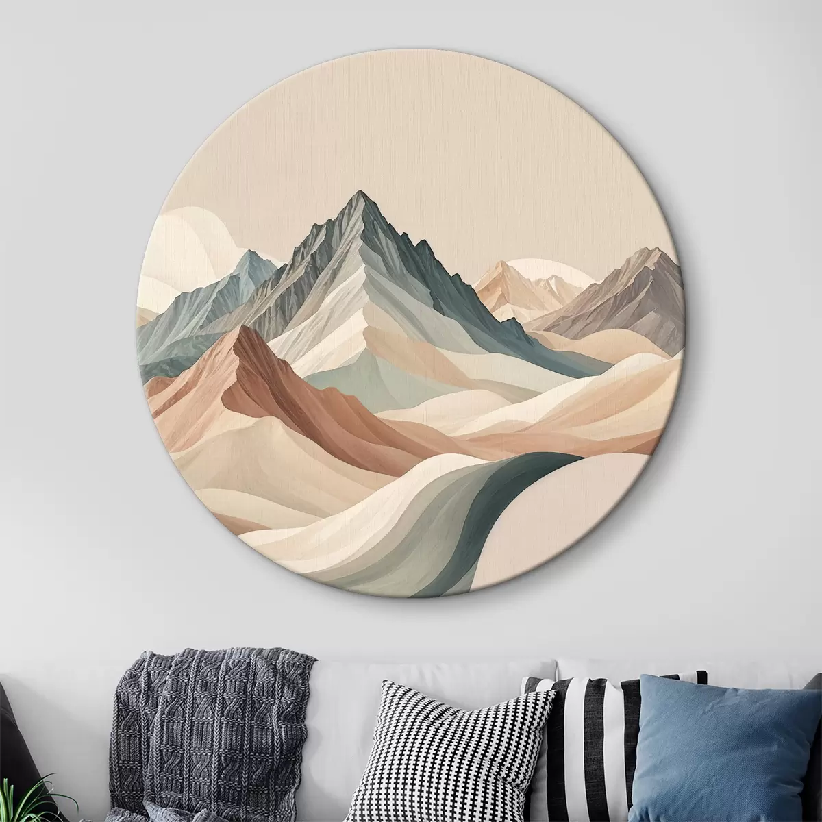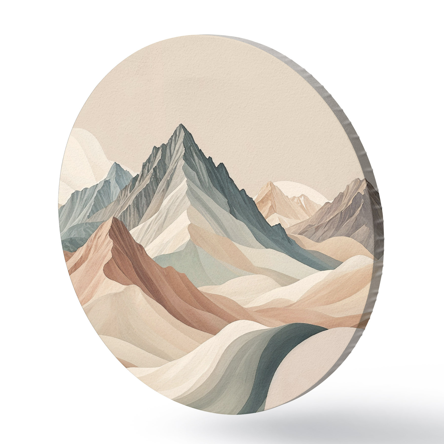 Apaļas gleznas Minimālisma kalnu ainava ar akmeņainām virsotnēm un kalniem bēšā krāsā r38770