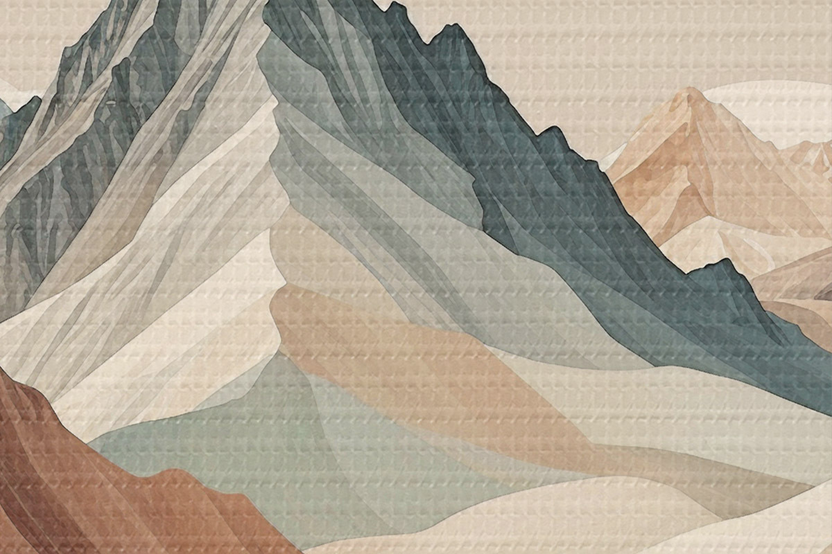 Attēls Minimālisma kalnu ainava ar akmeņainām virsotnēm un kalniem bēšā krāsā Nr r38770