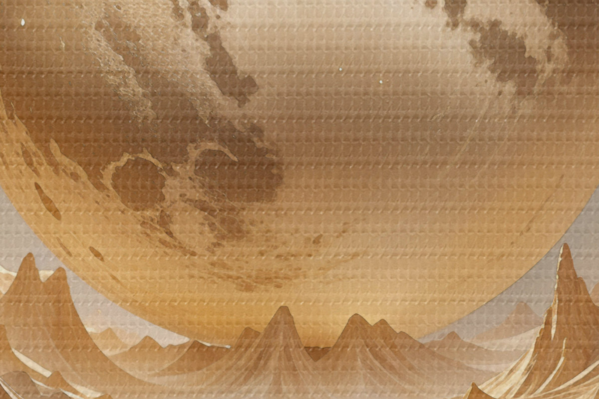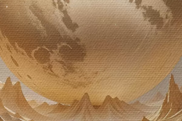 Attēls Spīdošs pilnmēness virs sirreālas kalnainas ainavas ar virsotnēm Nr r38775