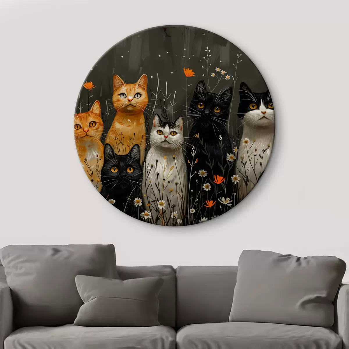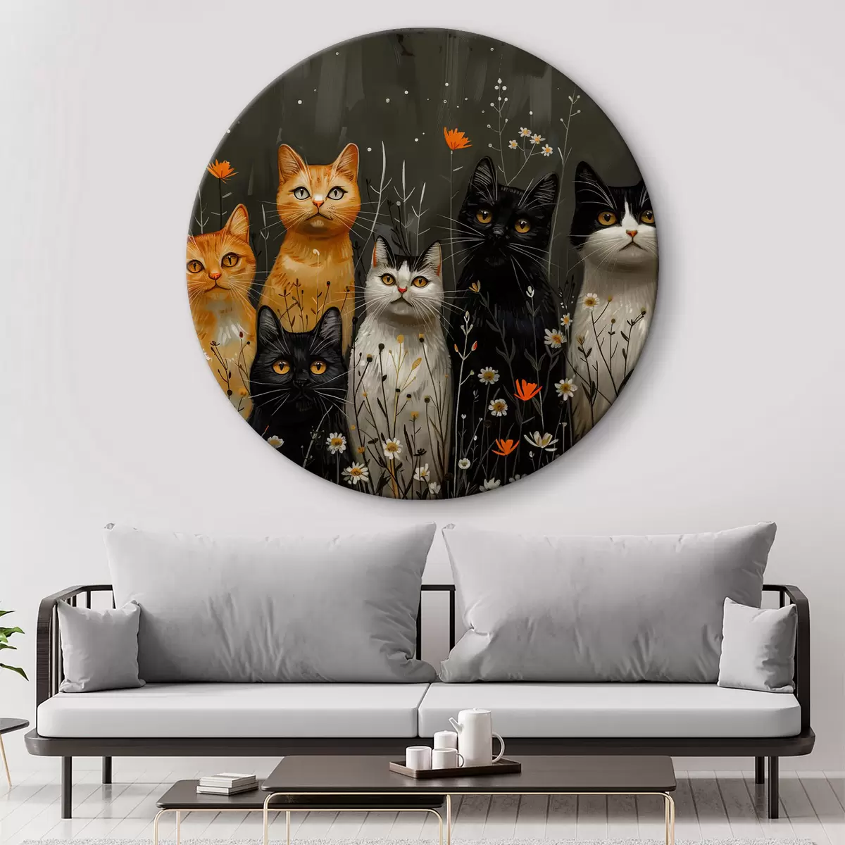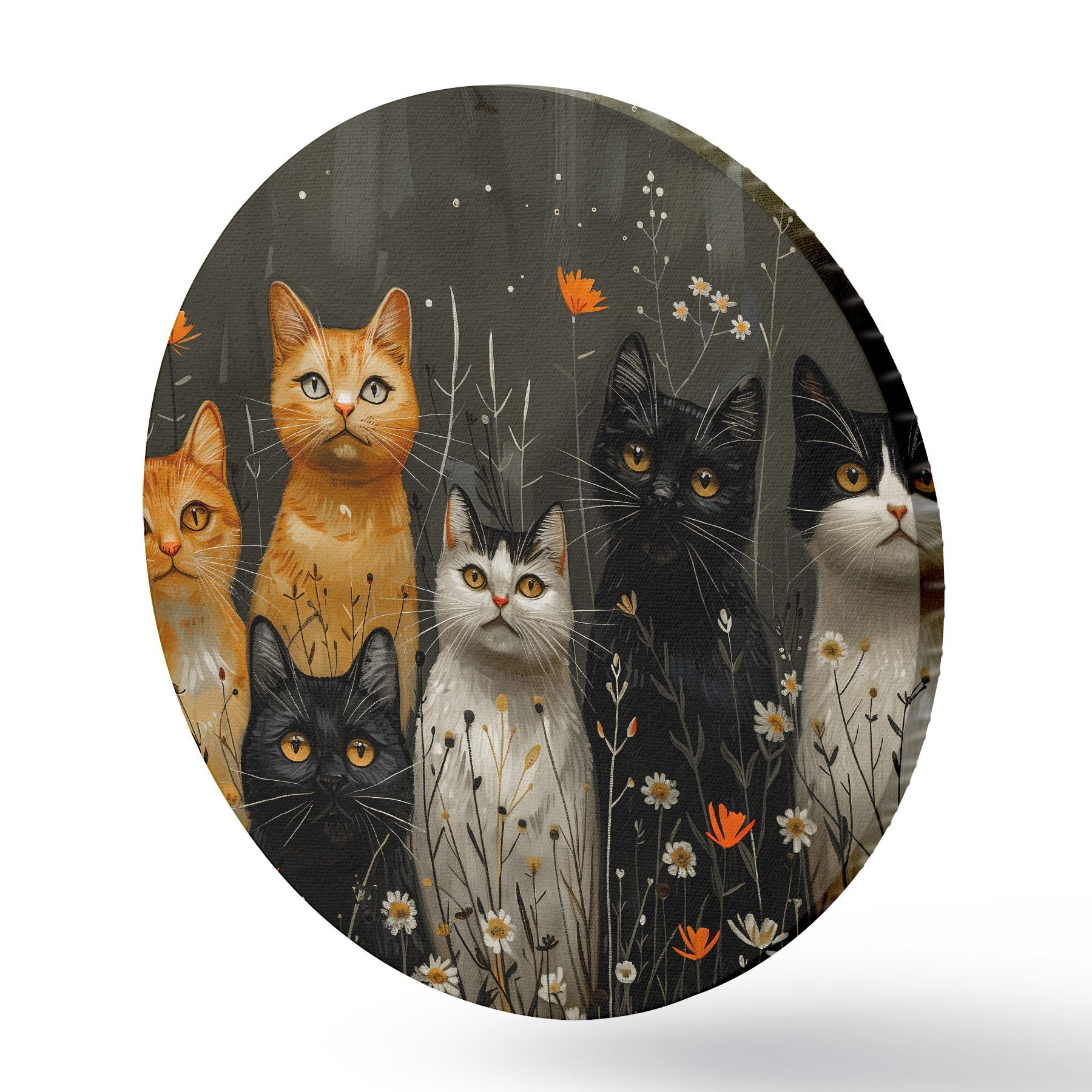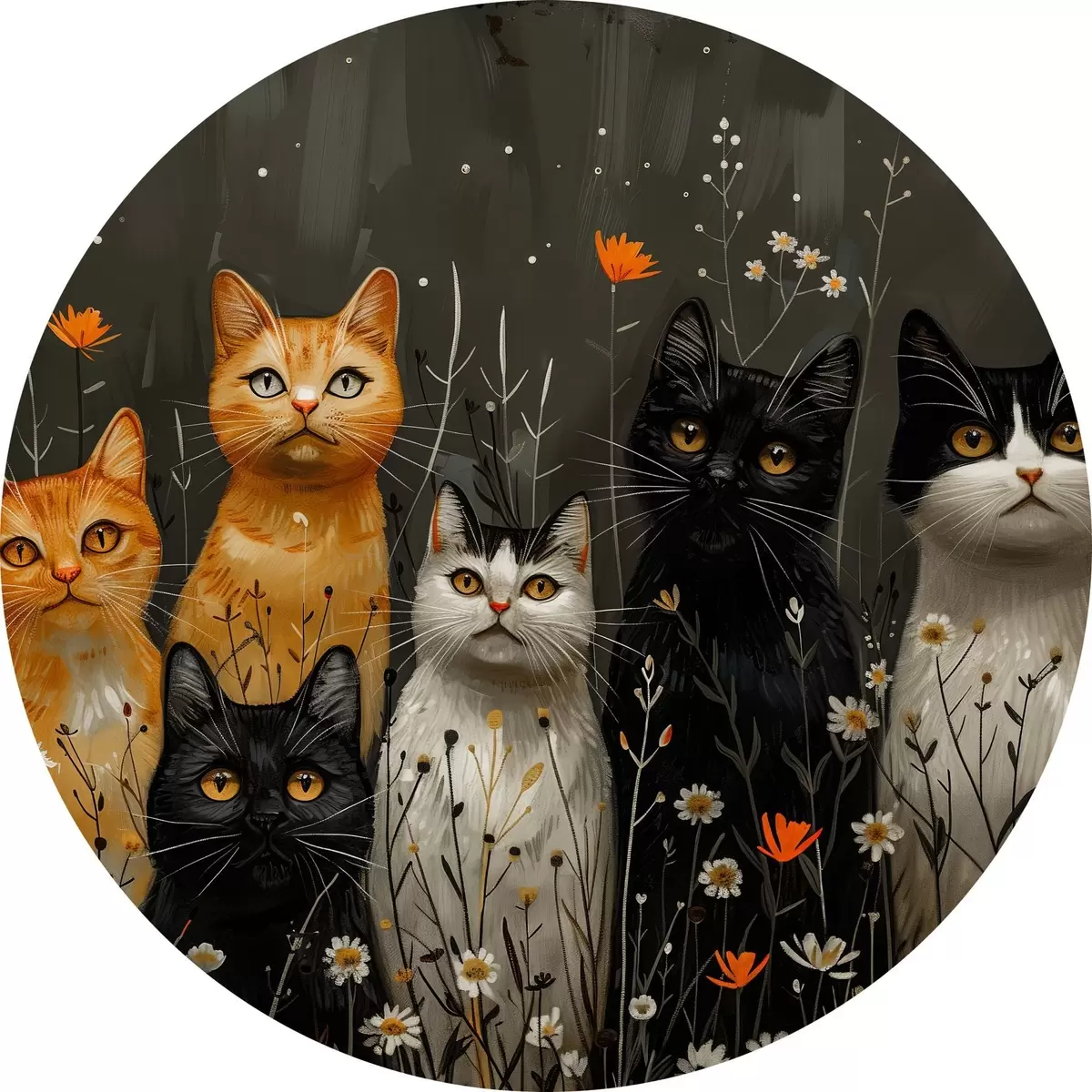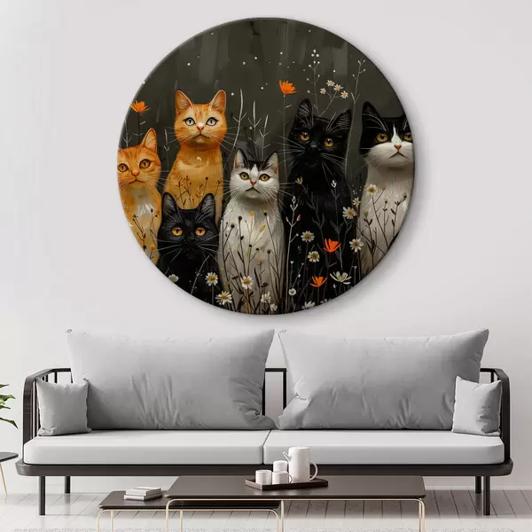 Apaļas gleznas Kaķi ziedos r38798