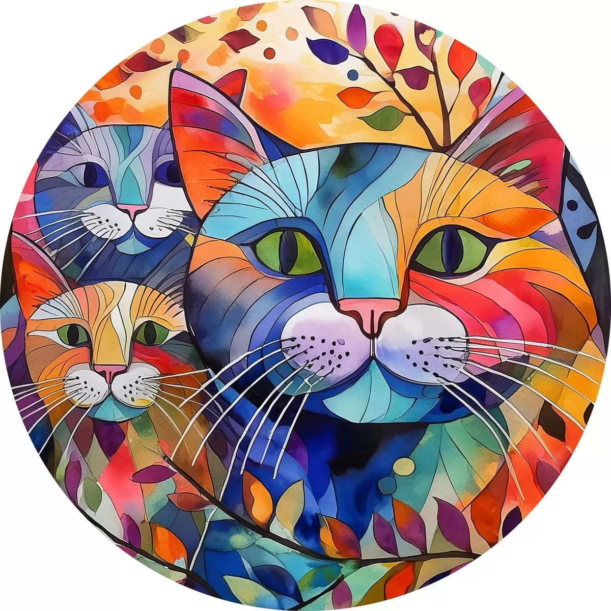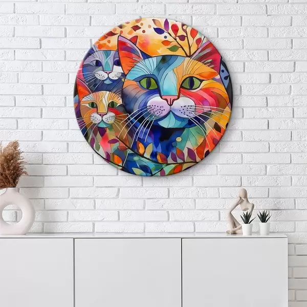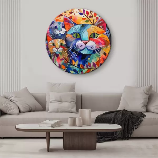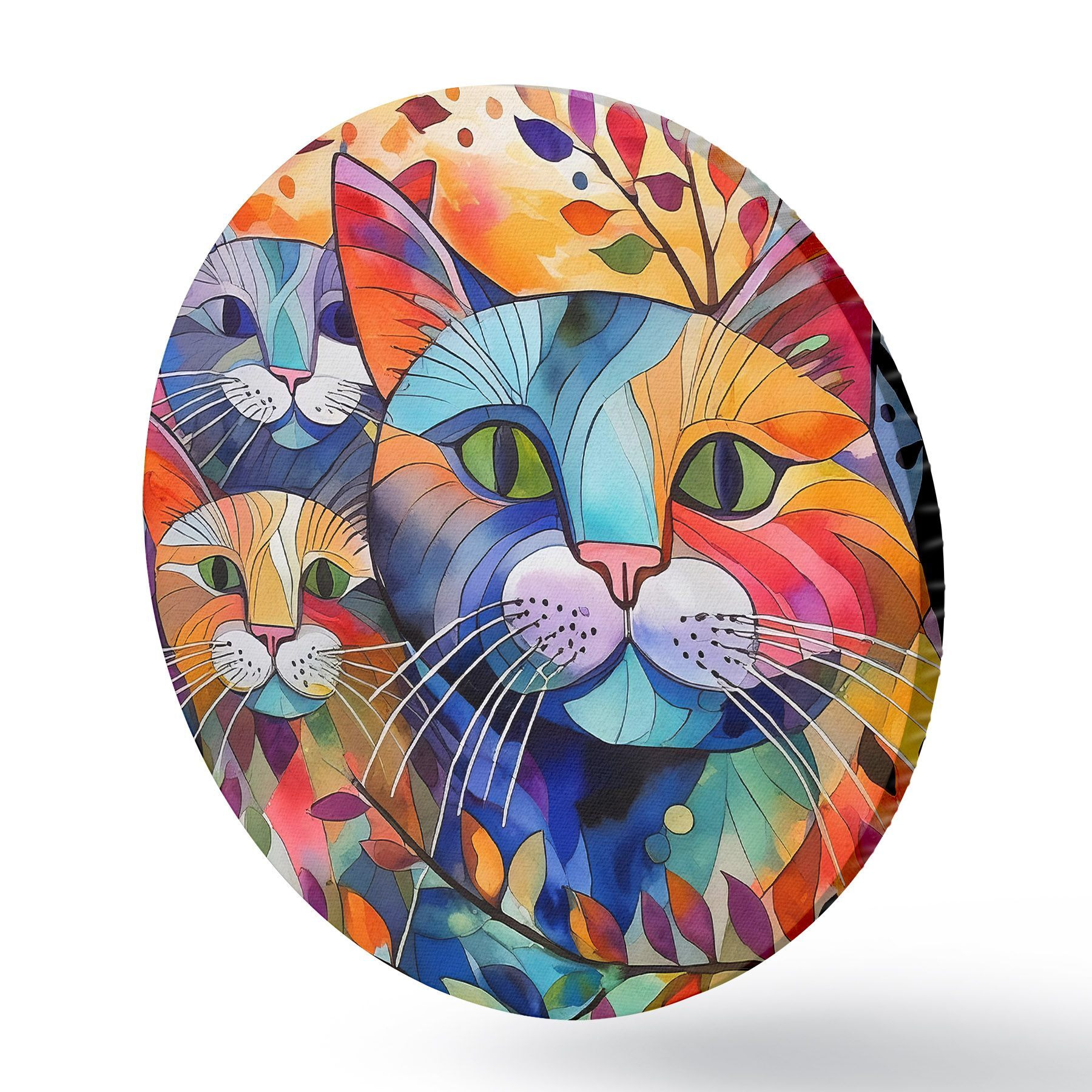 Apaļas gleznas Daudzkrāsaina abstrakcija ar kaķiem r38814