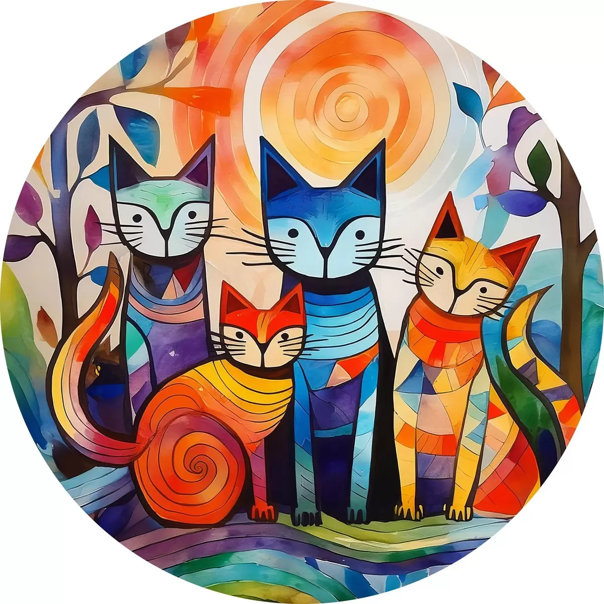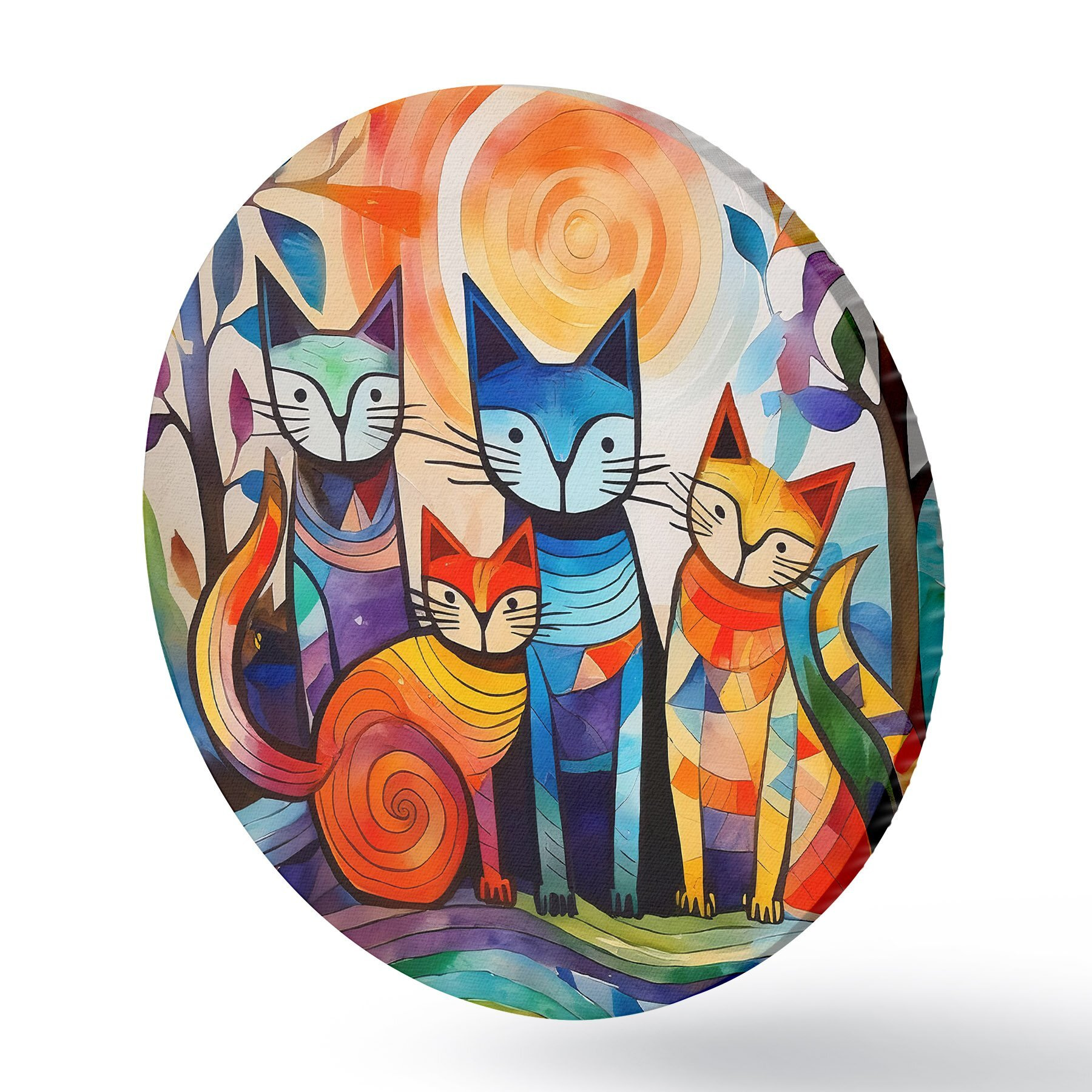 Apaļas gleznas Daudzkrāsaina abstrakcija ar interesantiem kaķiem r38815