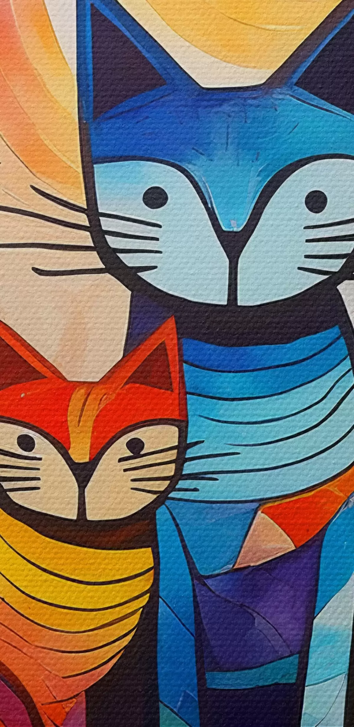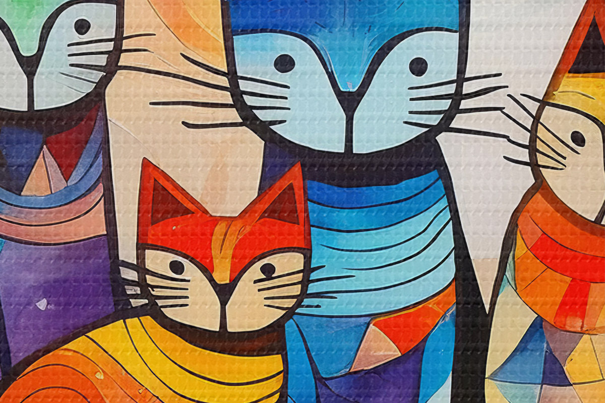 Attēls Daudzkrāsaina abstrakcija ar interesantiem kaķiem Nr r38815
