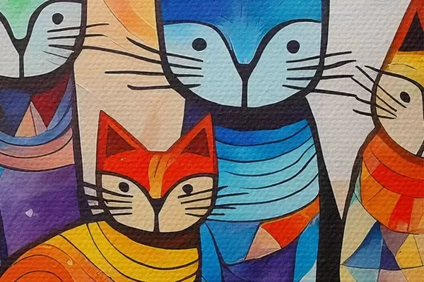 Attēls Daudzkrāsaina abstrakcija ar interesantiem kaķiem Nr r38815