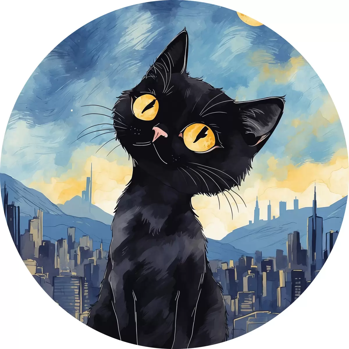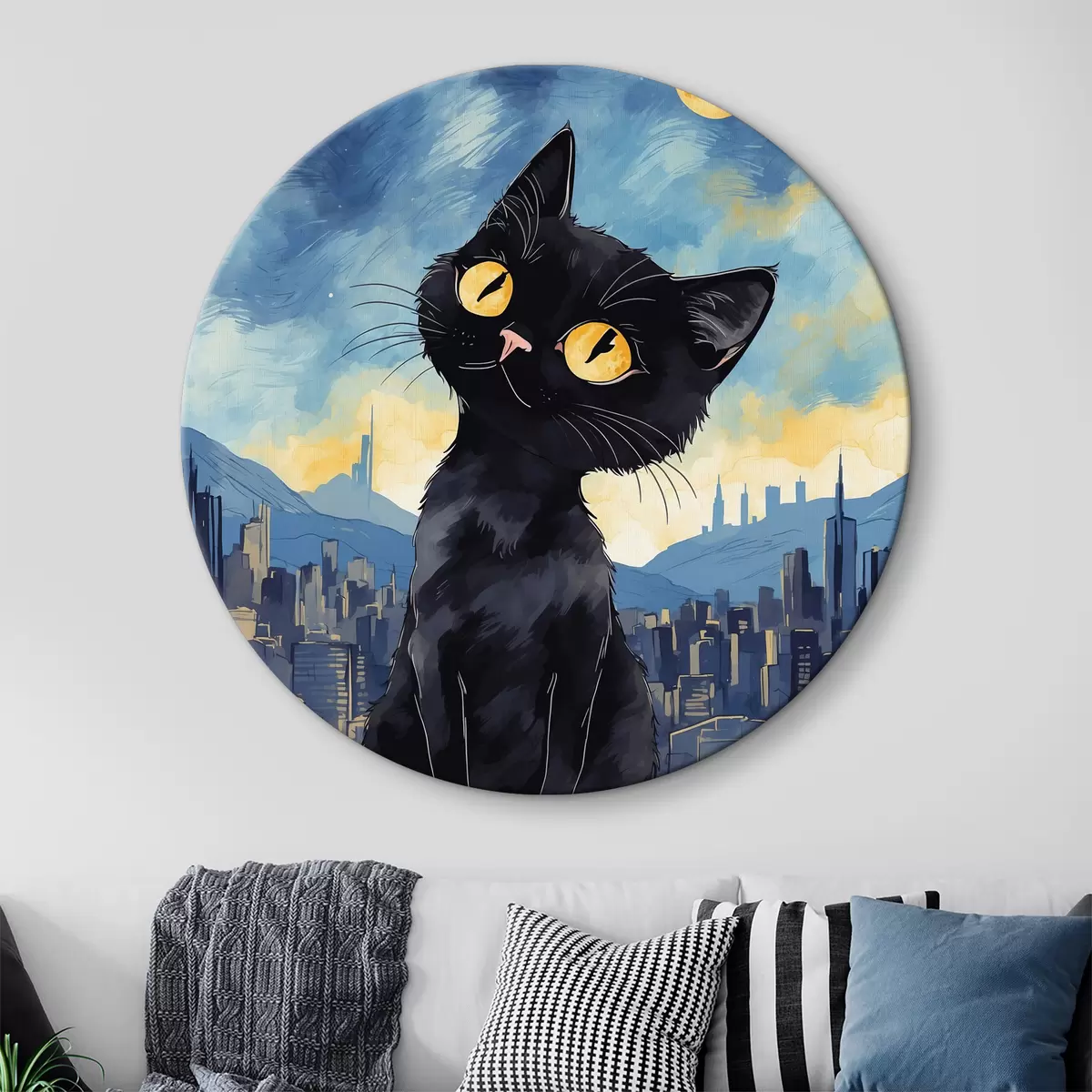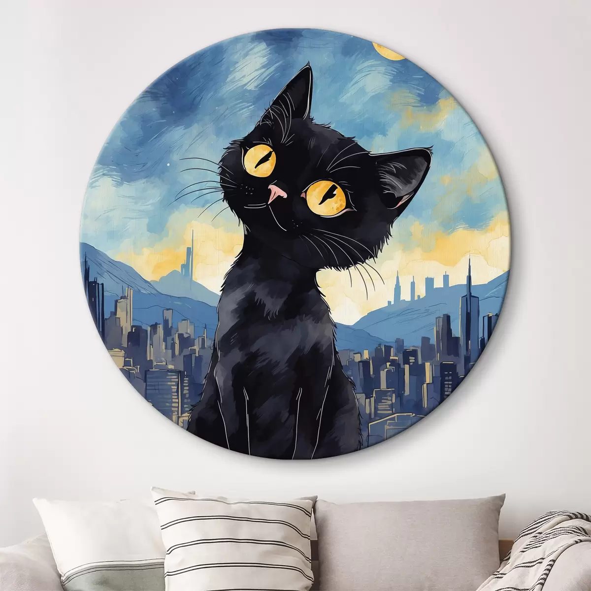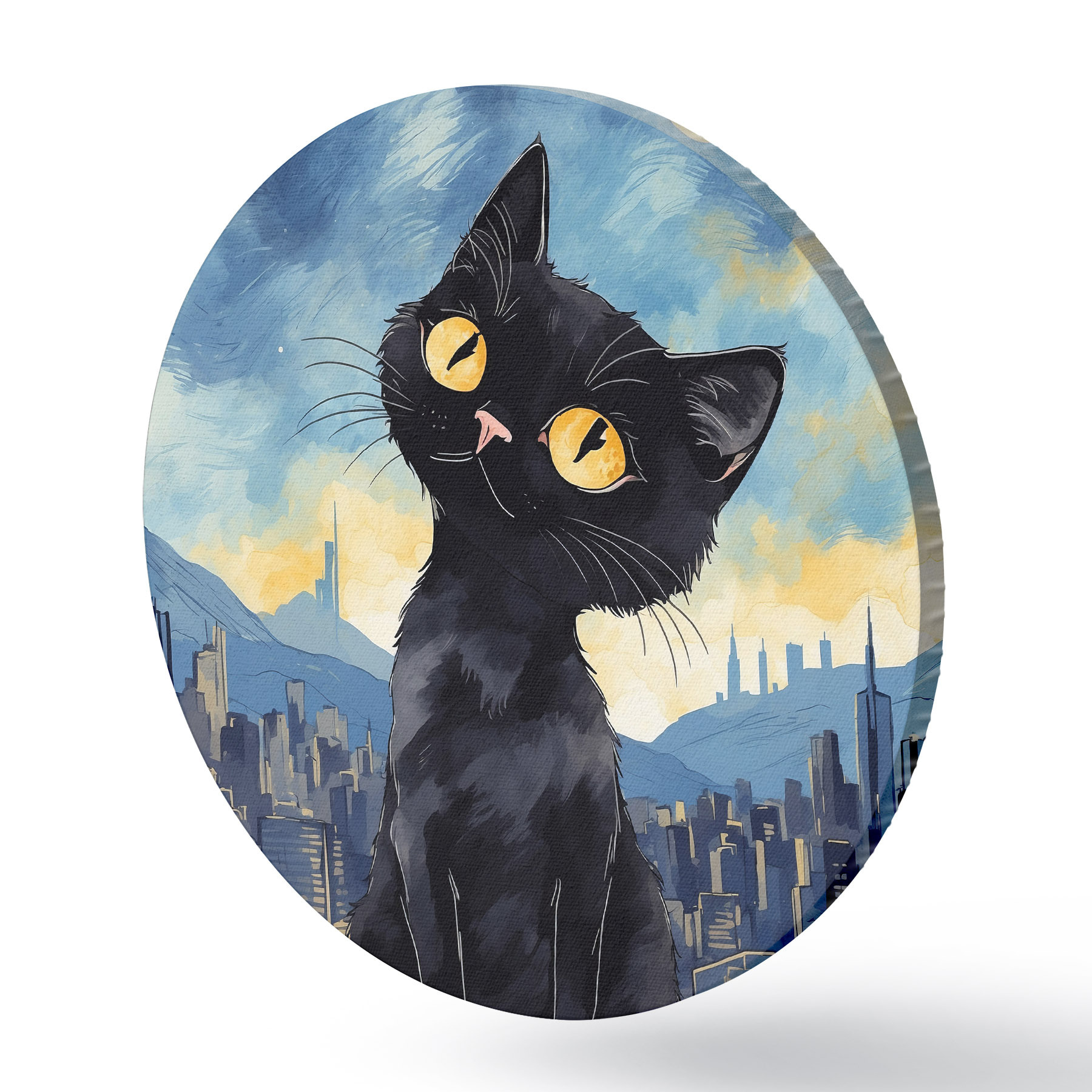 Apaļas gleznas Kaķis uz pilsētas fona r38861
