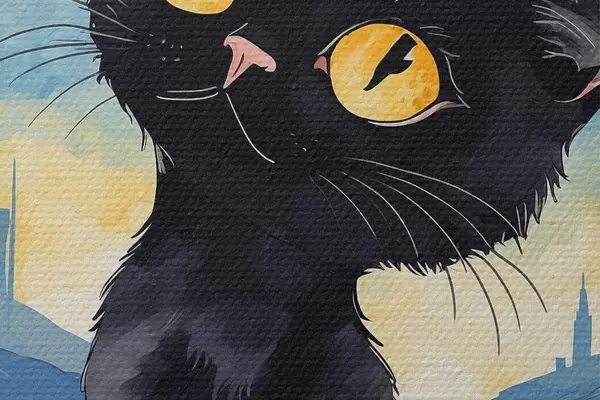 Attēls Kaķis uz pilsētas fona Nr r38861