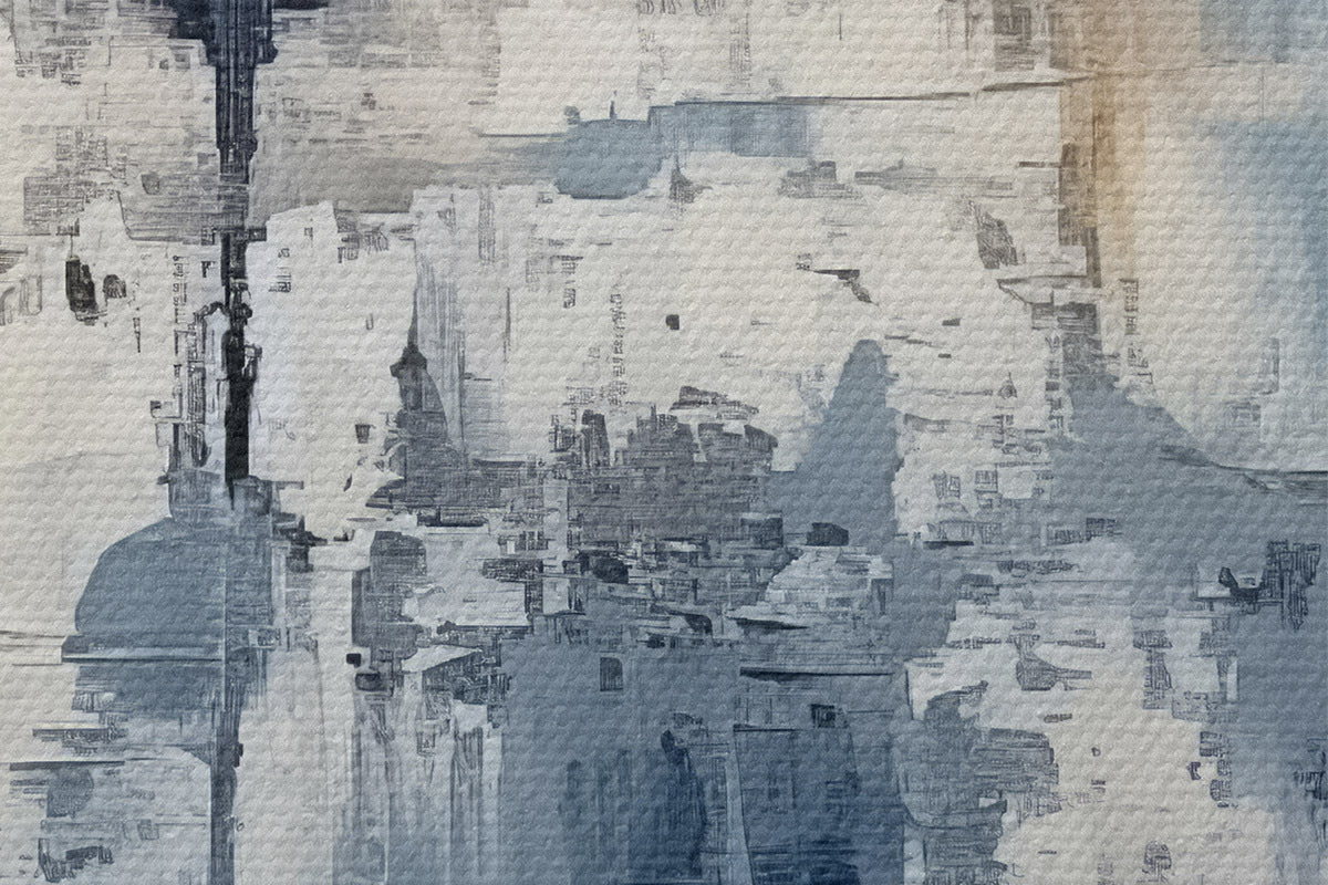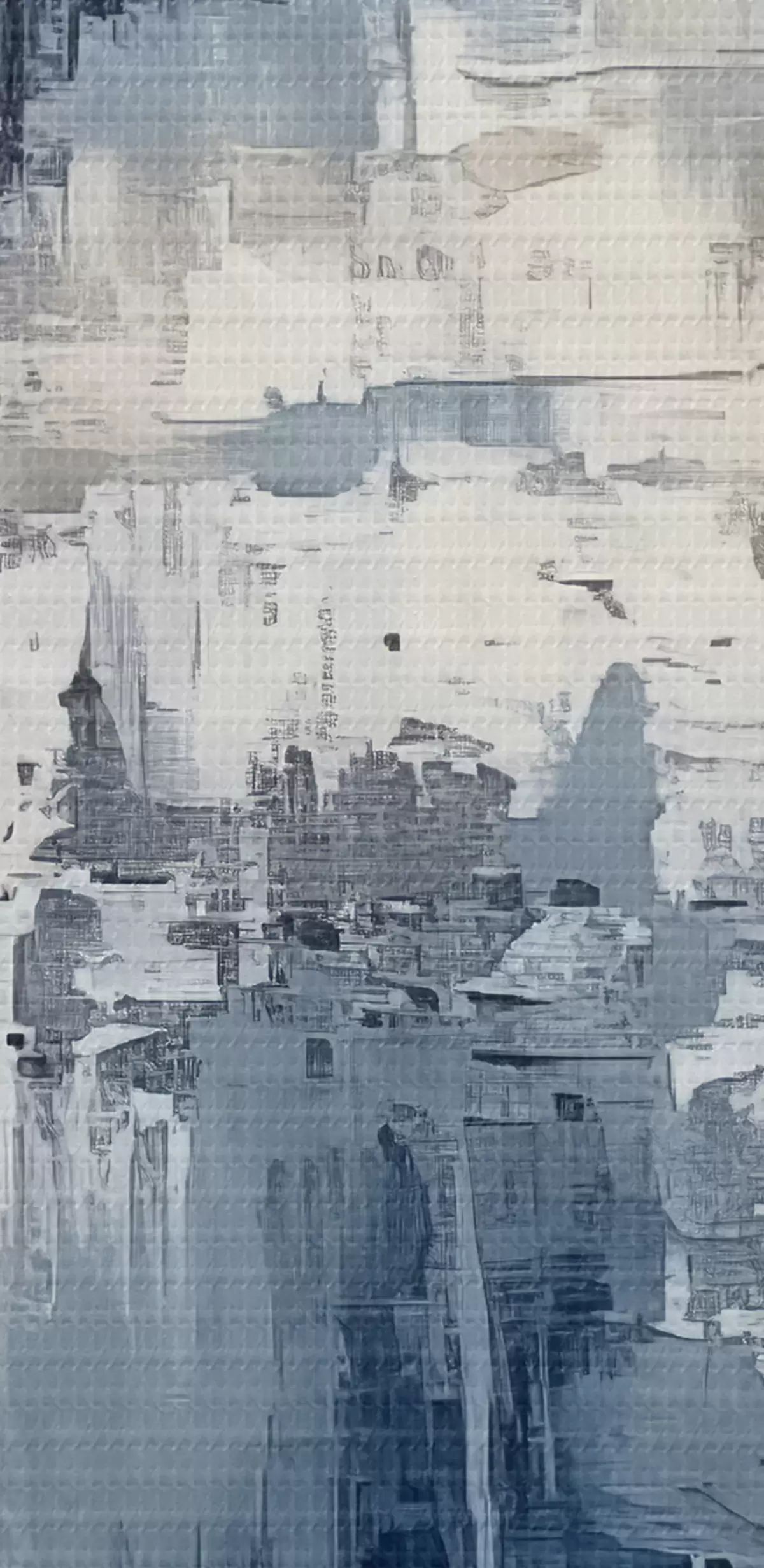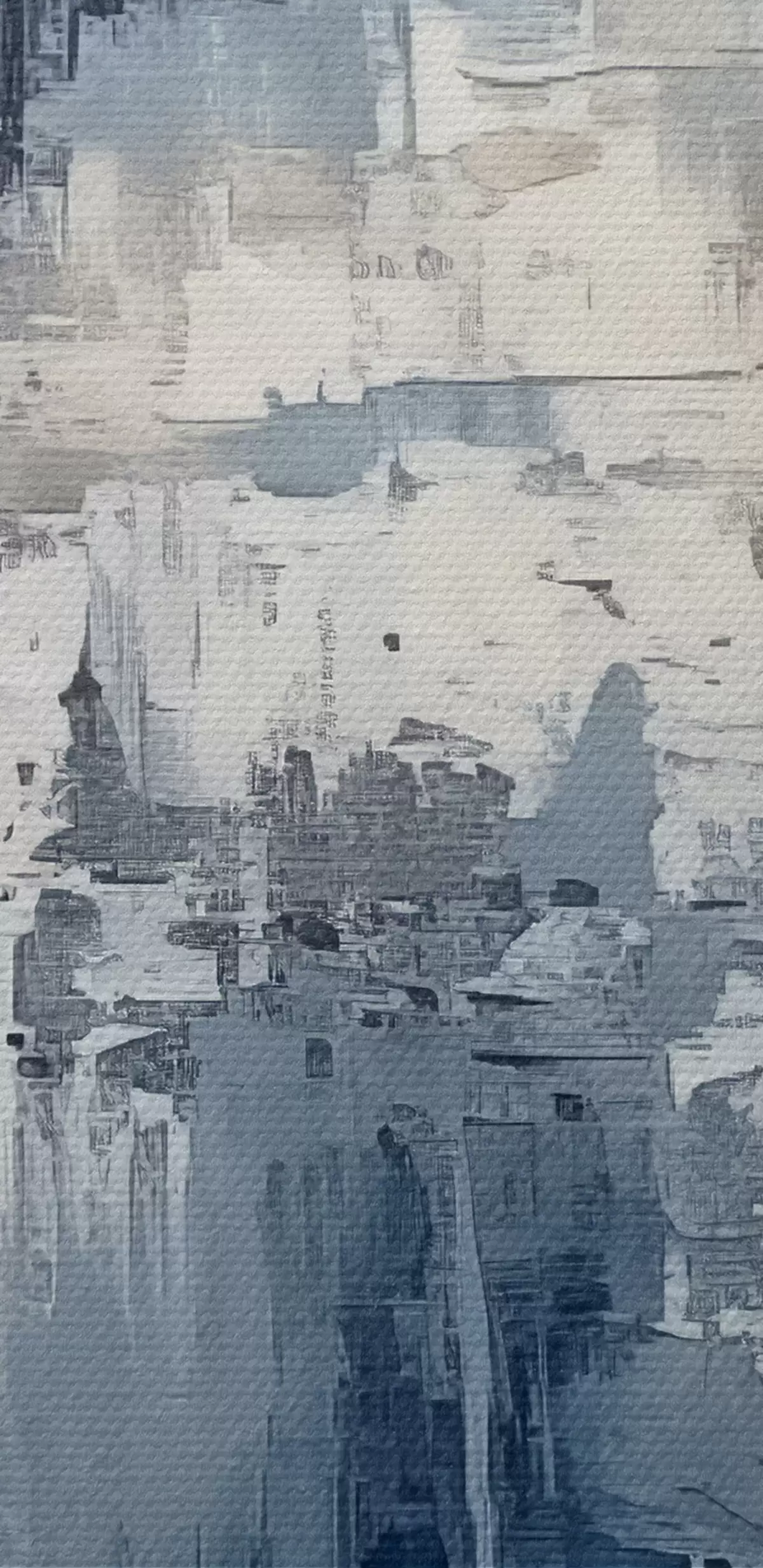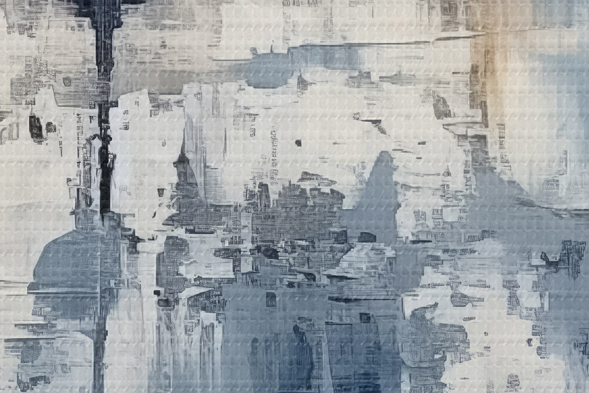 Attēls Abstrakta minimālisma eļļas glezna, berzēta, ģeometriska, traipu, zilā un baltā krāsā Nr r38906