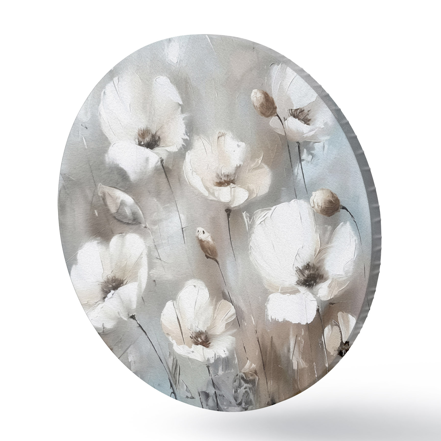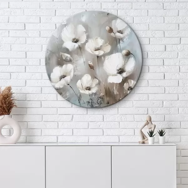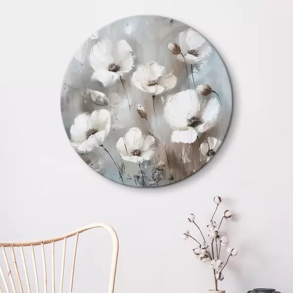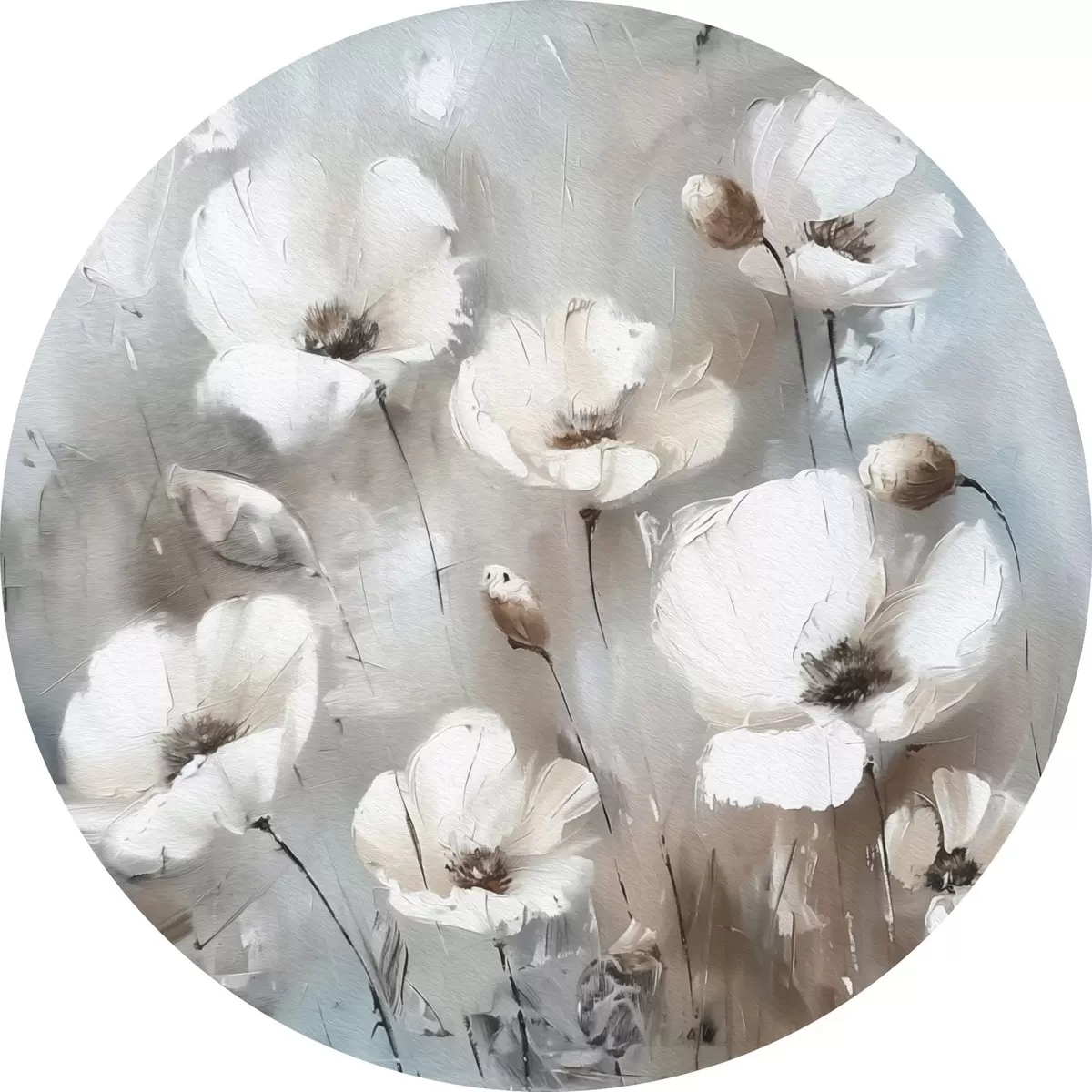 Apaļas gleznas Balto savvaļas ziedu augu apdrukāta tekstūra r38925