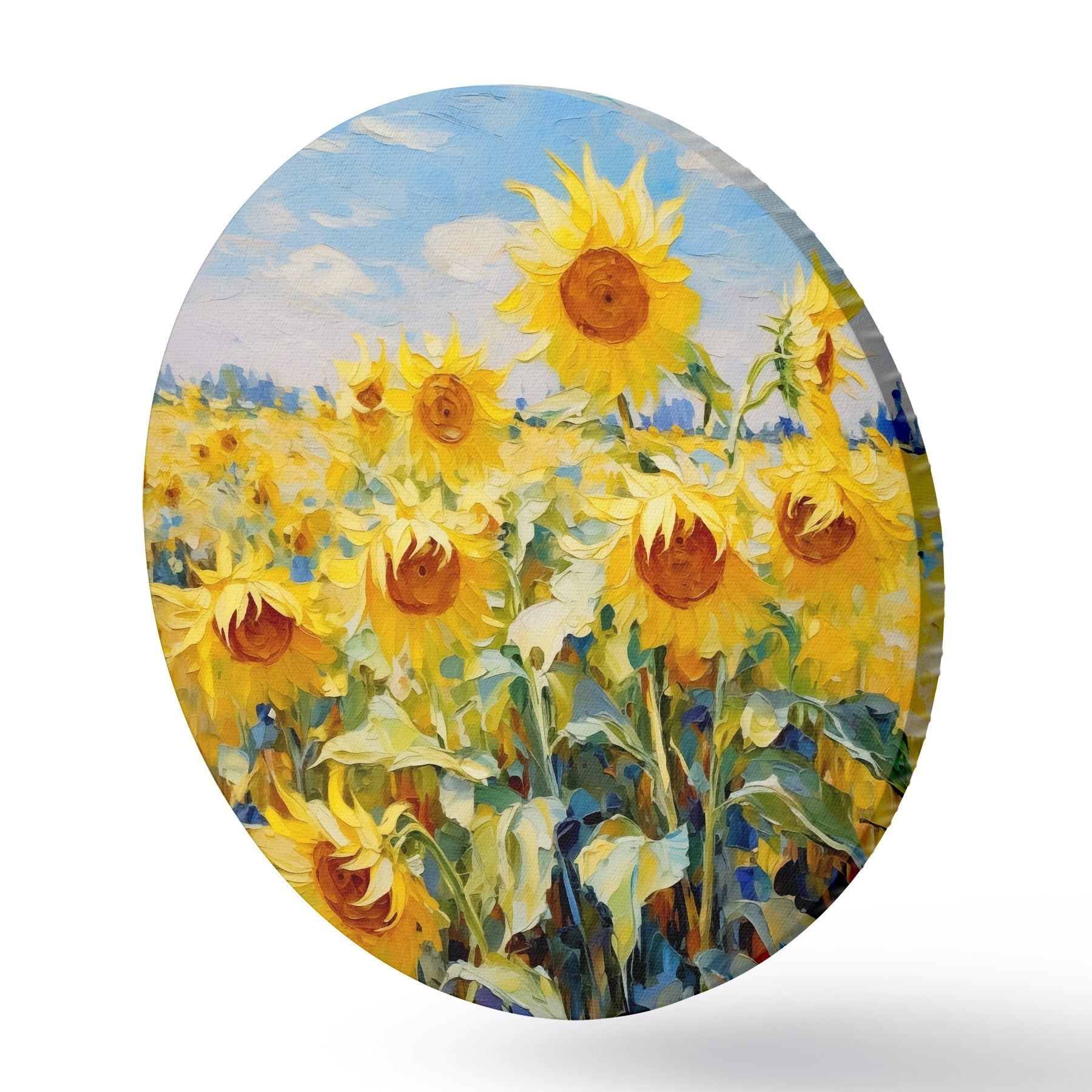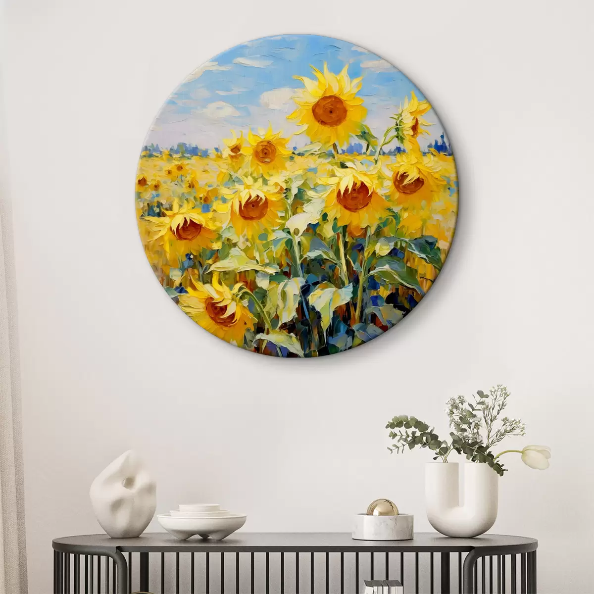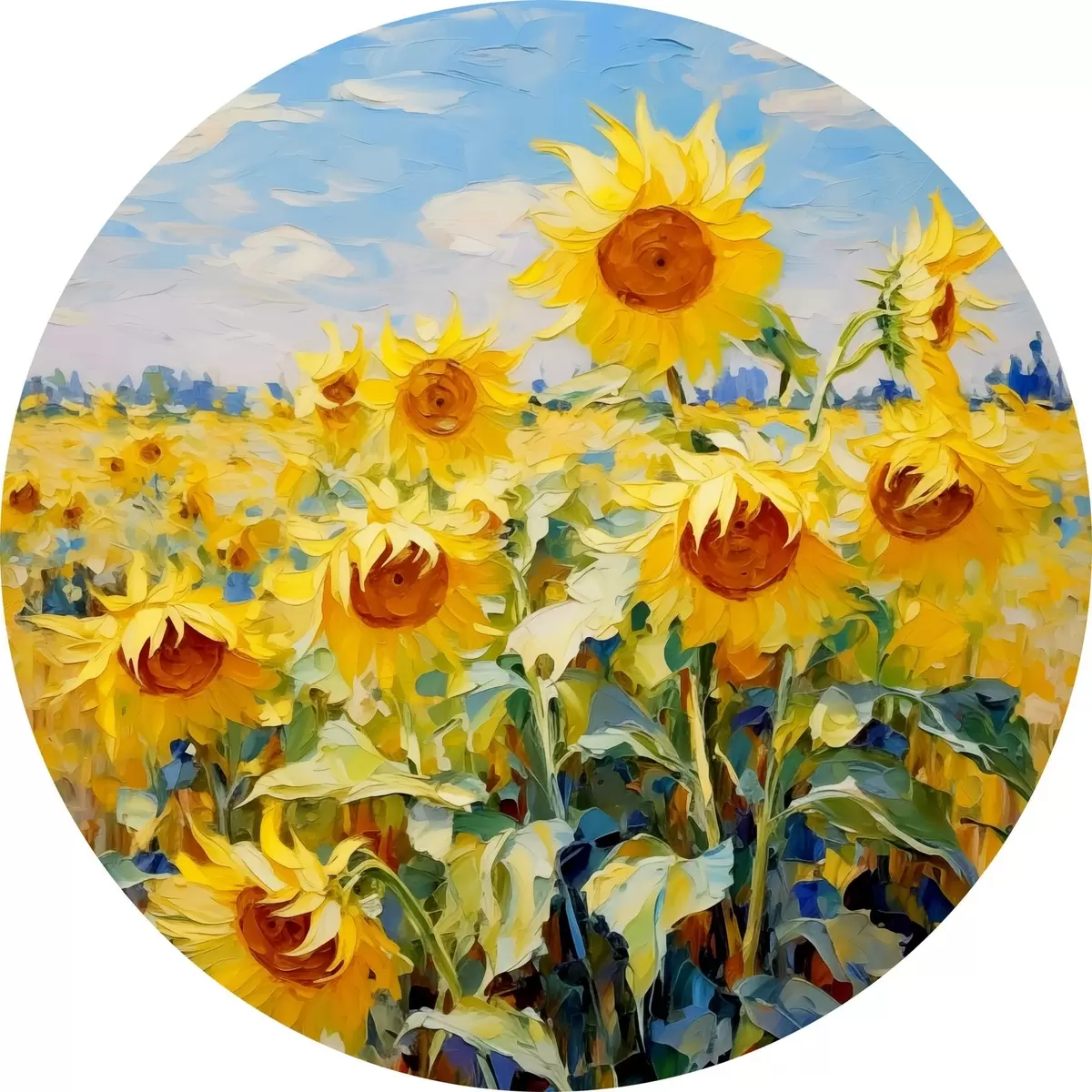 Apaļas gleznas Saulespuķu eļļas gleznas lauks, dzeltenā un zilā krāsā r38953