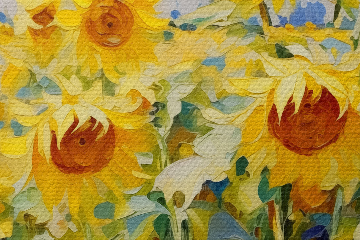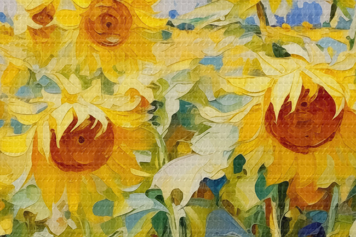 Attēls Saulespuķu eļļas gleznas lauks, dzeltenā un zilā krāsā Nr r38953
