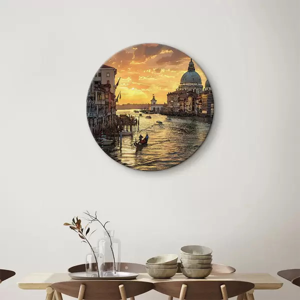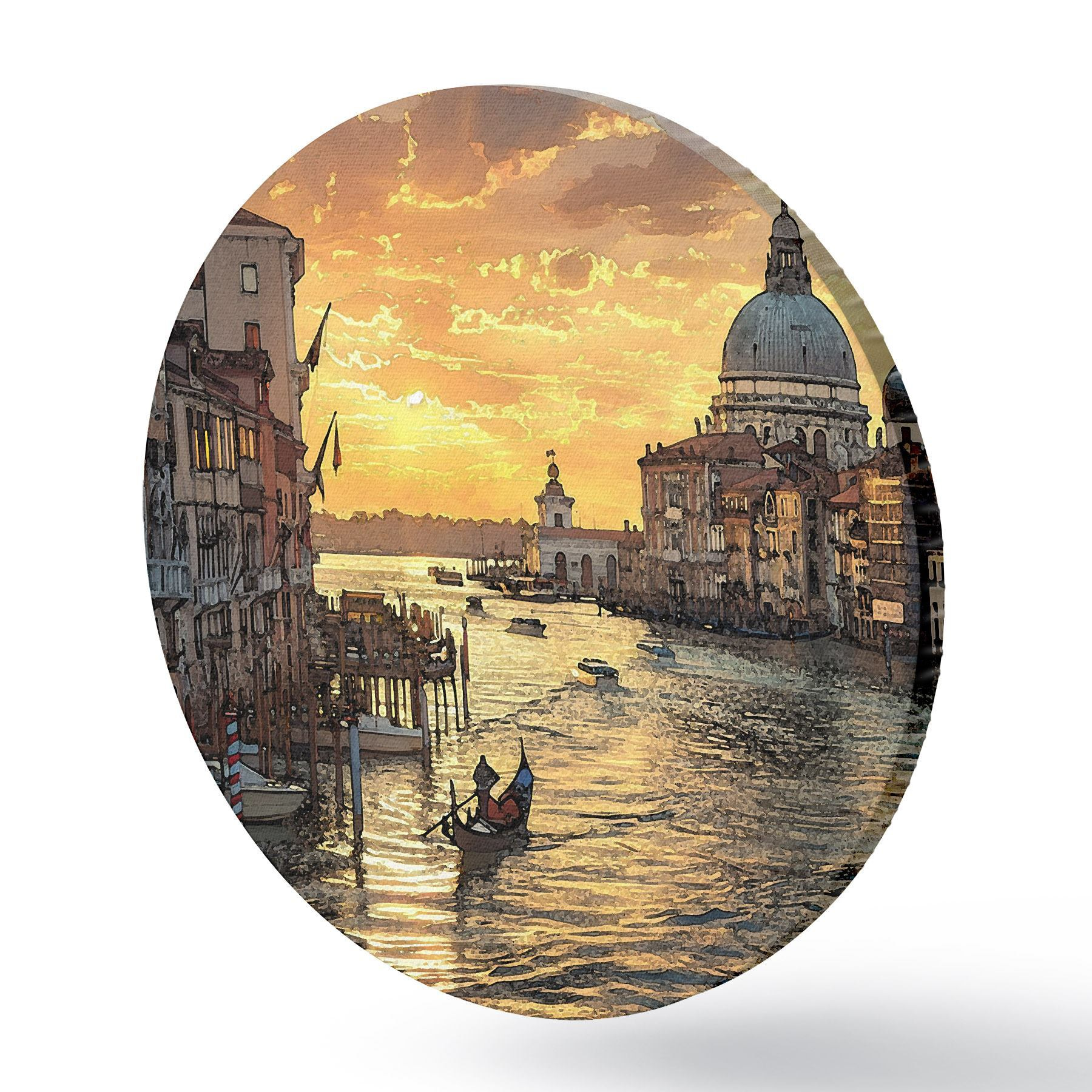 Apaļas gleznas Gleznaina skata glezna uz Lielo kanālu Venēcijā, Itālijā saulrieta laikā. r38963