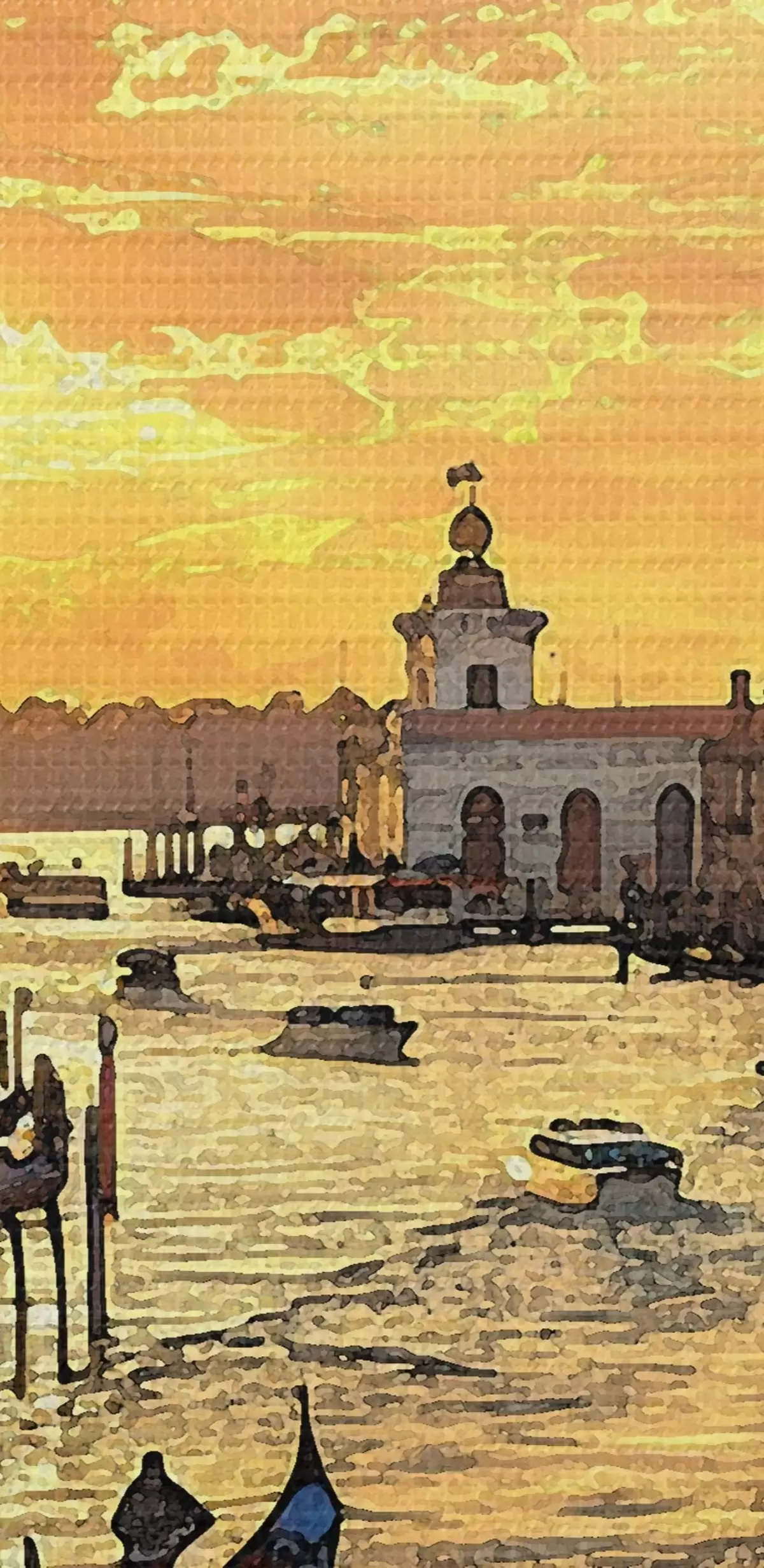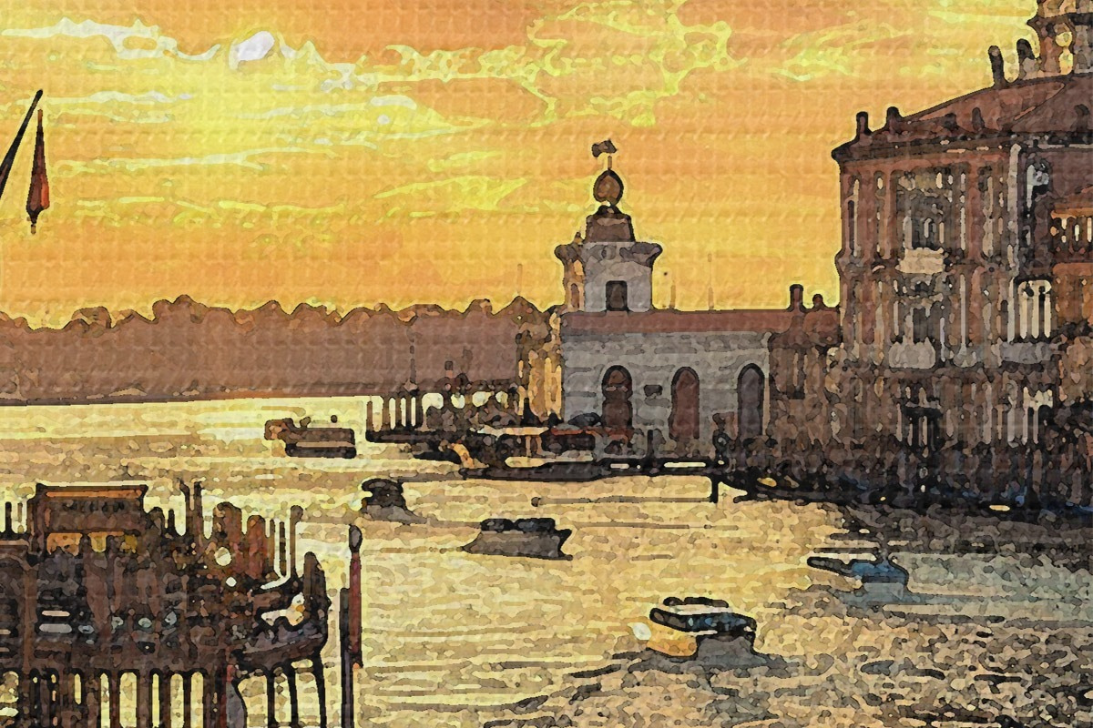 Attēls Gleznaina skata glezna uz Lielo kanālu Venēcijā, Itālijā saulrieta laikā. Nr r38963