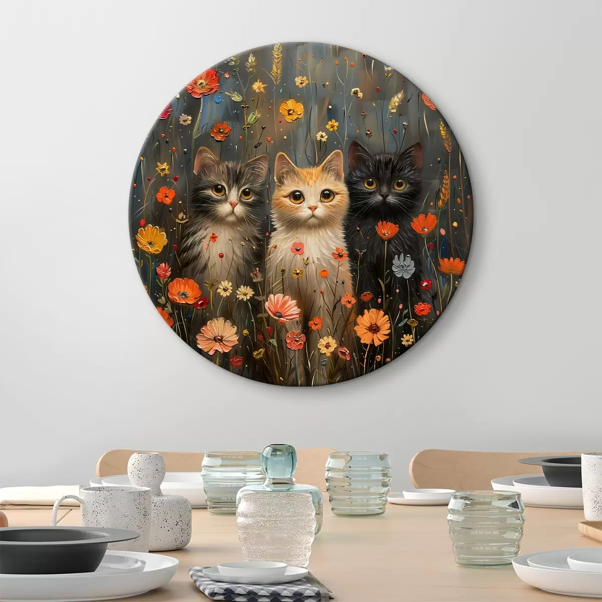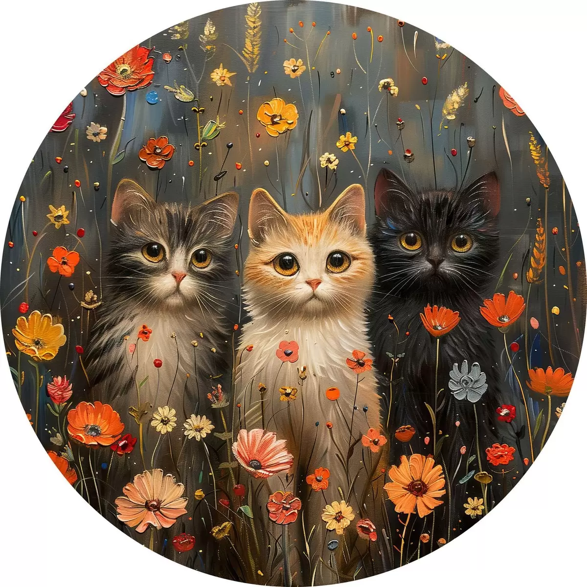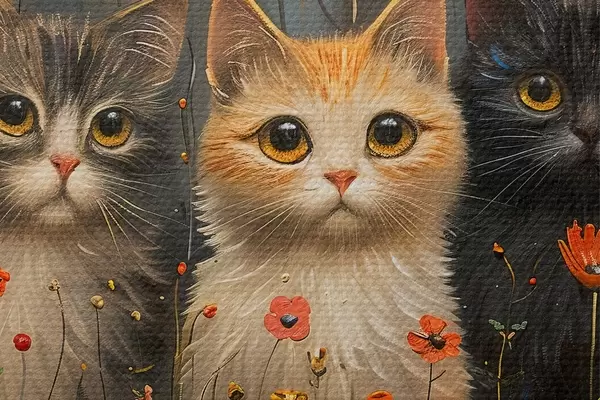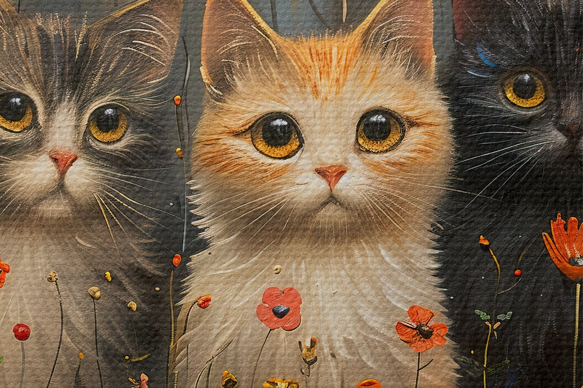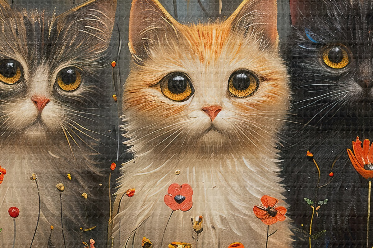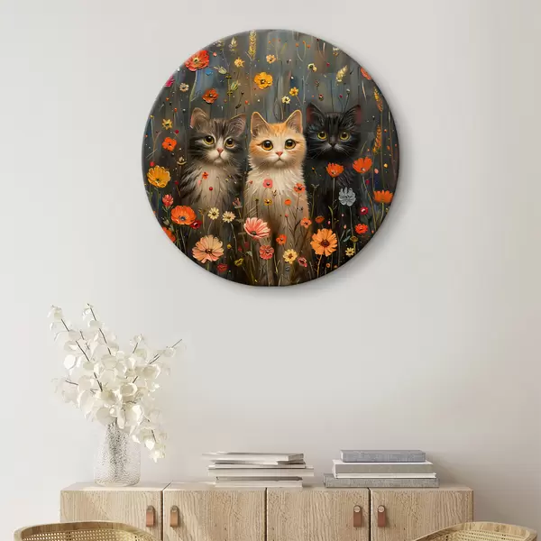 Attēls Trīs kaķi savvaļas ziedos Nr r39012