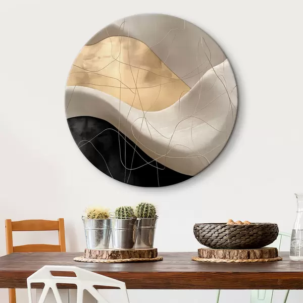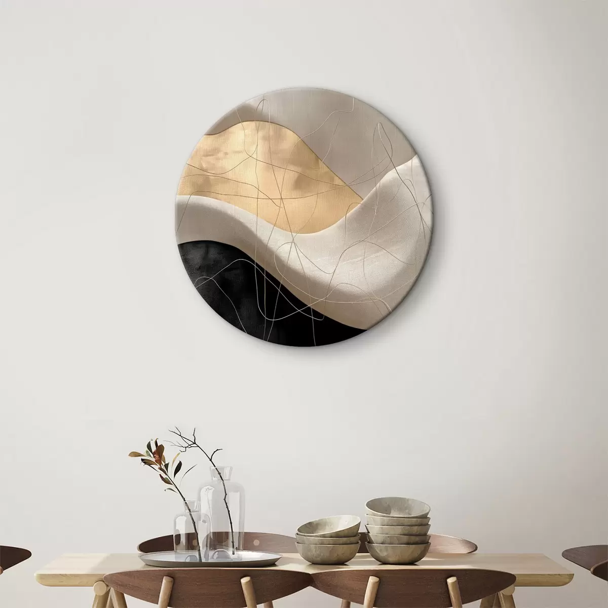 Apaļas gleznas Abstrakcija ar viļņiem un līnijām r39053