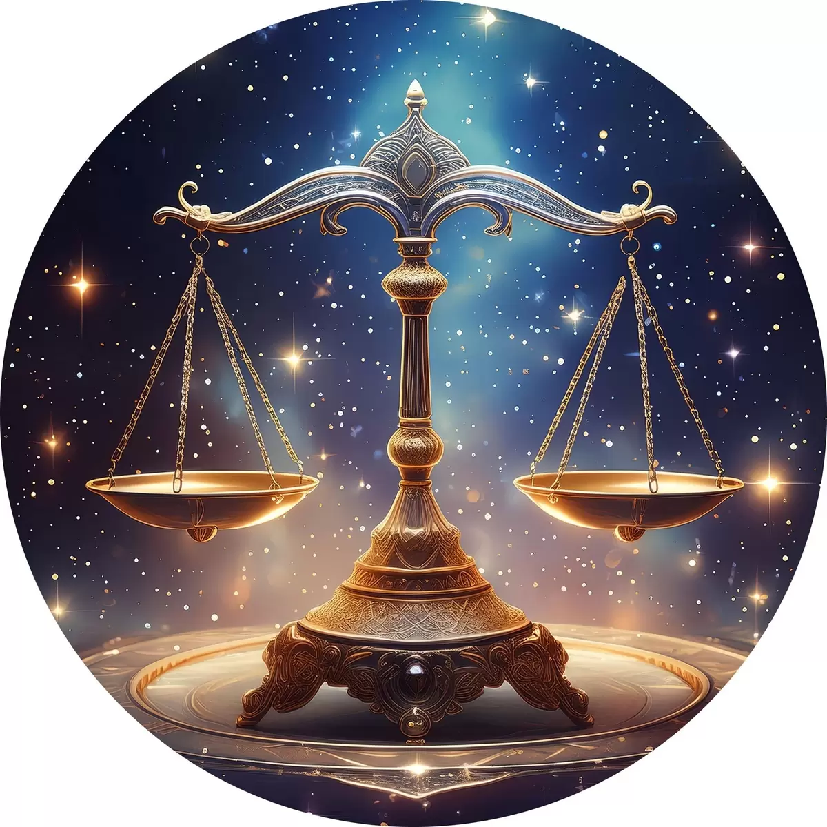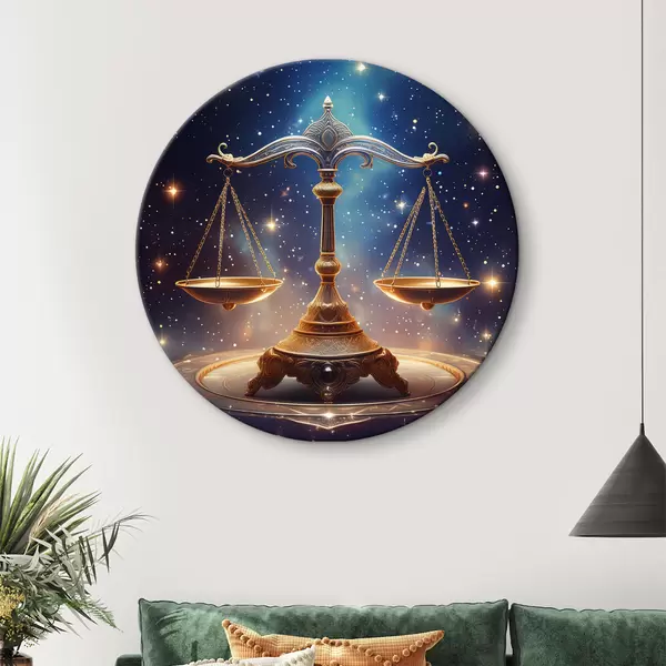 Apaļas gleznas Svari pret zvaigžņotām debesīm r39056