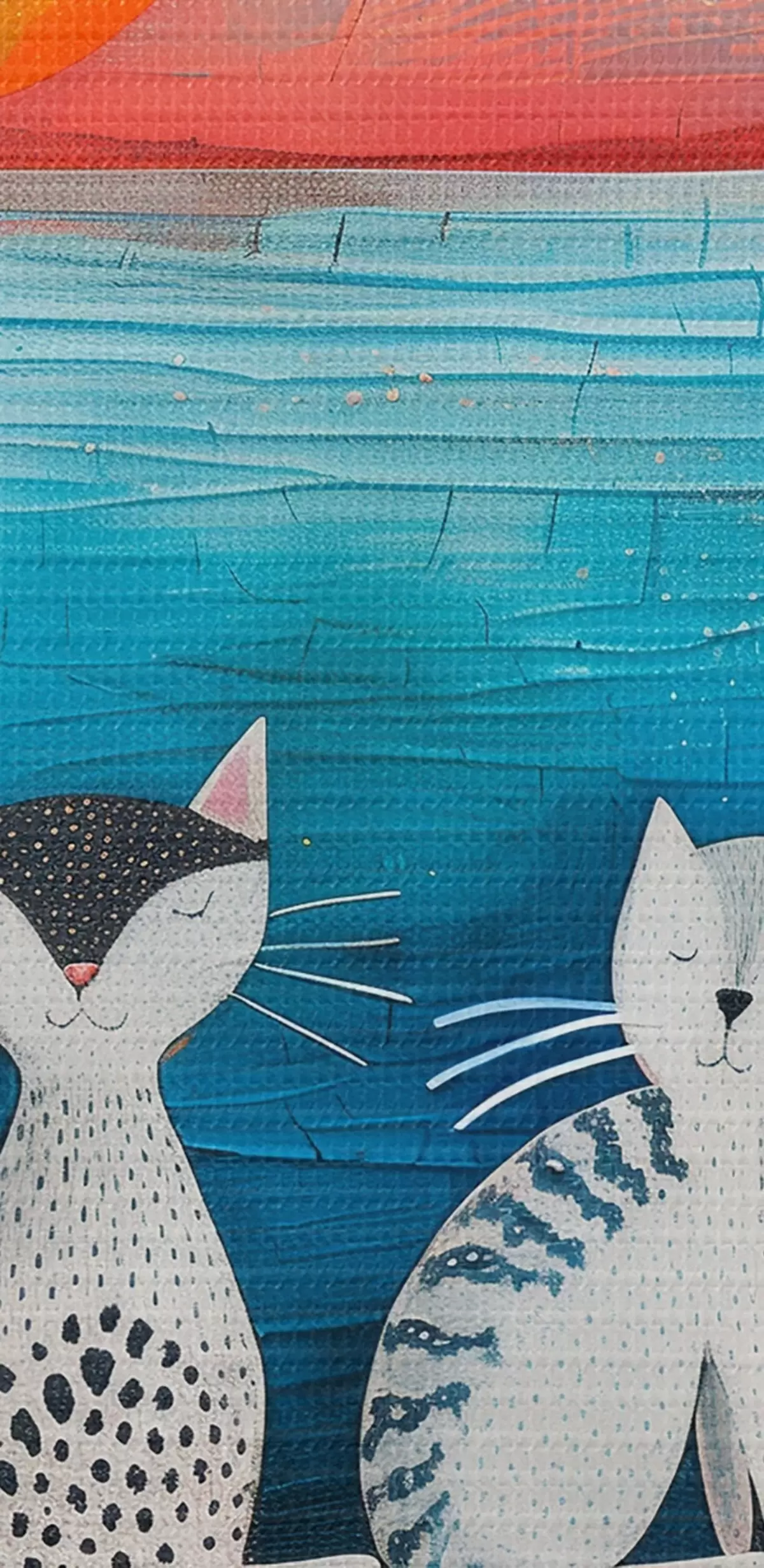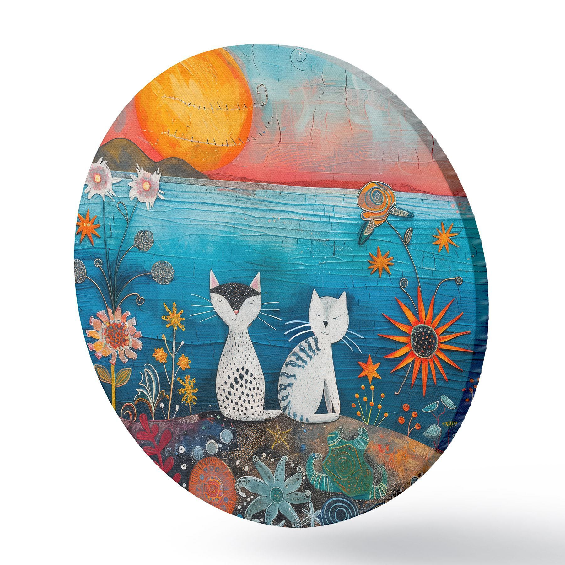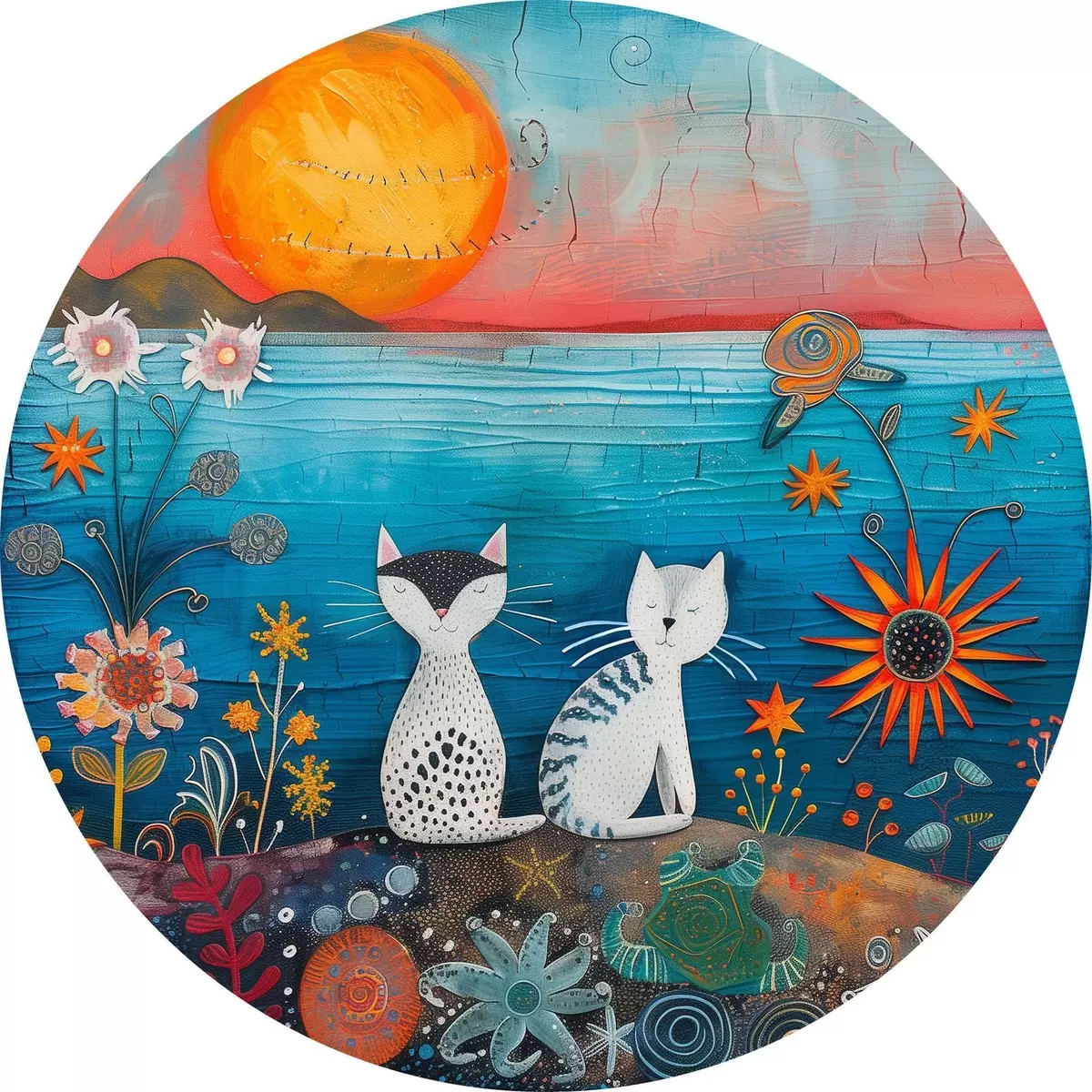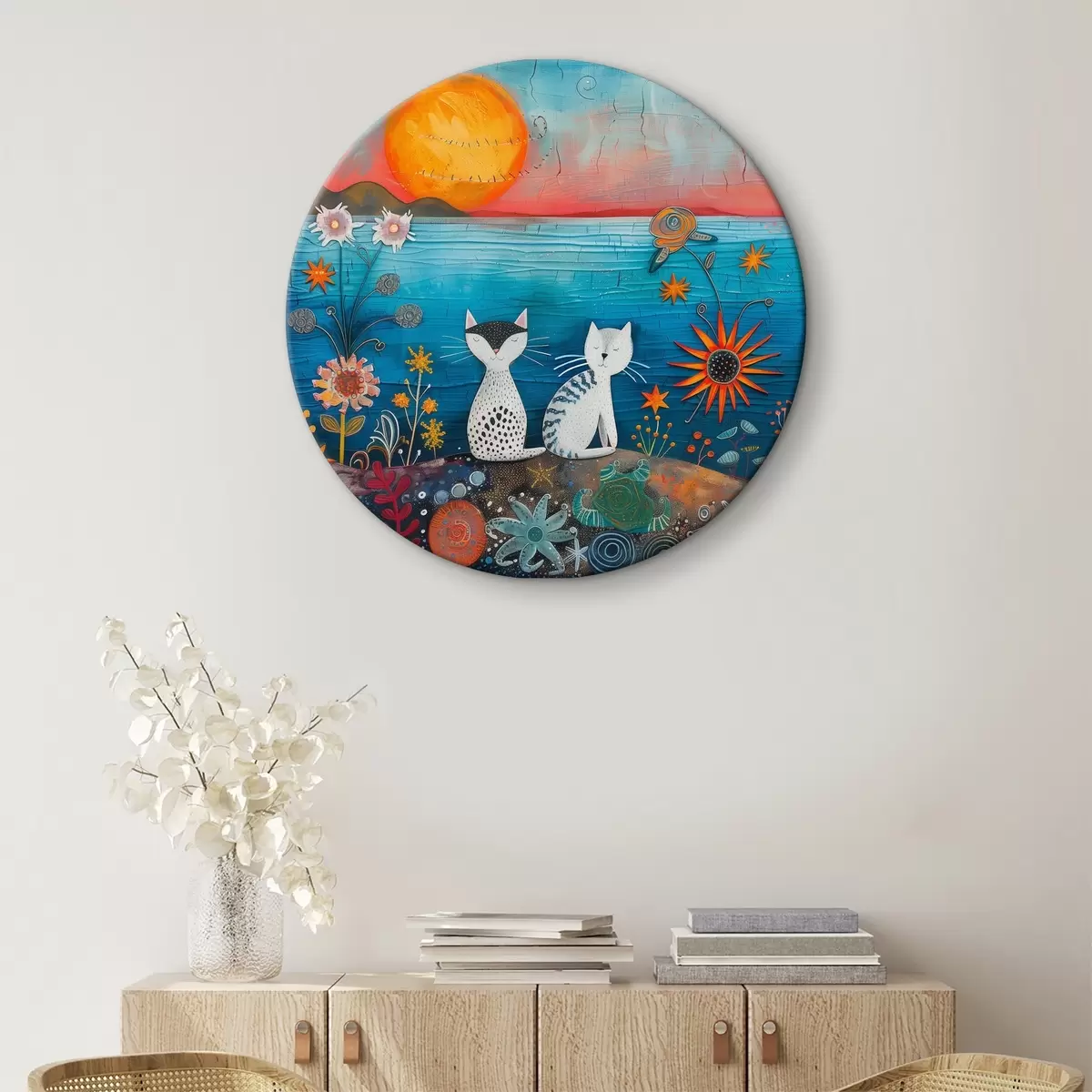 Apaļas gleznas Divi kaķi skatās uz saullēktu r39085