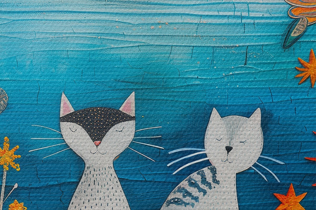 Attēls Divi kaķi skatās uz saullēktu Nr r39085