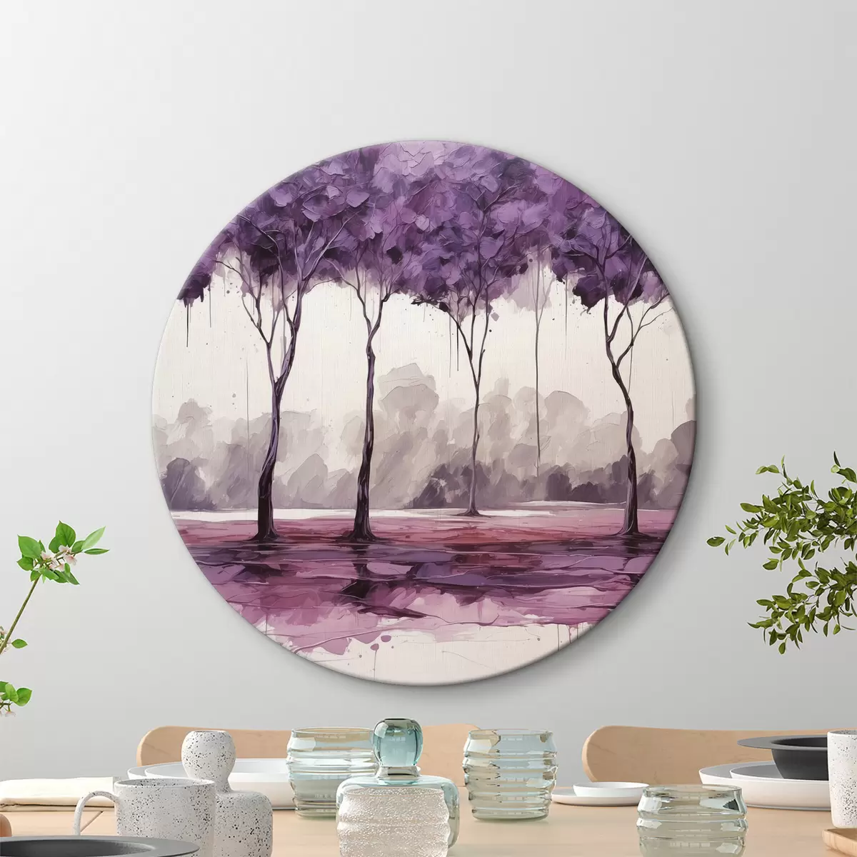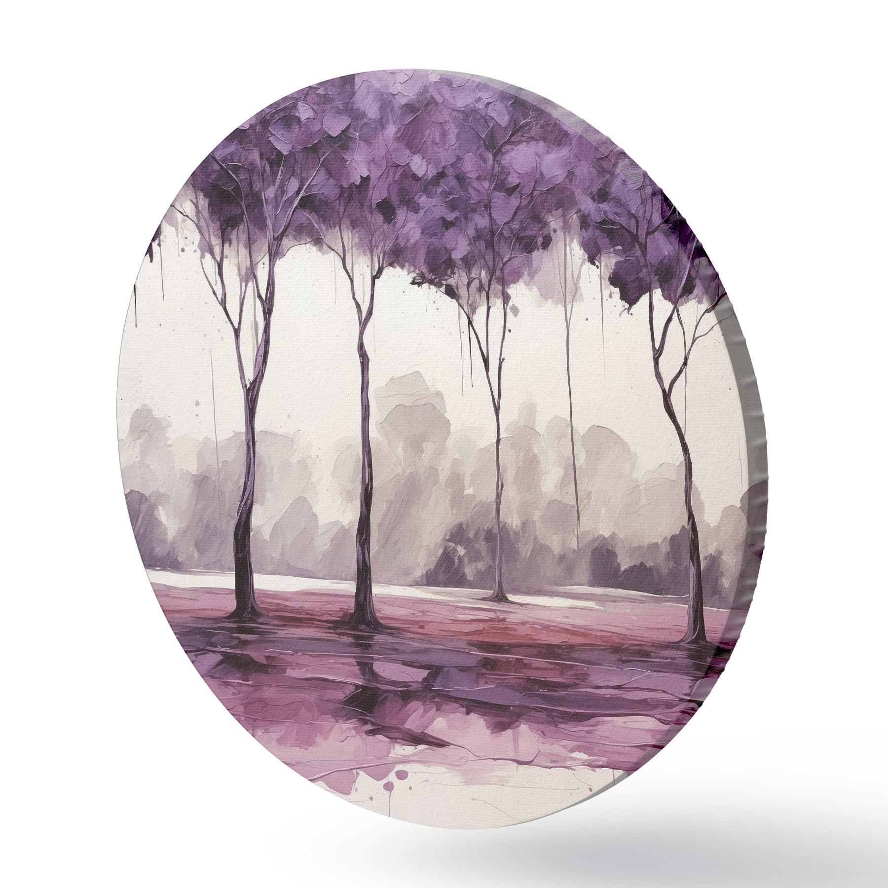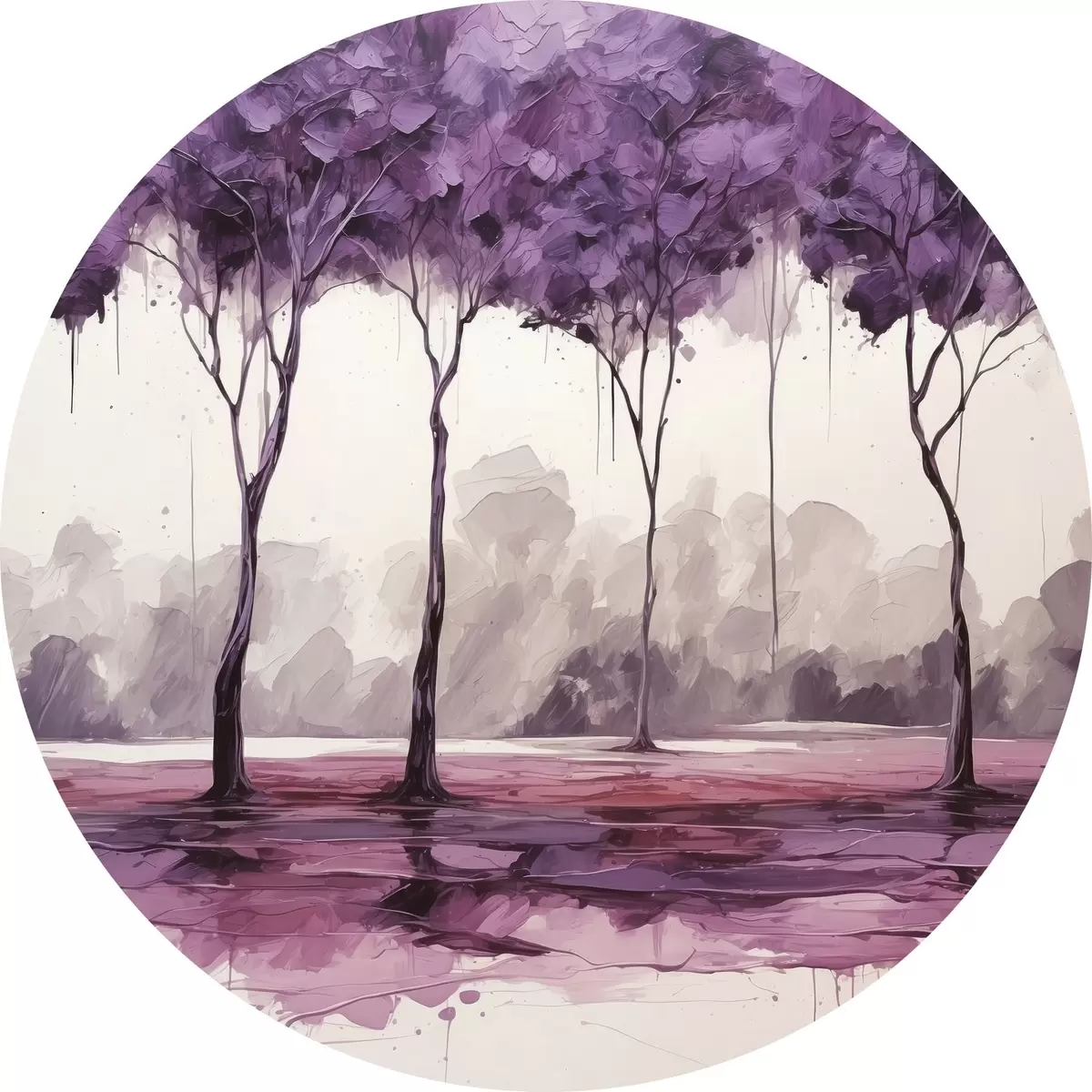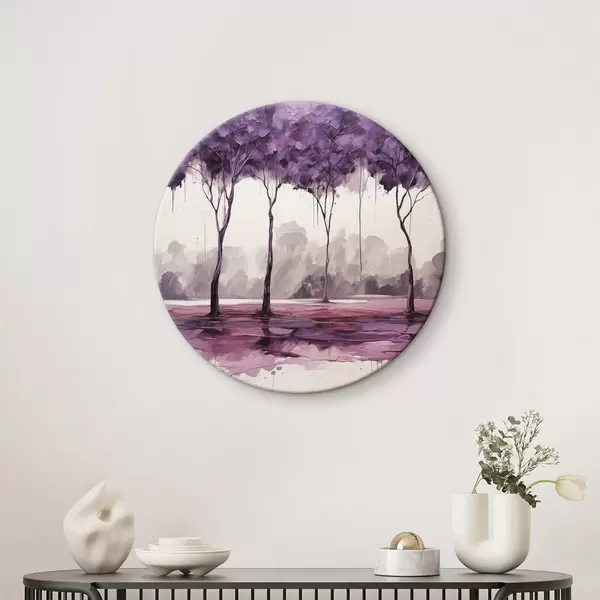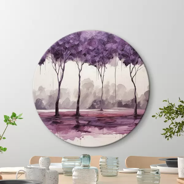 Apaļas gleznas Koki ar purpursarkanām lapām uz abstrakta fona r39155