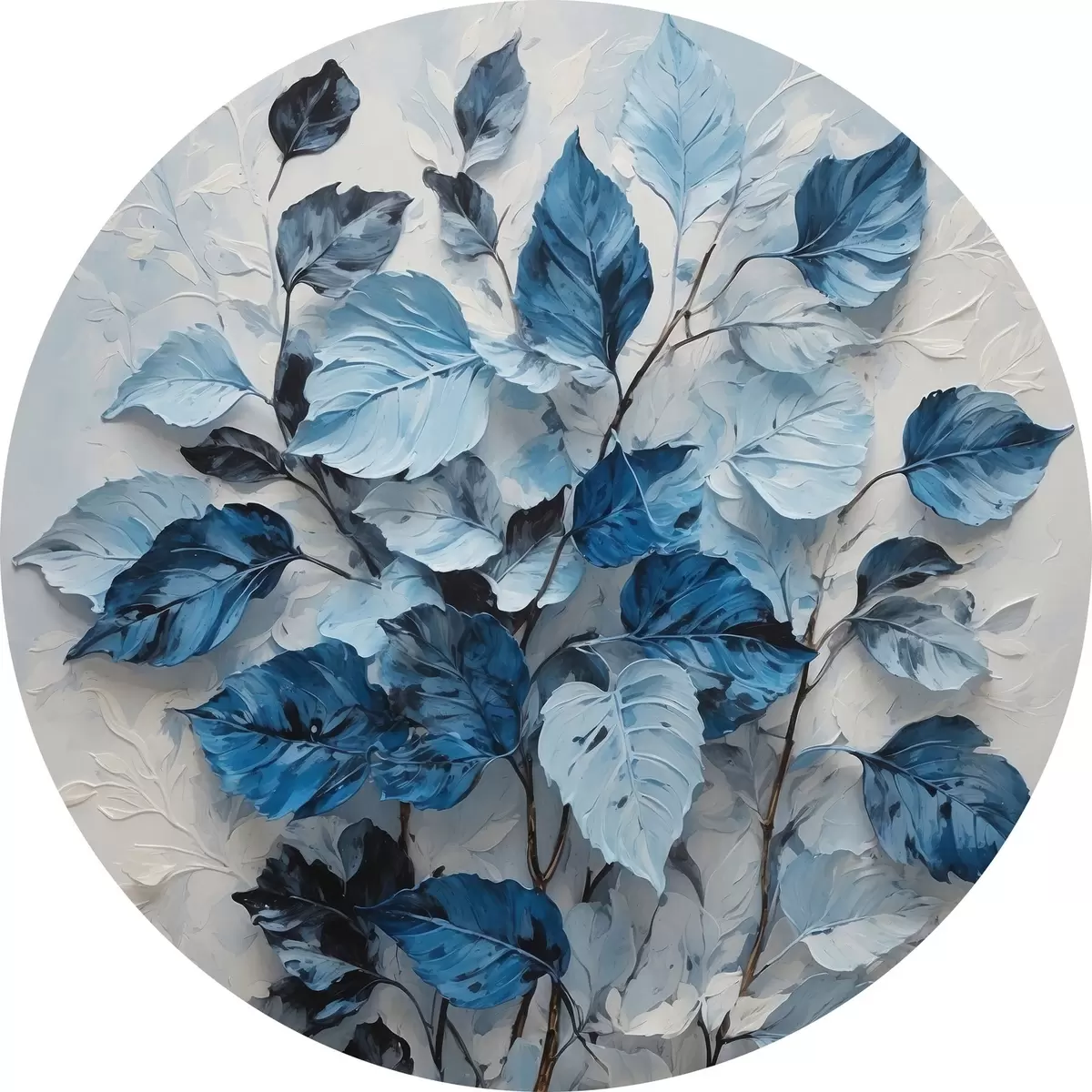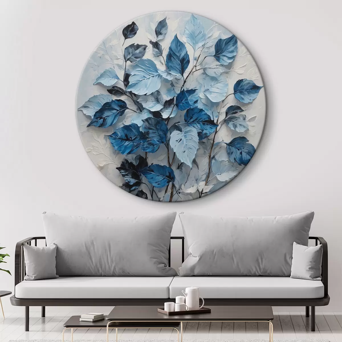 Apaļas gleznas Augs ar baltām un zilām lapām r39156