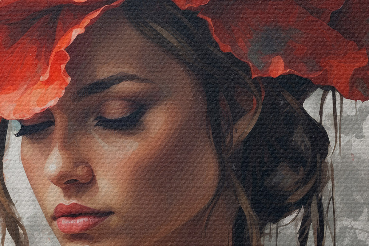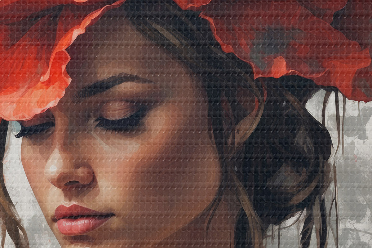 Smalkais diegu pinums uz šī audekla atgādina profesionālu mākslinieku audeklu virsmu.