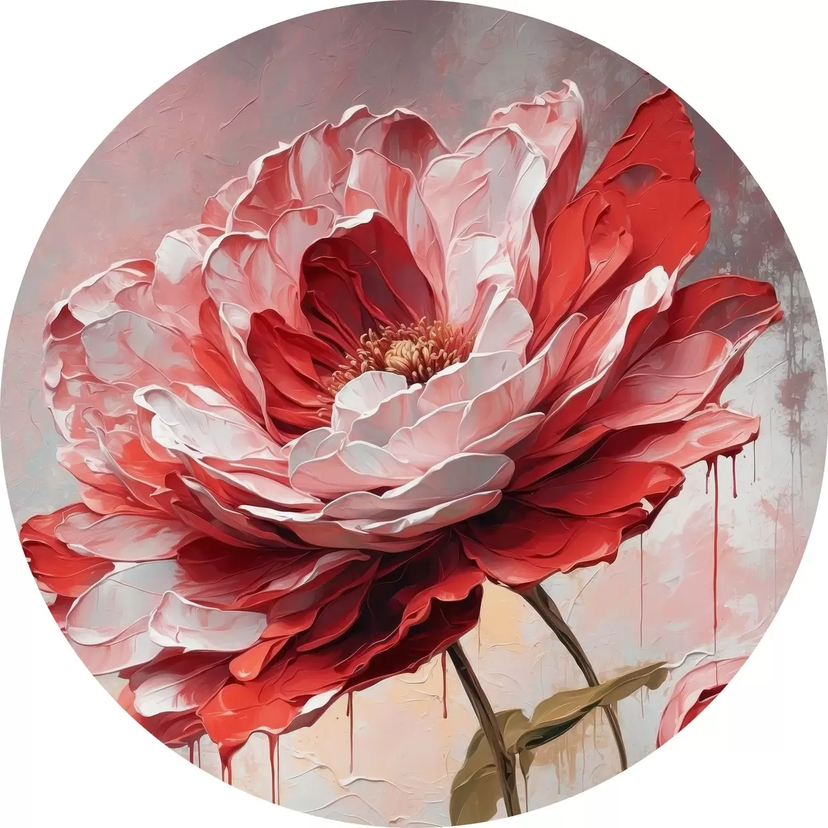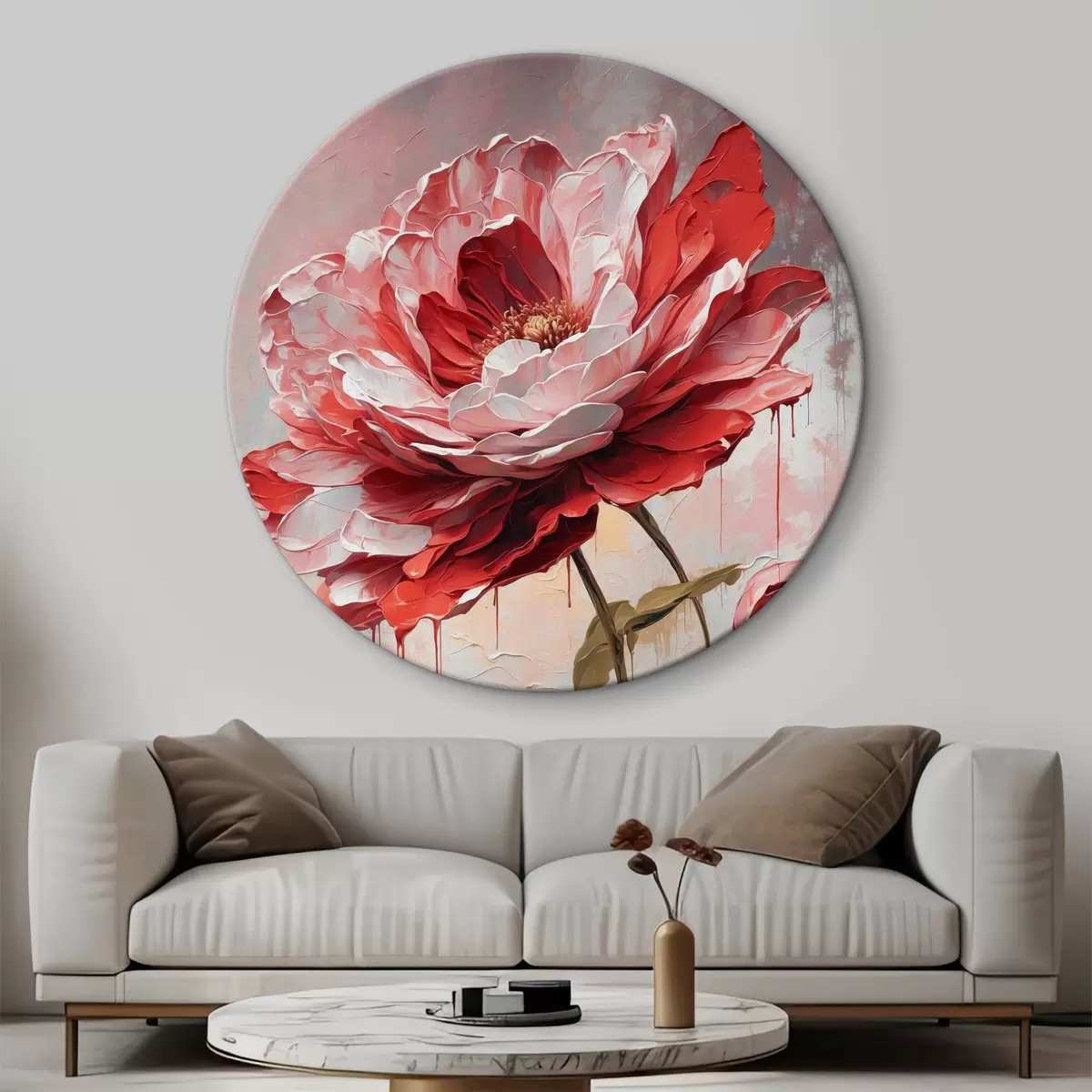 Apaļas gleznas Sarkans zieds uz balti pelēka fona r39173