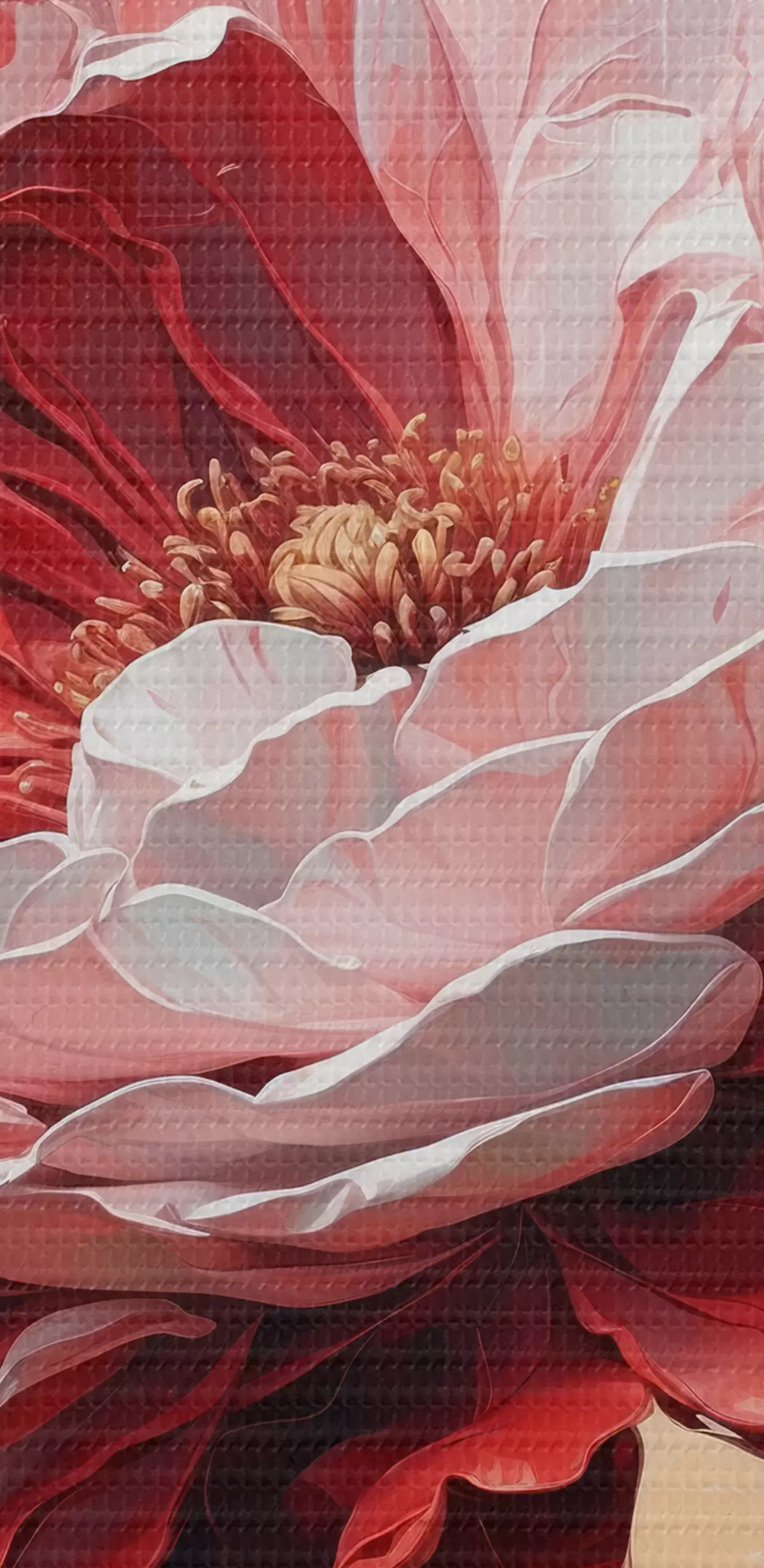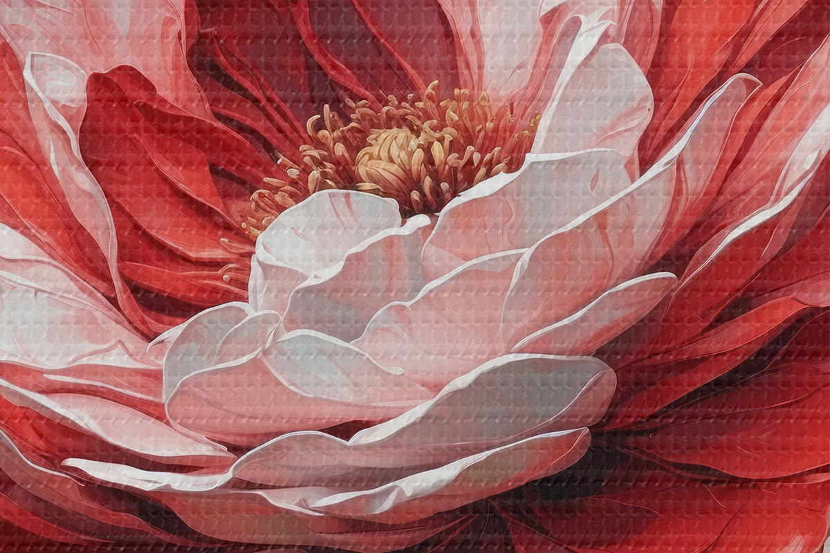 Smalkais diegu pinums uz šī audekla atgādina profesionālu mākslinieku audeklu virsmu.