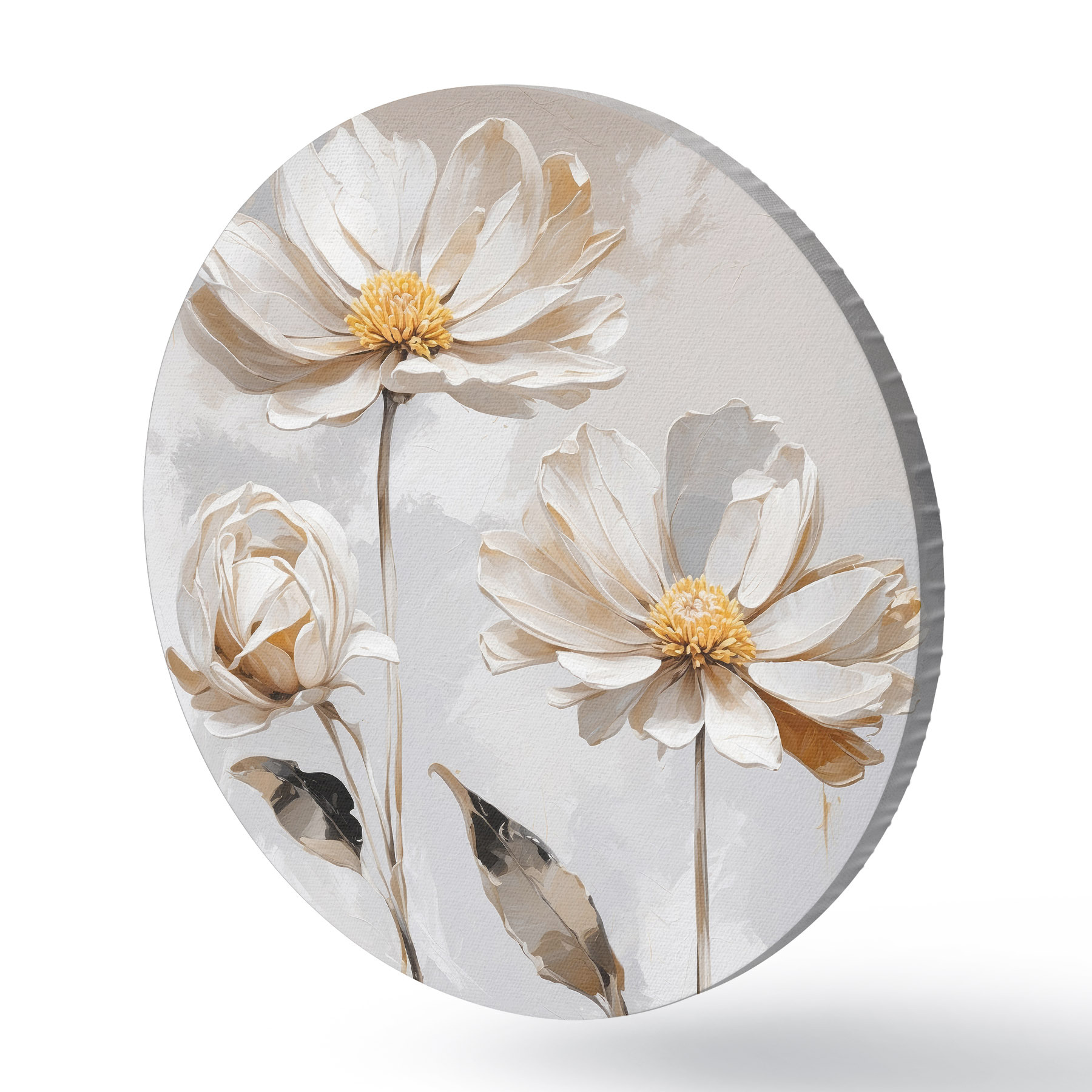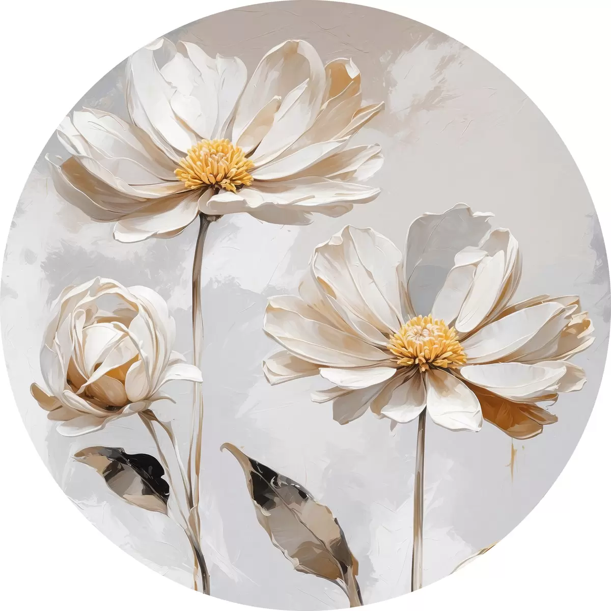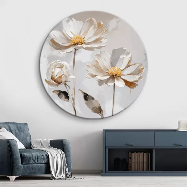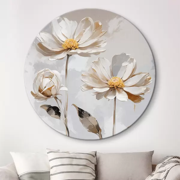 Apaļas gleznas Balti ziedi uz balti pelēka fona r39174