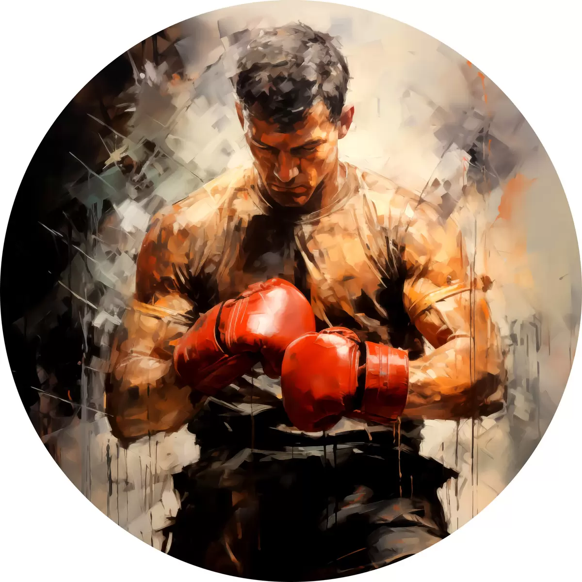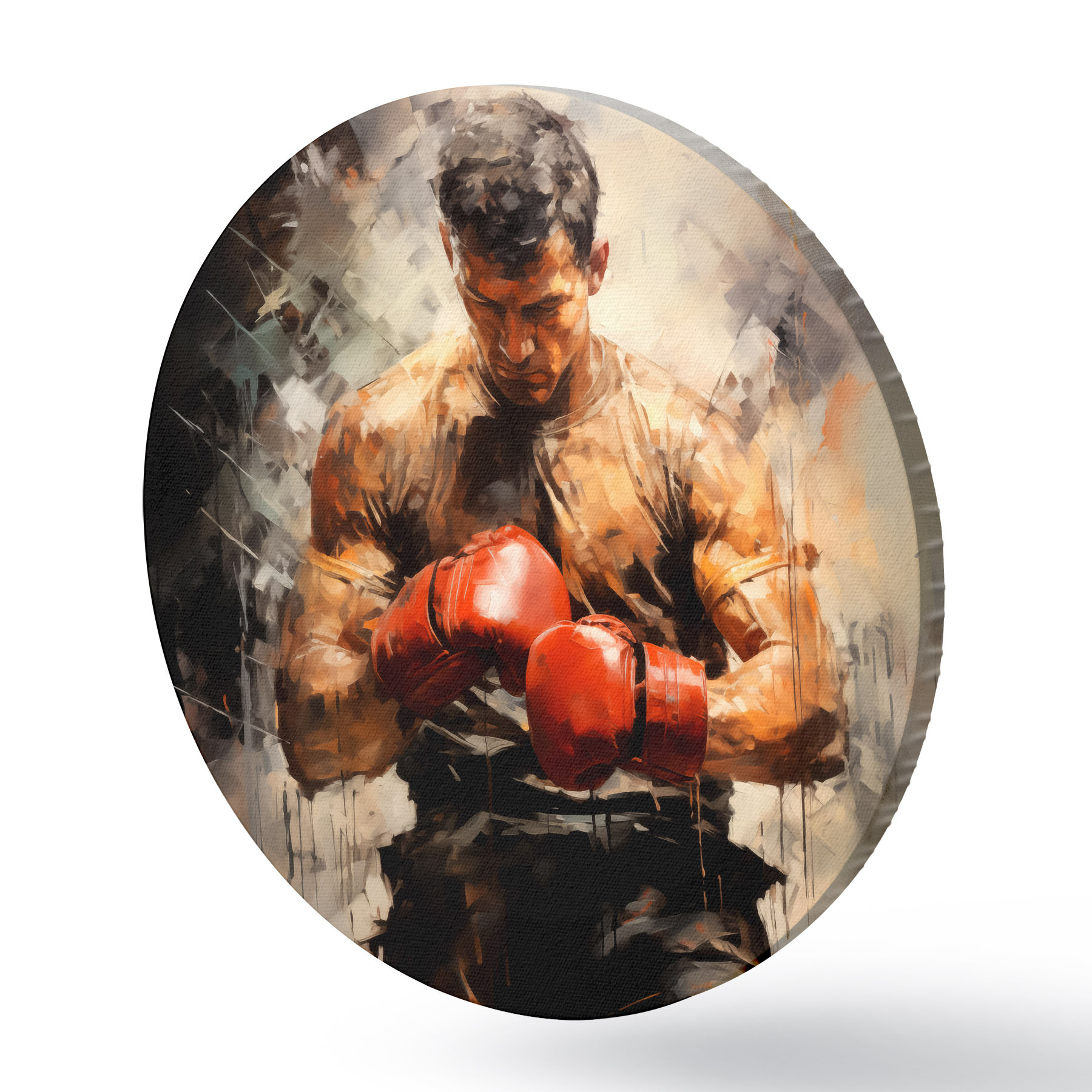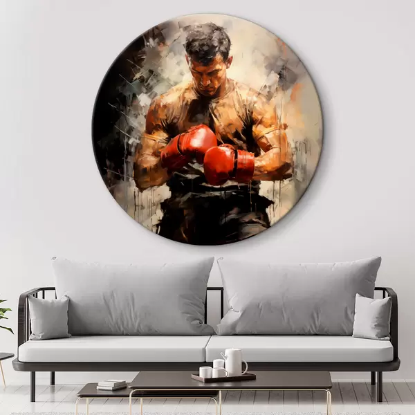 Apaļas gleznas Bokseris sarkanos cimdos, eļļas glezna r39180