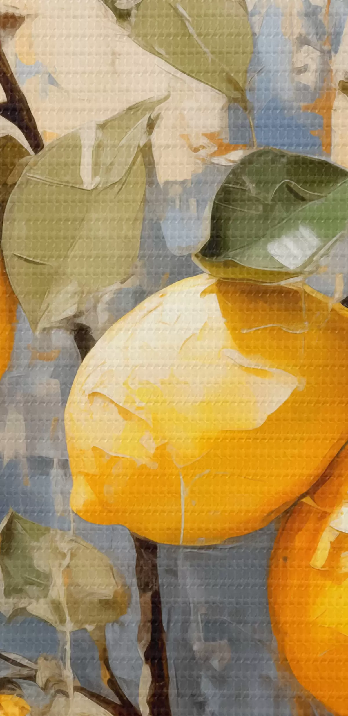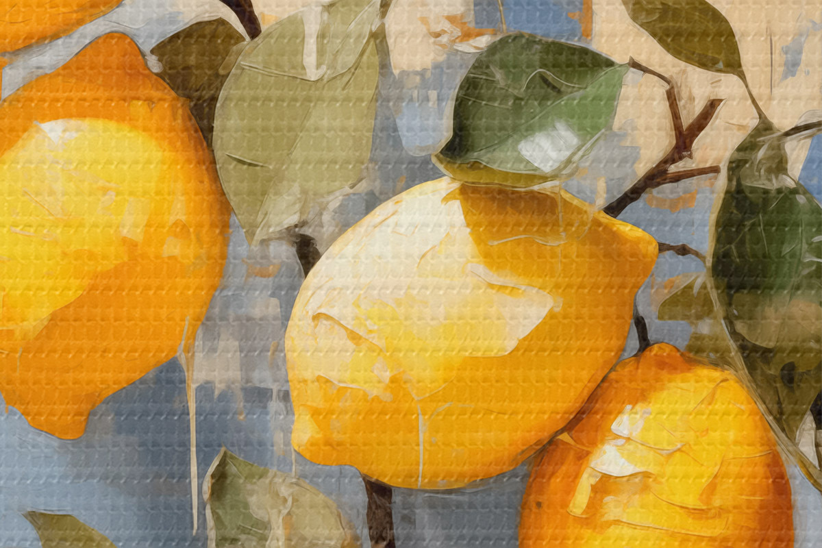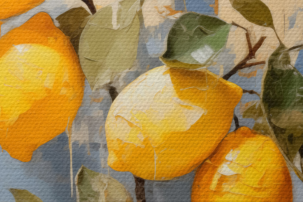 Attēls Zars ar nobriedušiem citroniem eļļas glezna abstraktā māksla, dzeltenā, zilā un zaļā krāsā Nr r39186