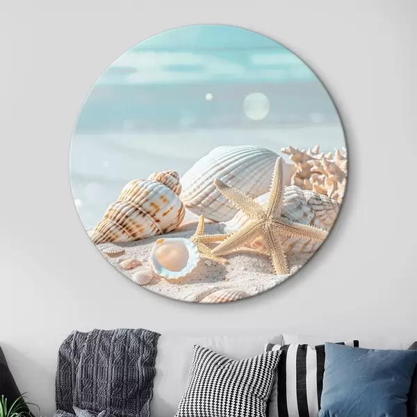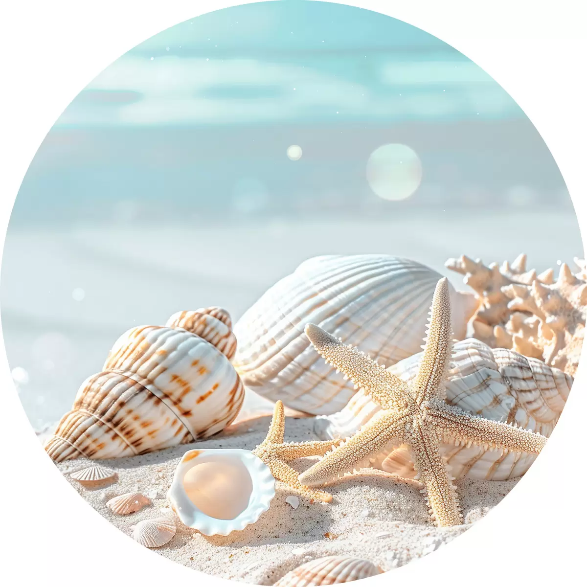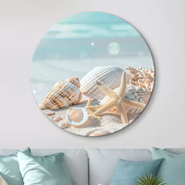 Apaļas gleznas Jūras gliemežvāki uz smiltīm r39221