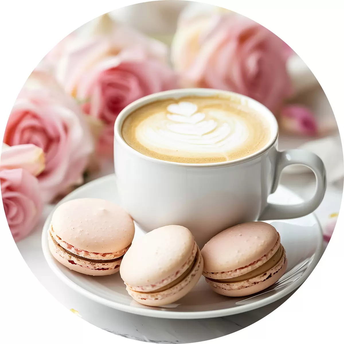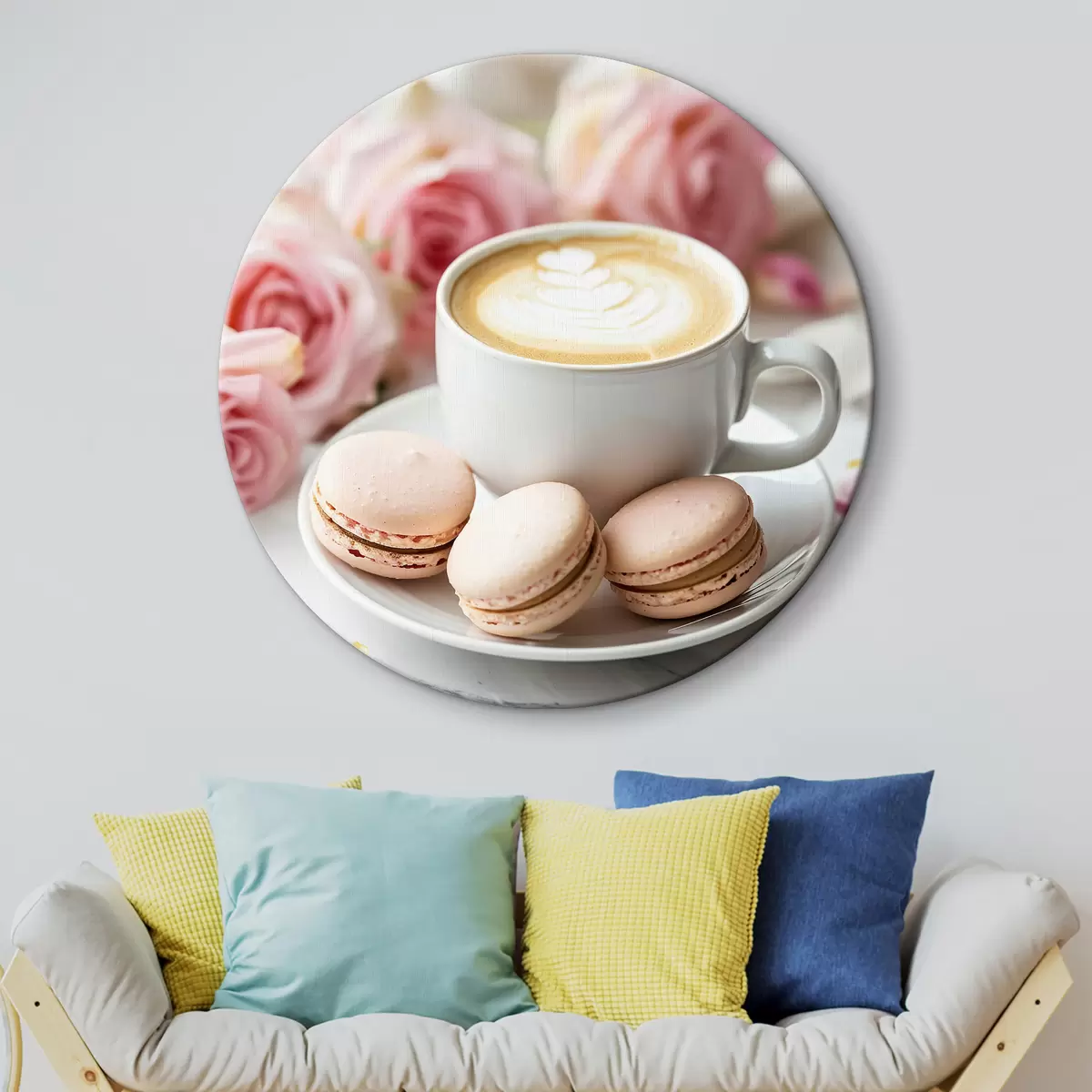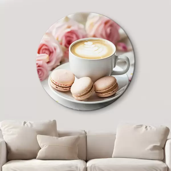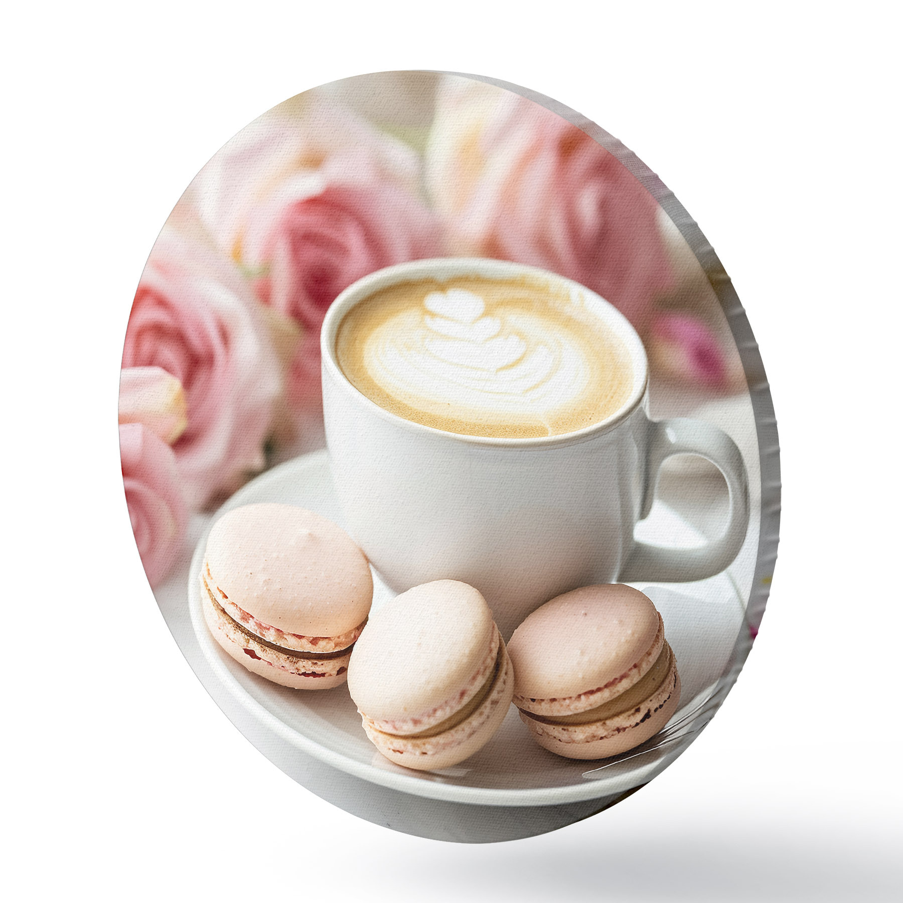 Apaļas gleznas Kafijas tase uz smalka ziedu fona r39232