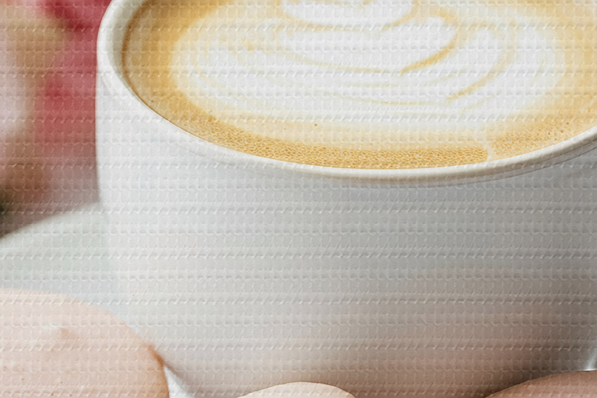 Attēls Kafijas tase uz smalka ziedu fona Nr r39232