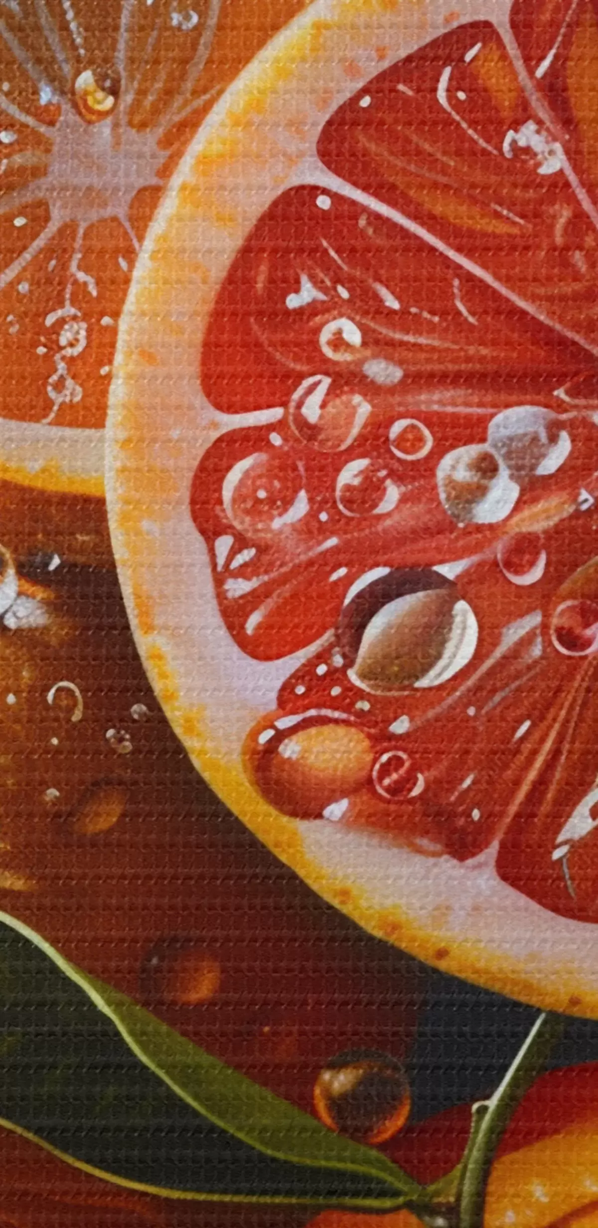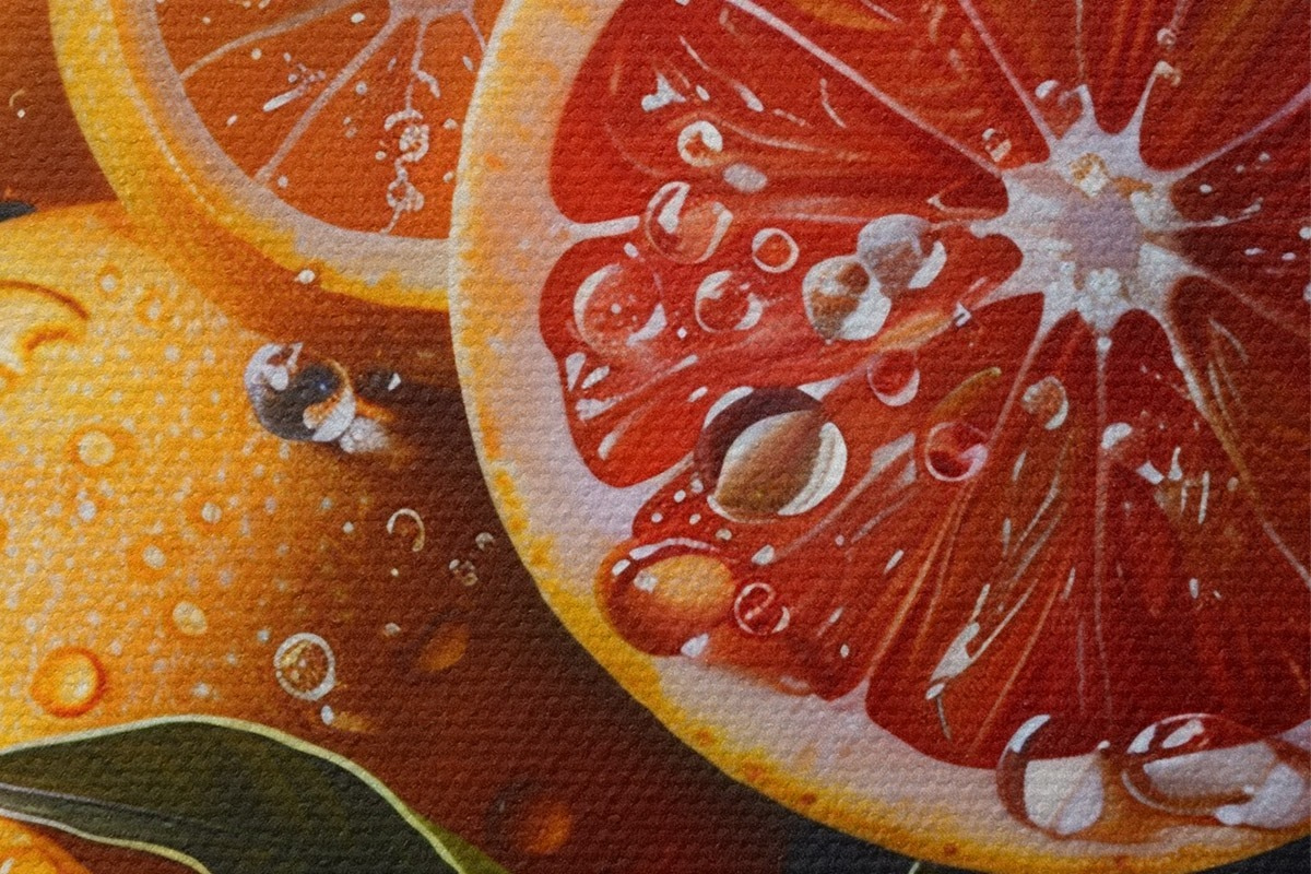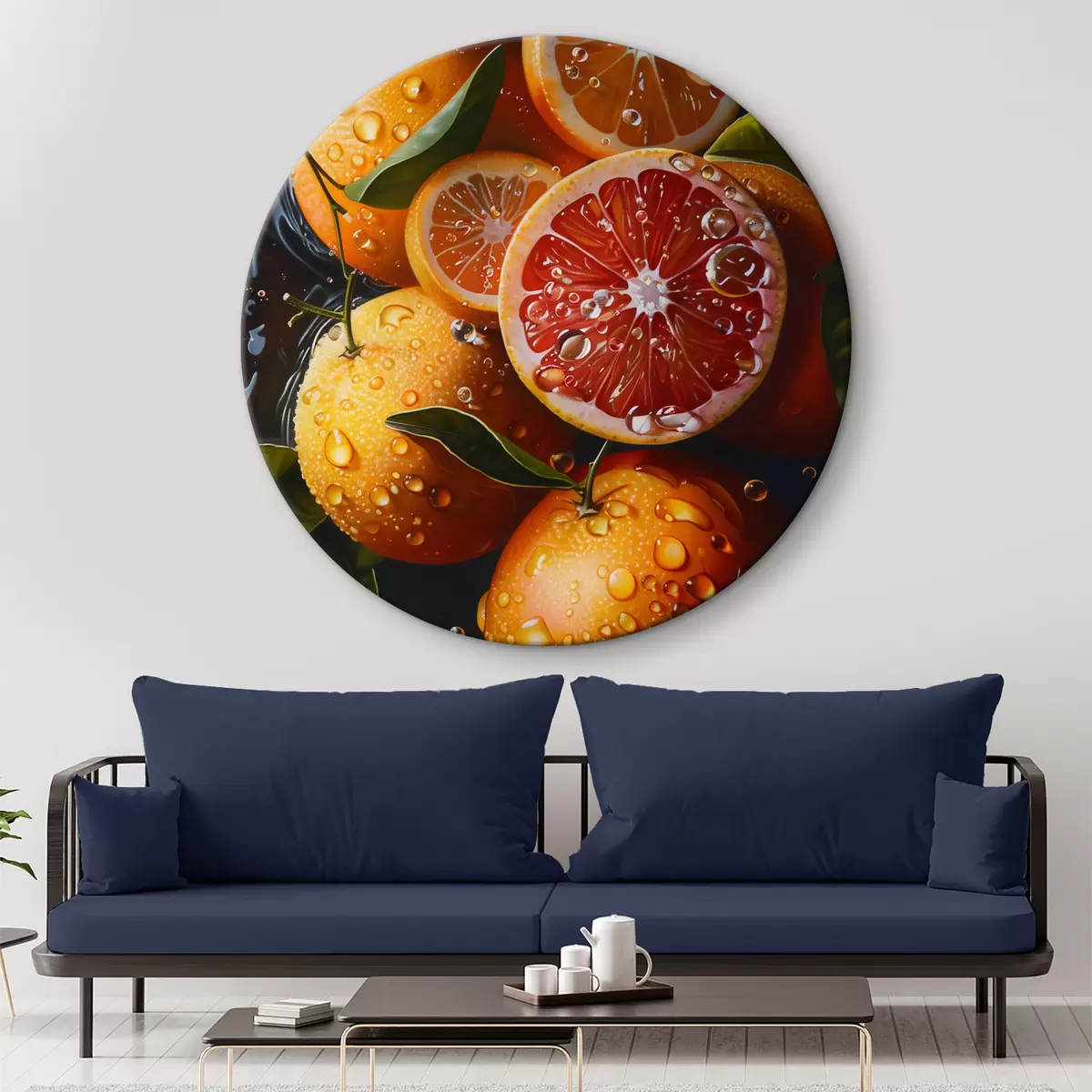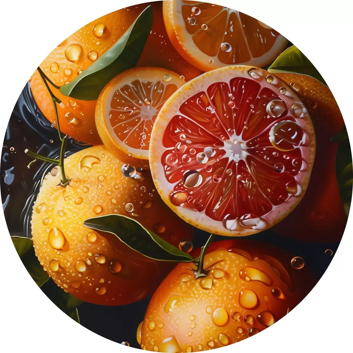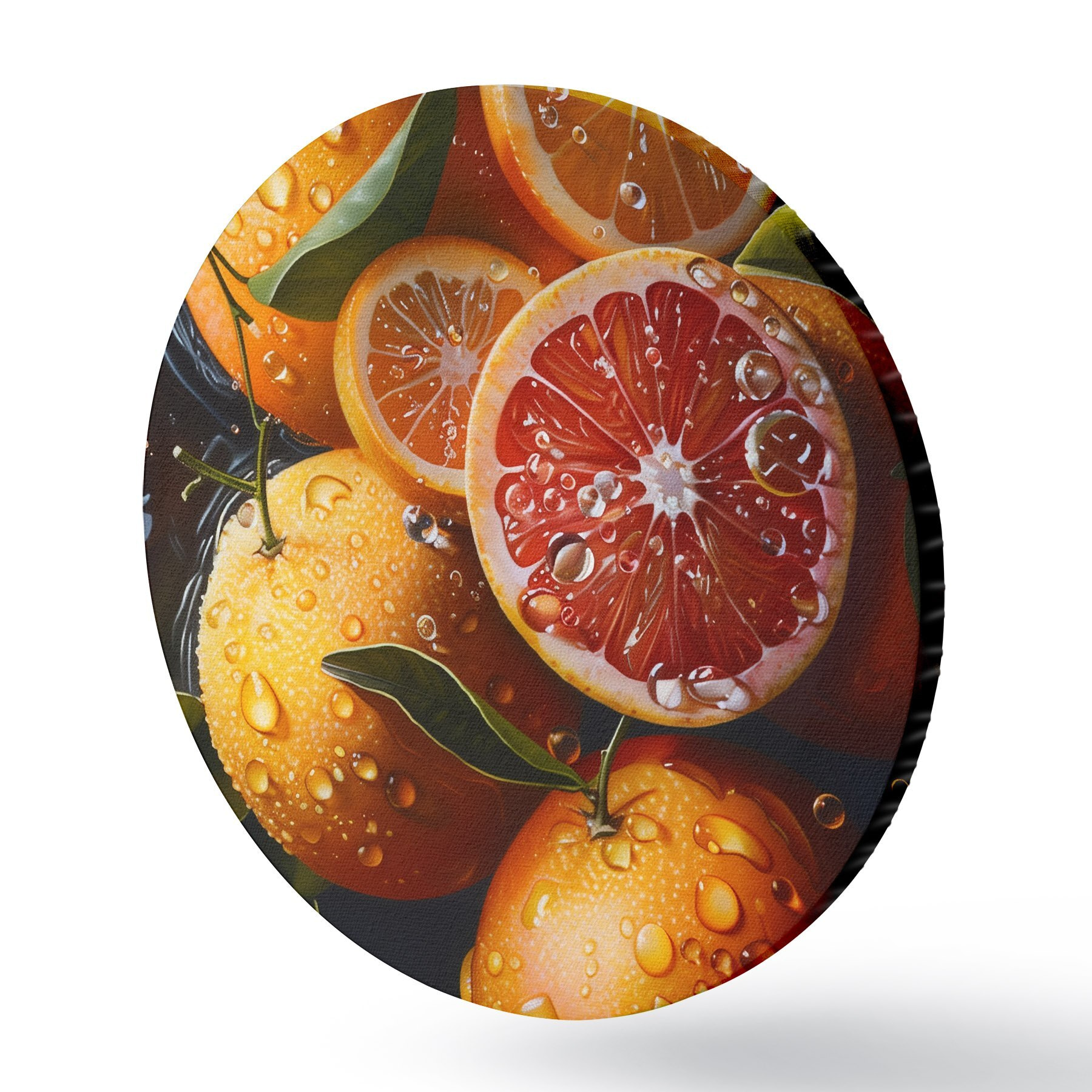 Apaļas gleznas Apelsīni un greipfrūti uz tumša fona r39238